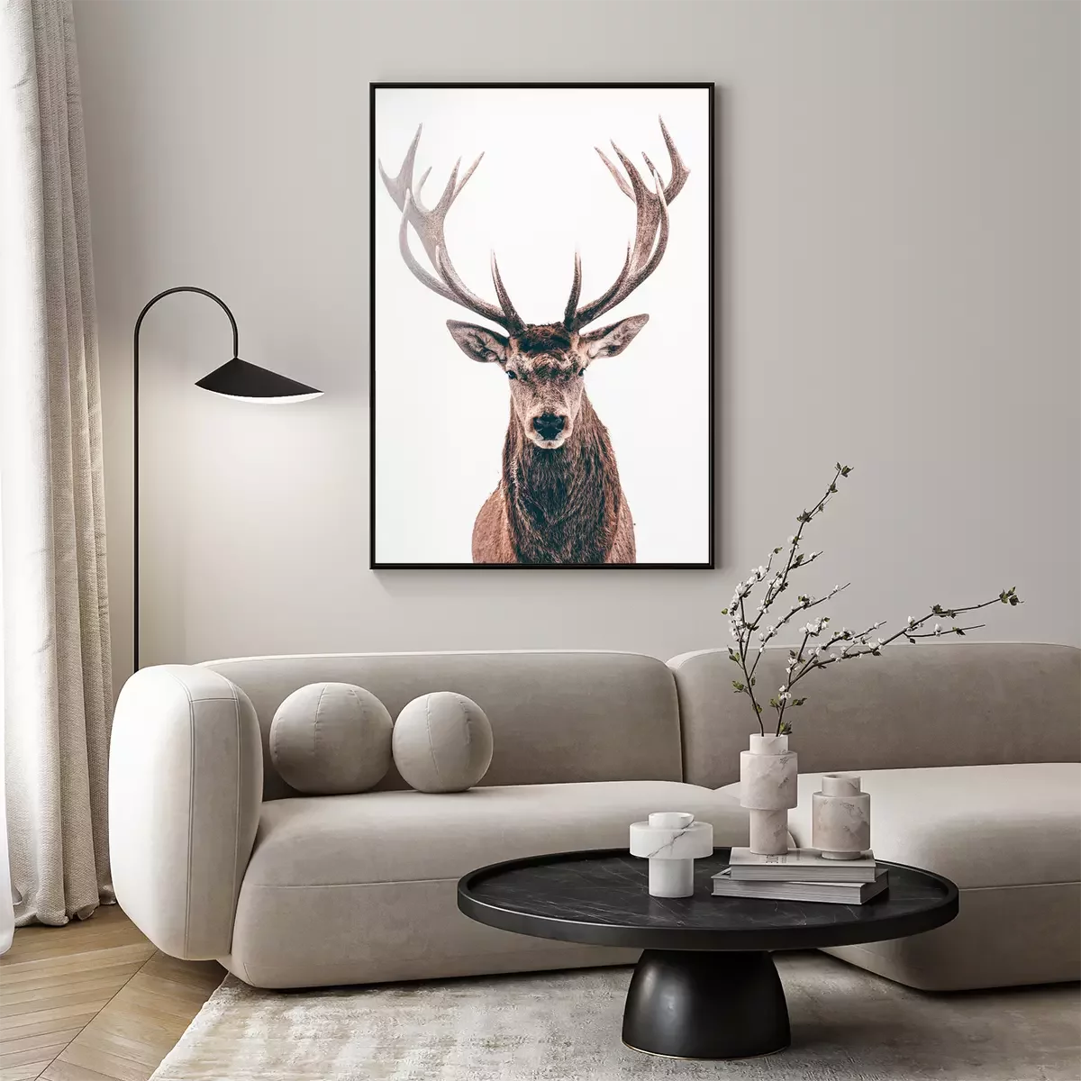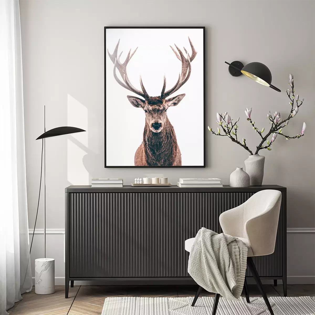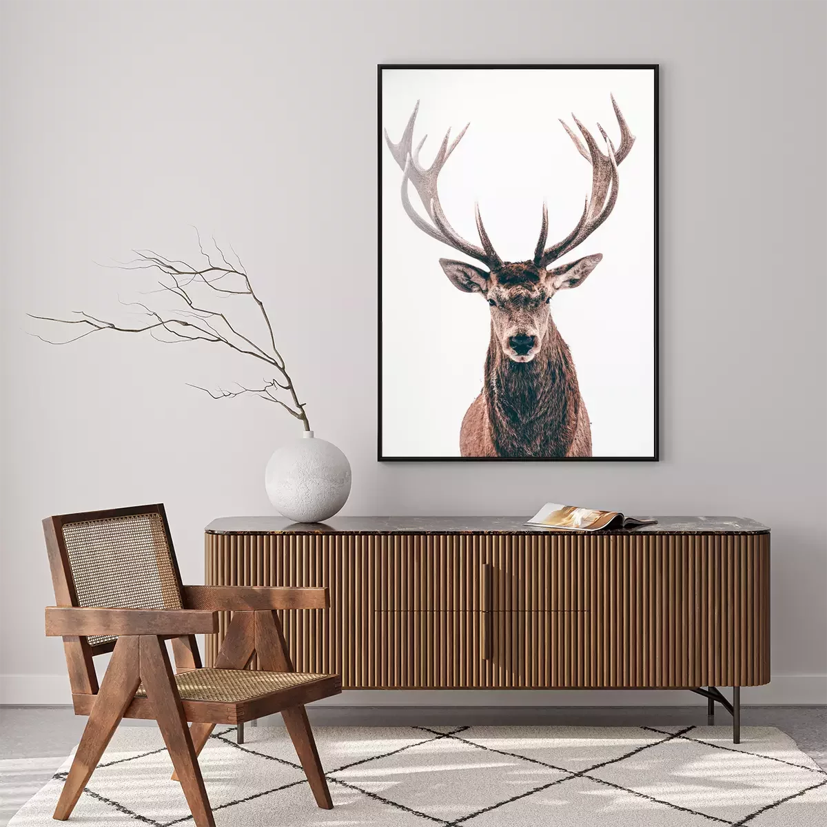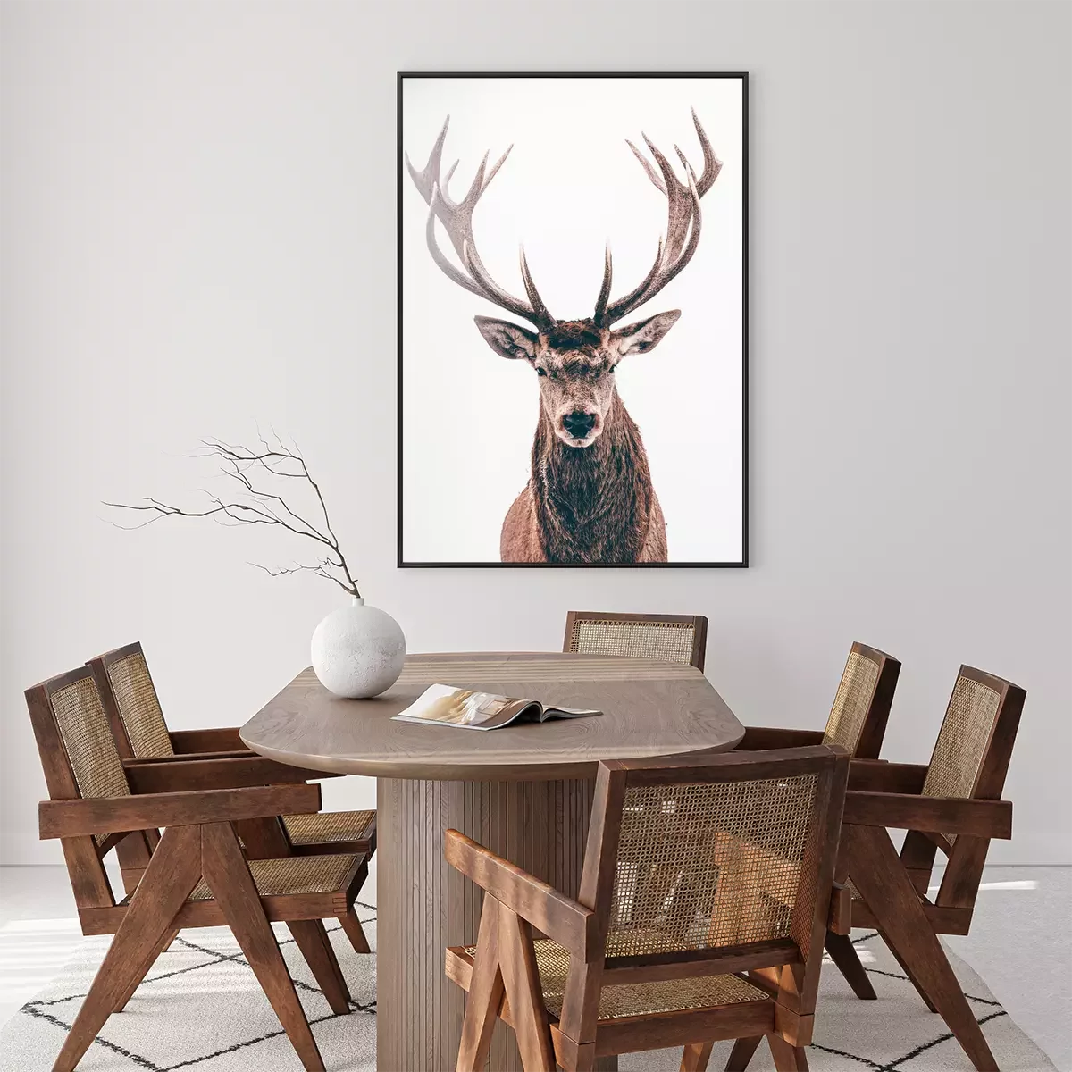 Poster: Portret van een wild hert op witte achtergrond