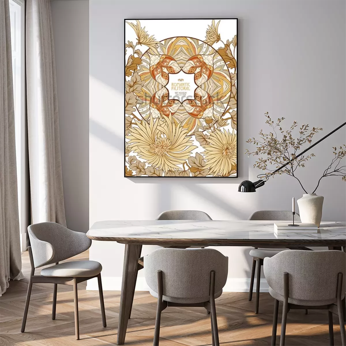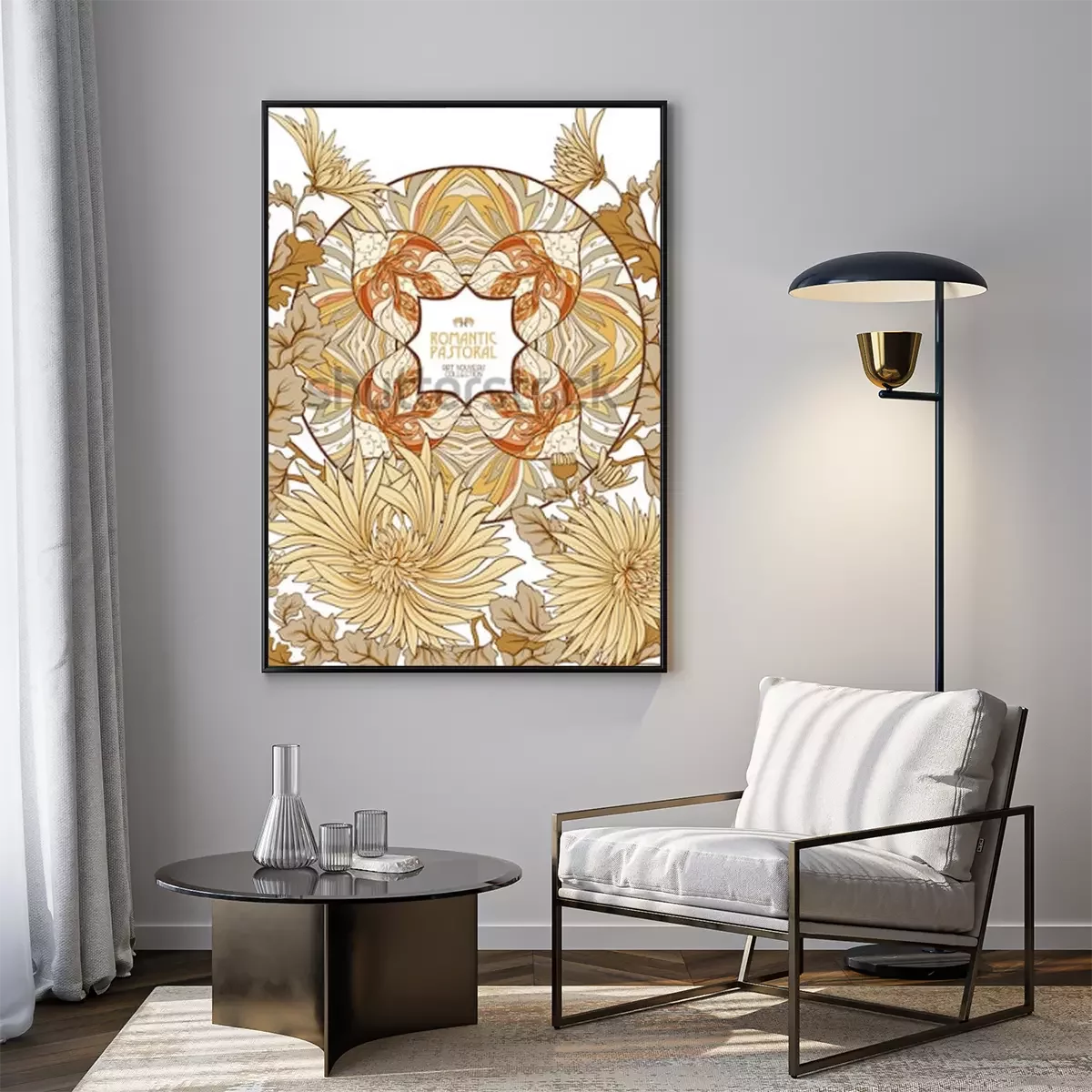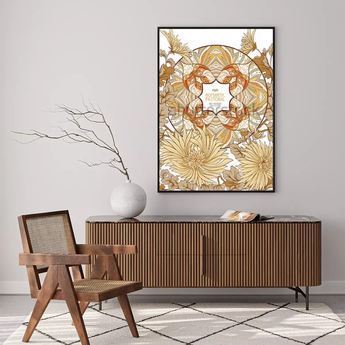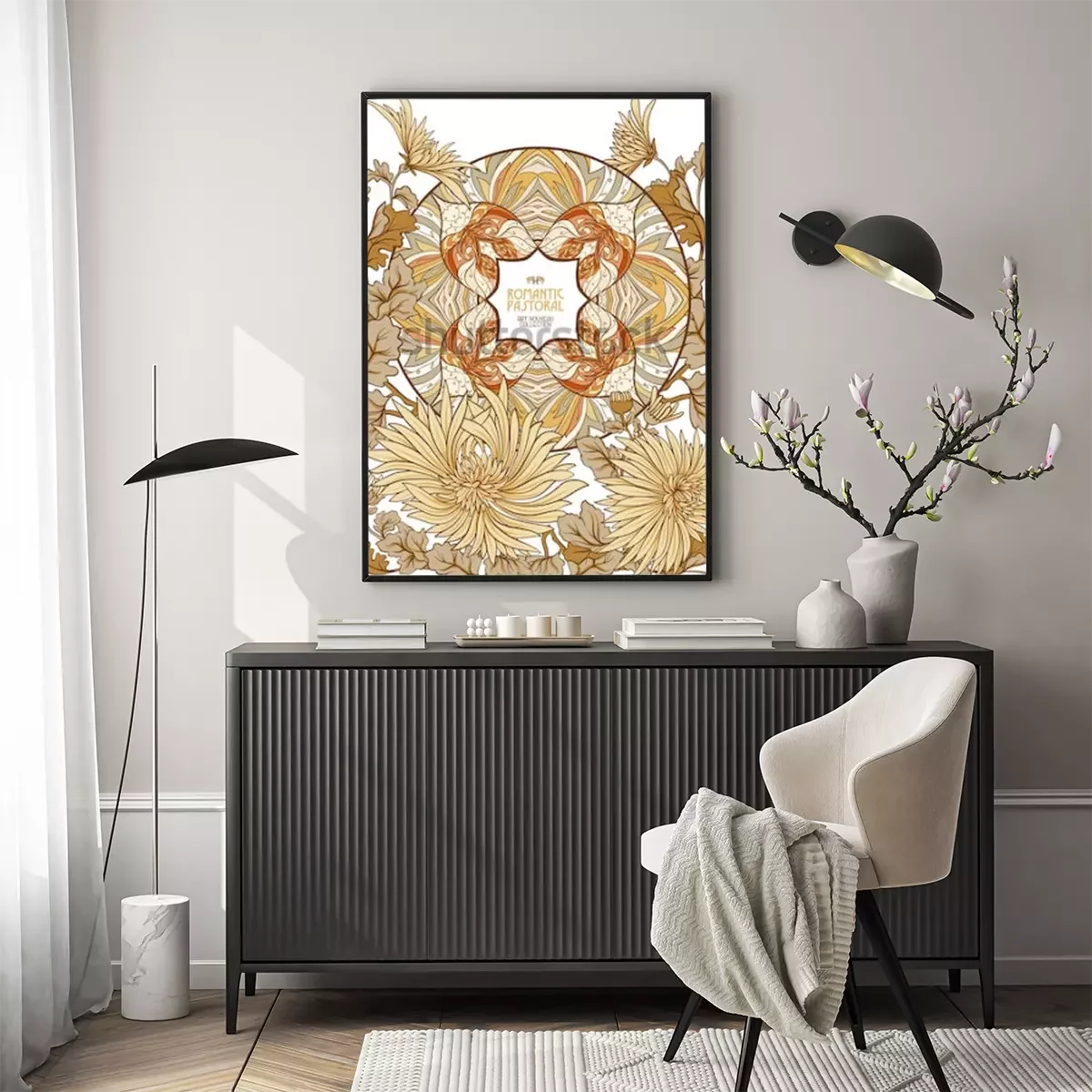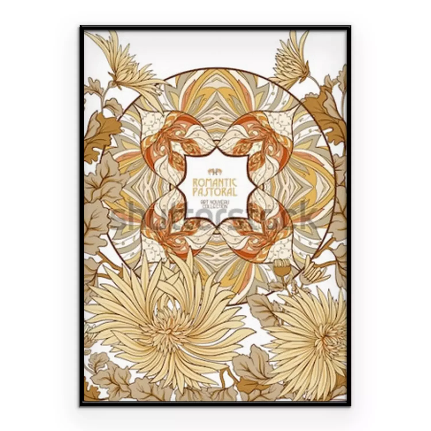 Poster Poster, background with space for text and decorative flowers in art nouveau style, vintage, old, retro style. Stock vector illustration.