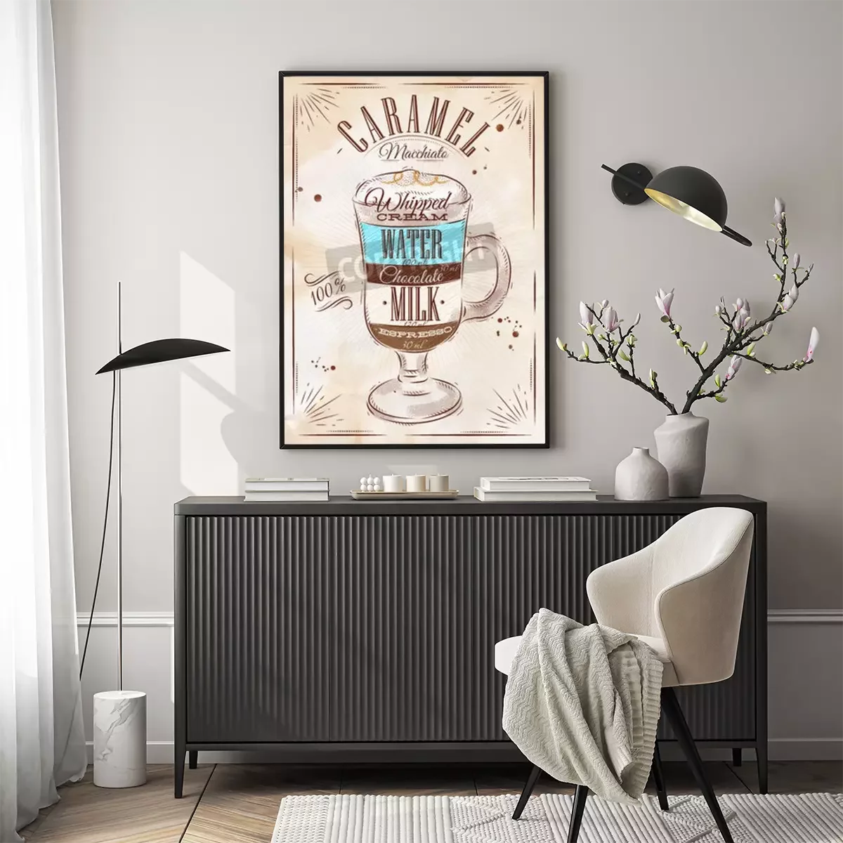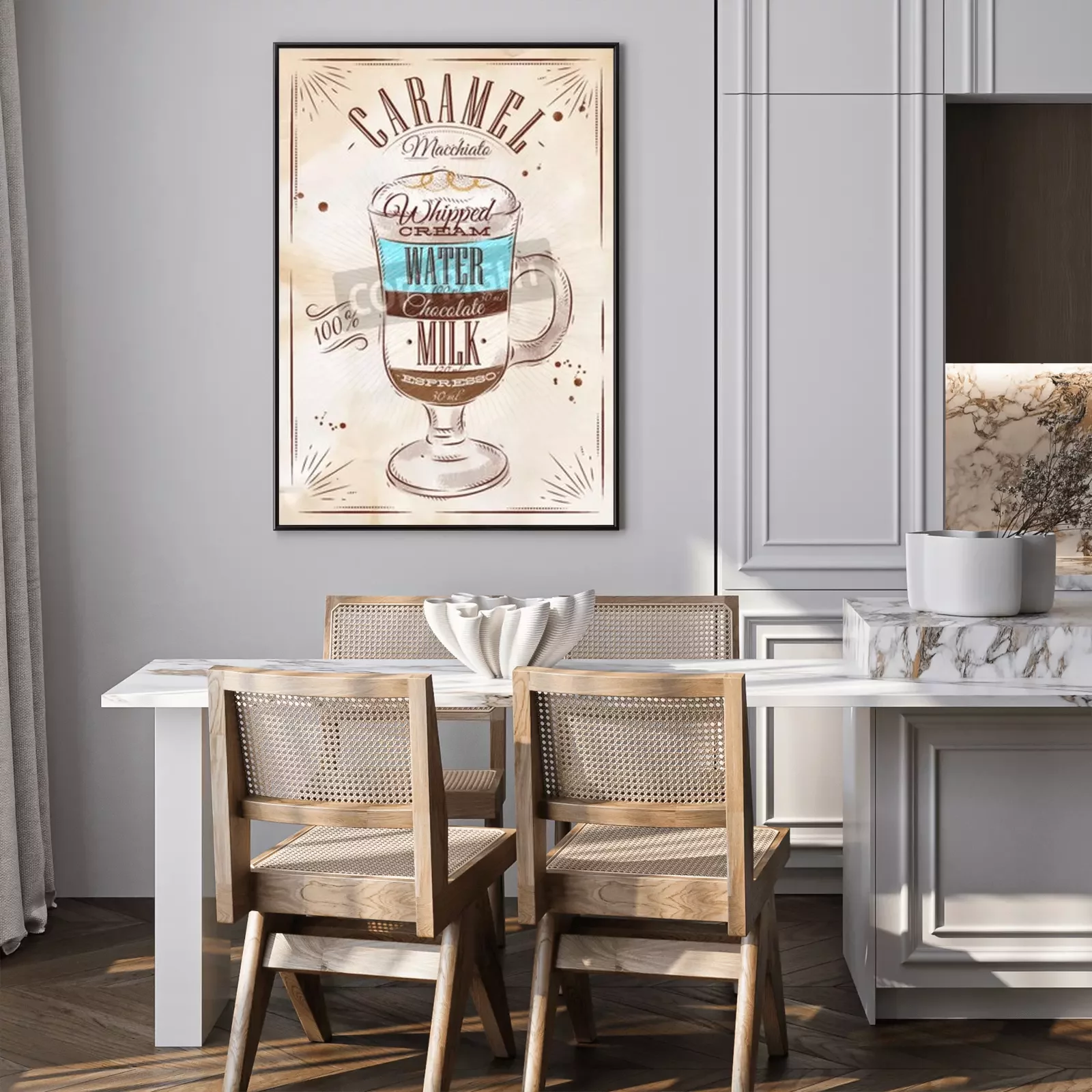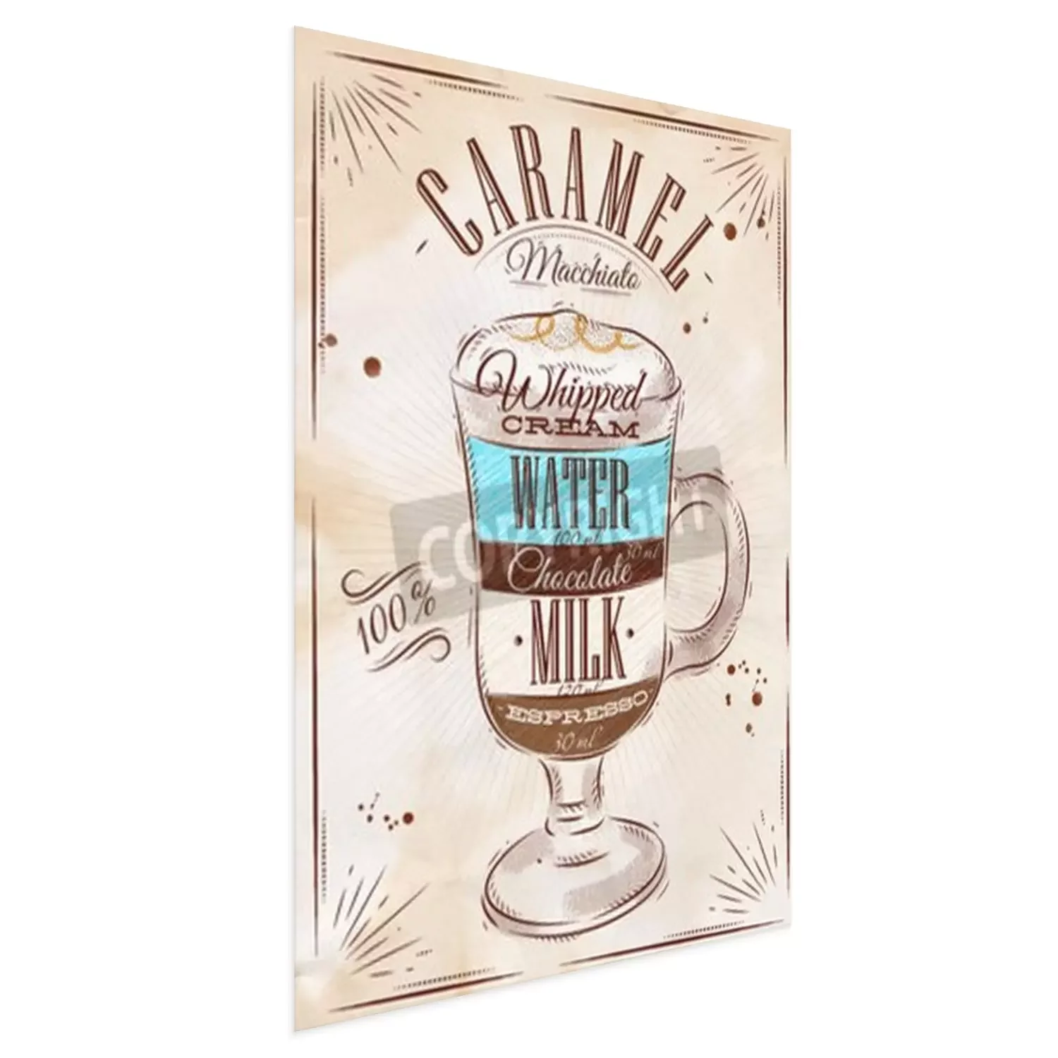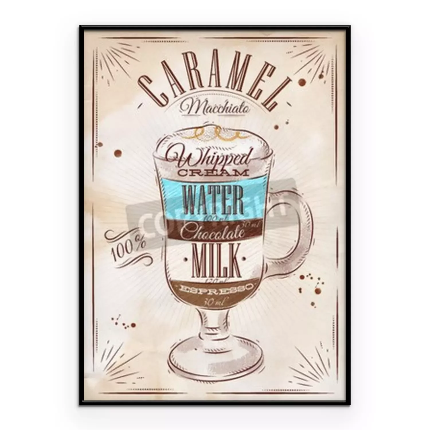 Poster: Poster koffie caramel macchiato in vintage stijl tekening