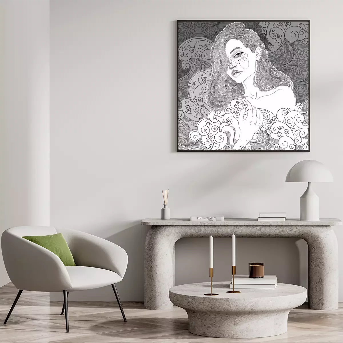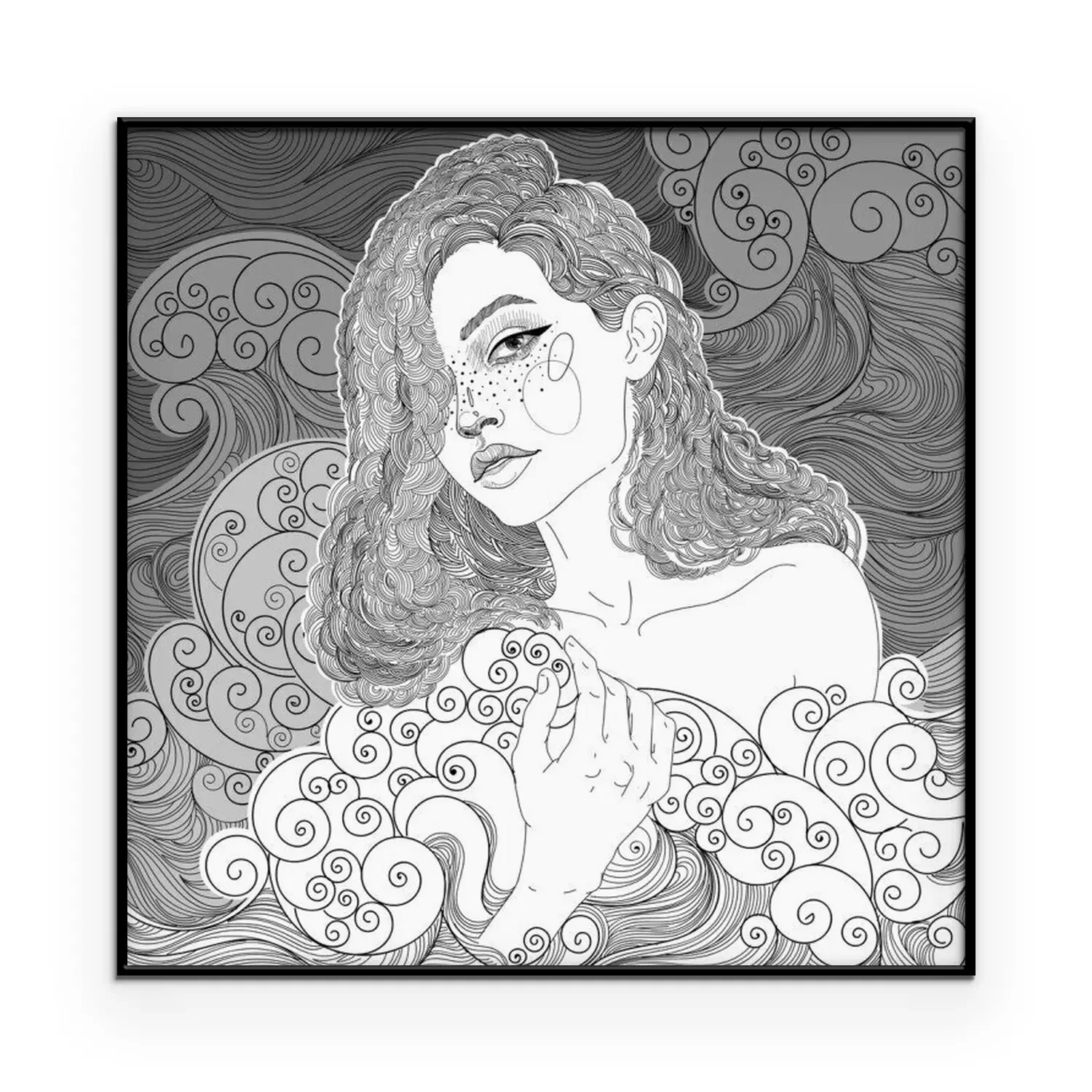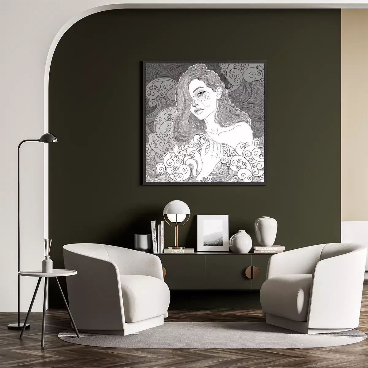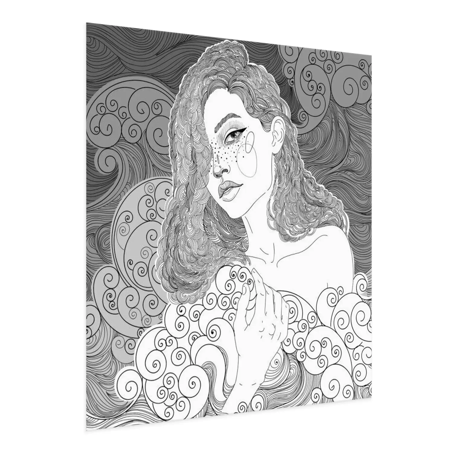 Poster: prachtige zeemeermin meisje zee godin tussen de golven van de oceaan