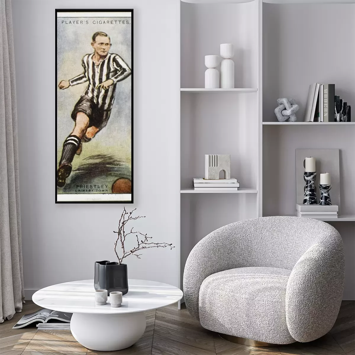 Poster: Priestley tekening van een retro voetballer