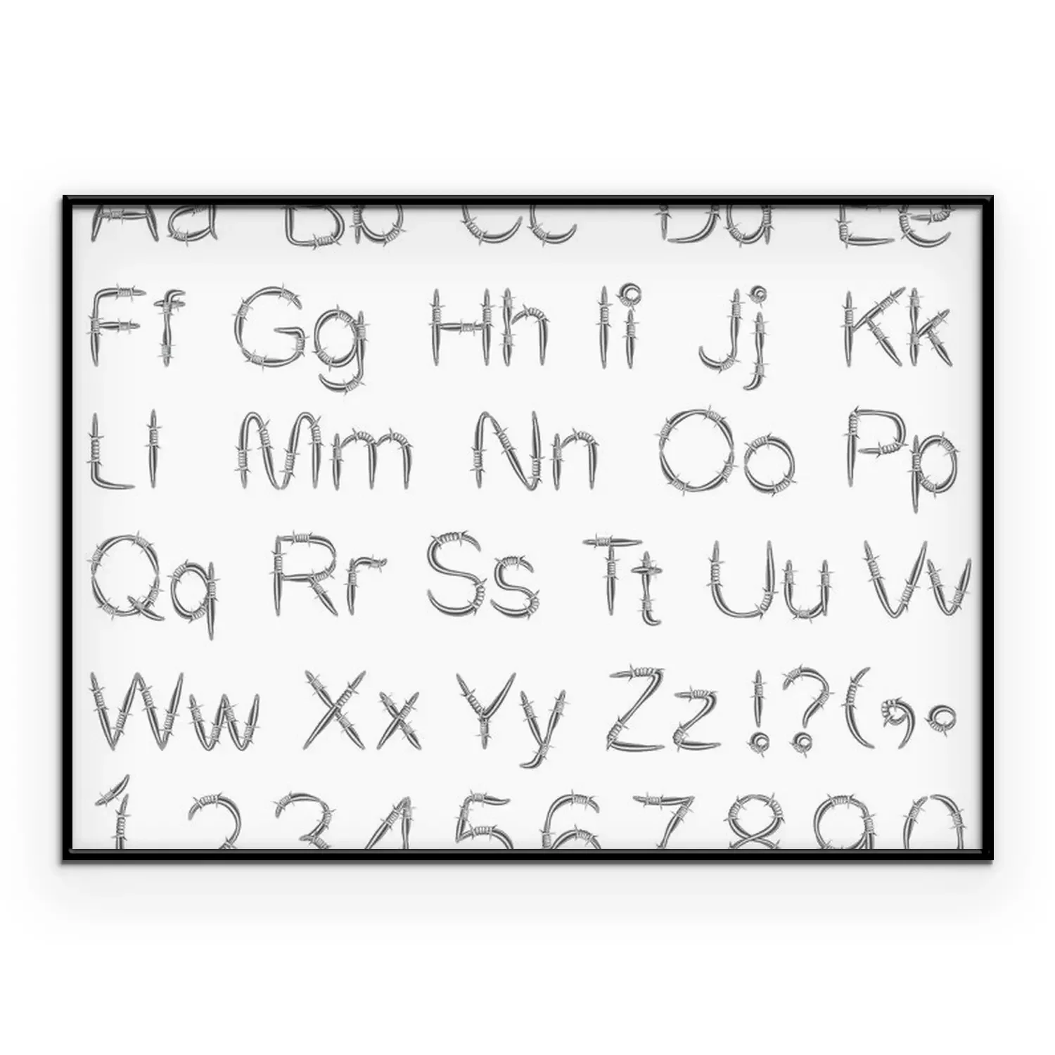 Poster Prikkeldraad alfabet en cijfers