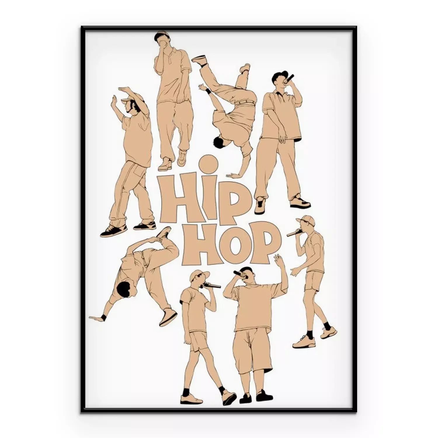 Poster: Print for t-shirts and posters with hip hop artists. Isolated silhouettes of people on a white background
