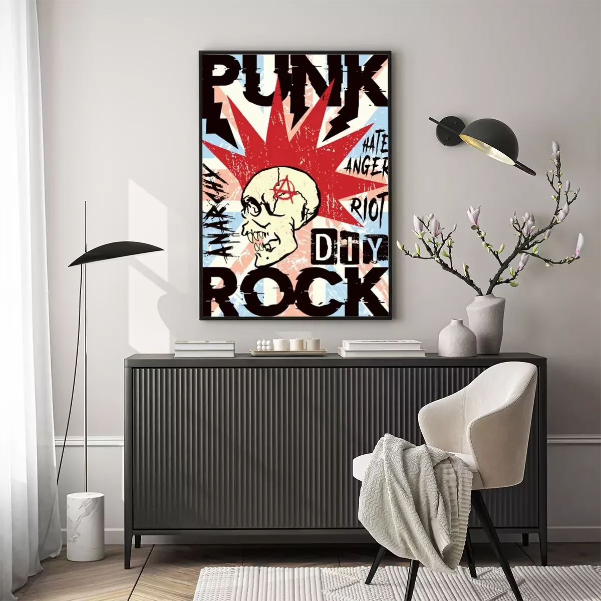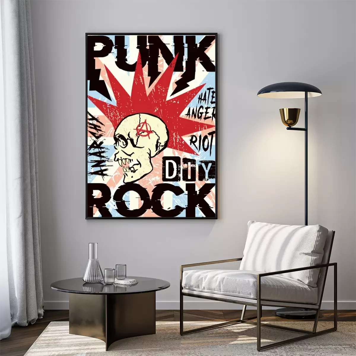 Poster Punk rock anarchy skull mohawk poster.