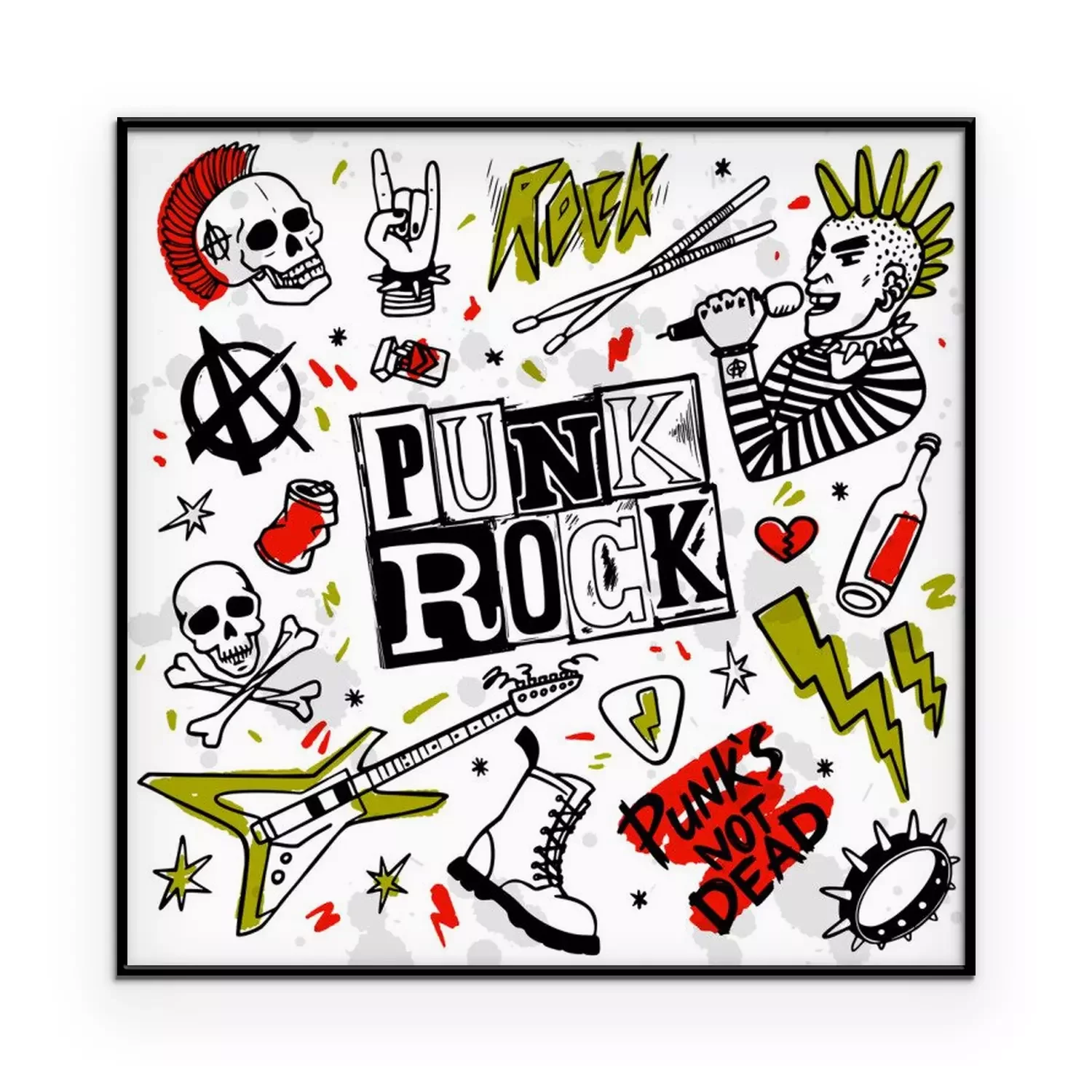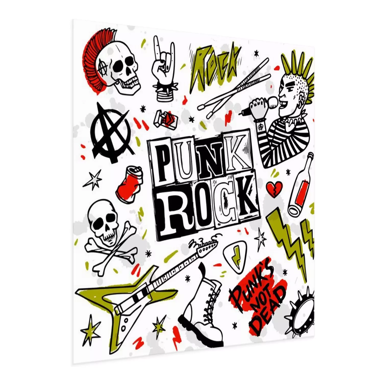 Poster: Punk rock set. Punks not dead words and design elements. vector illustration.