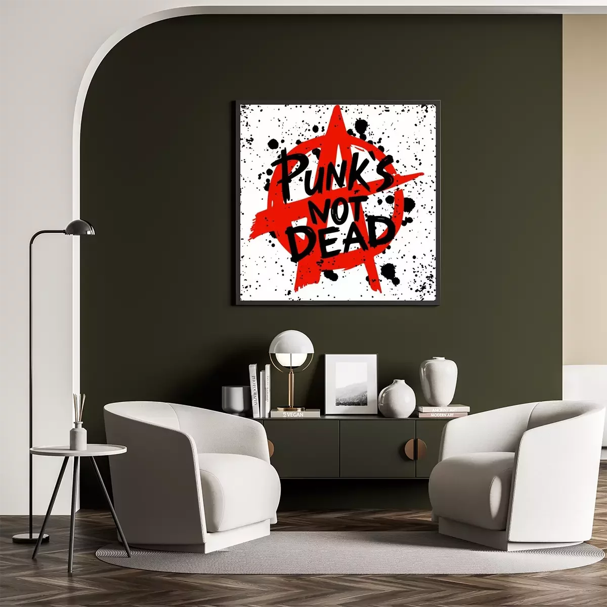 Poster: Punk rock set. Punks not dead words and design elements. vector illustration.