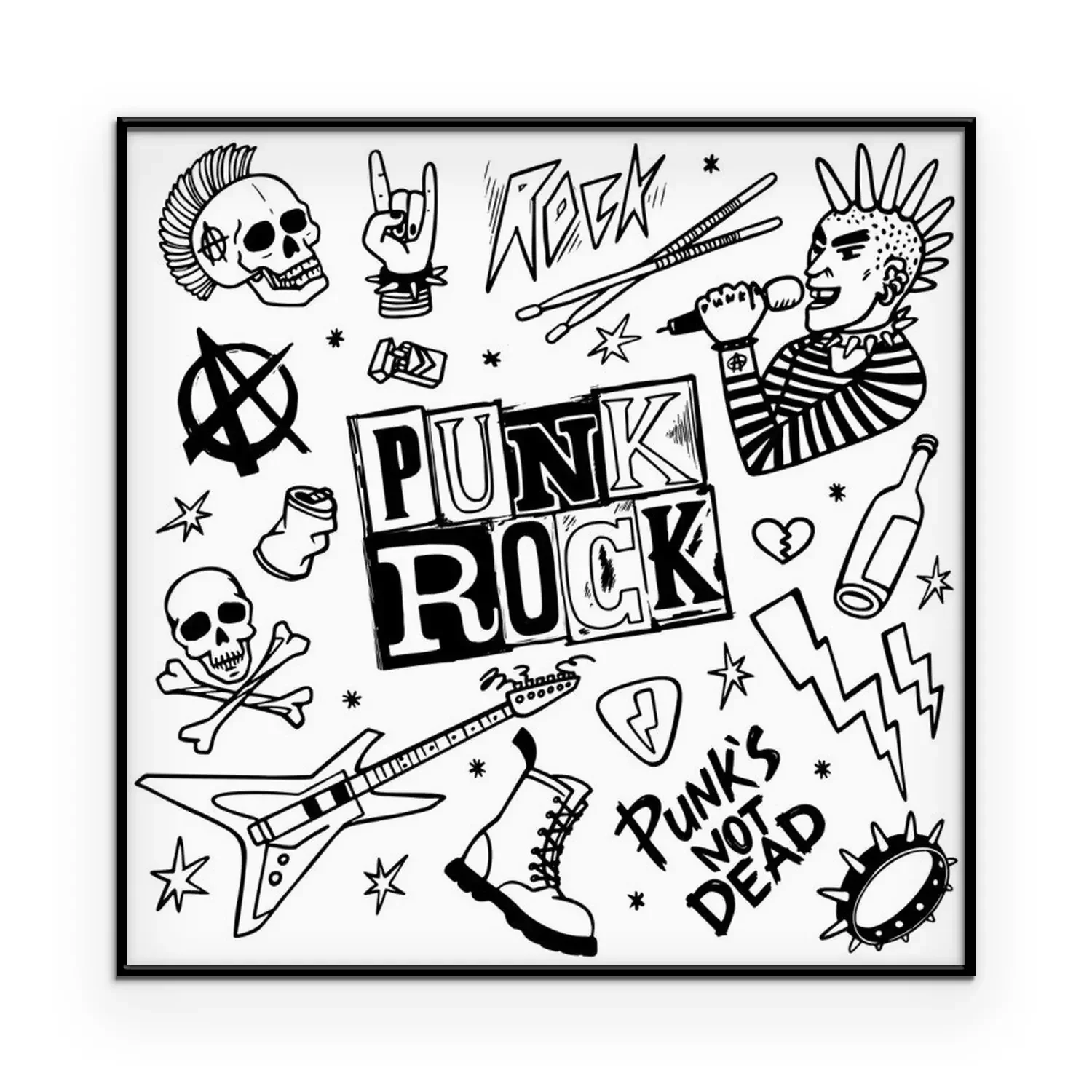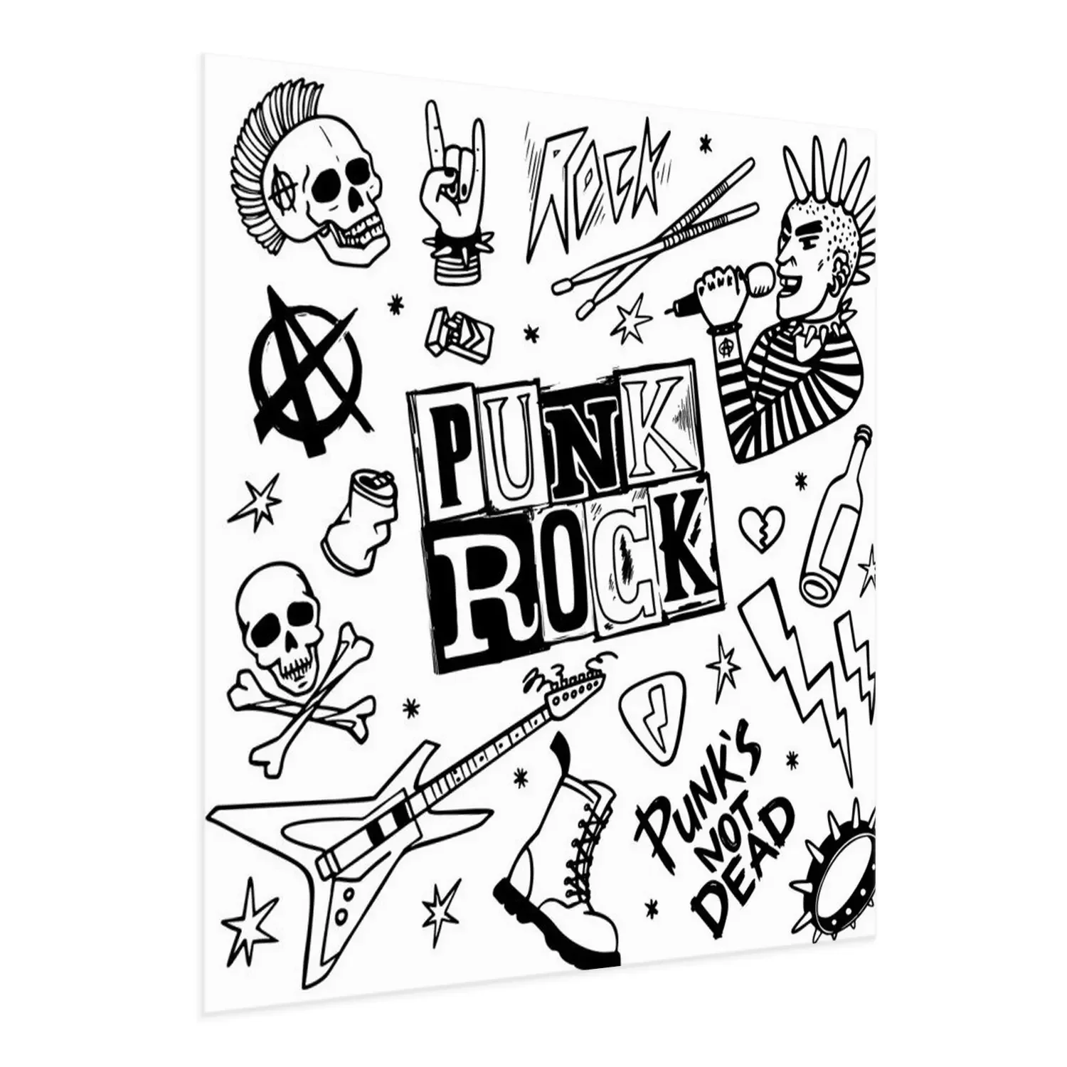 Poster: Punk rock set. Punks not dead words and design elements. vector illustration.