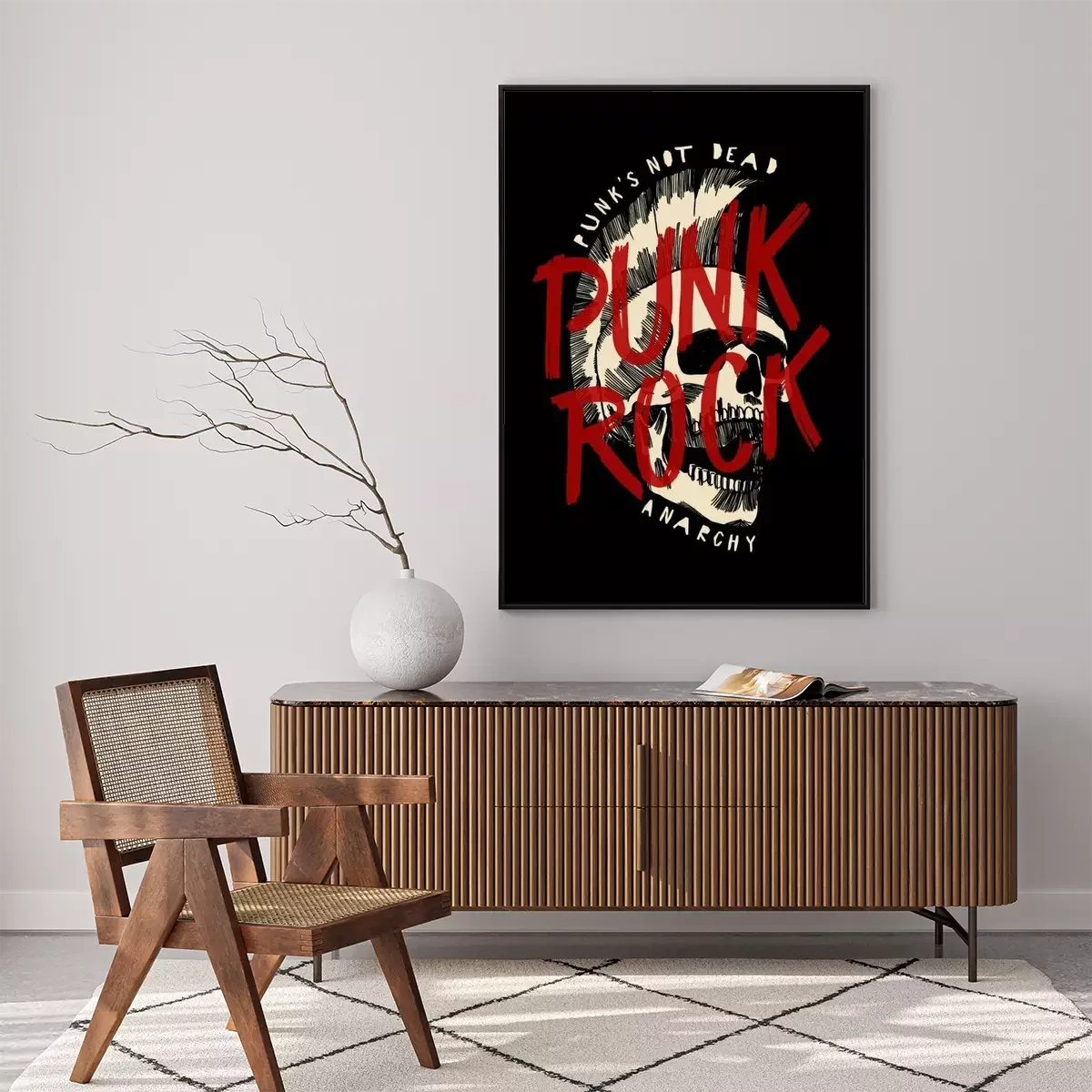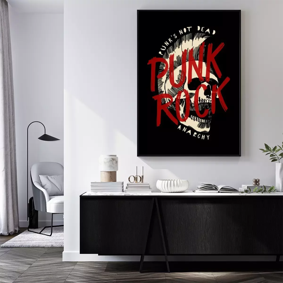 Punk rock schedel print. Punk is geen dode anarchie poster