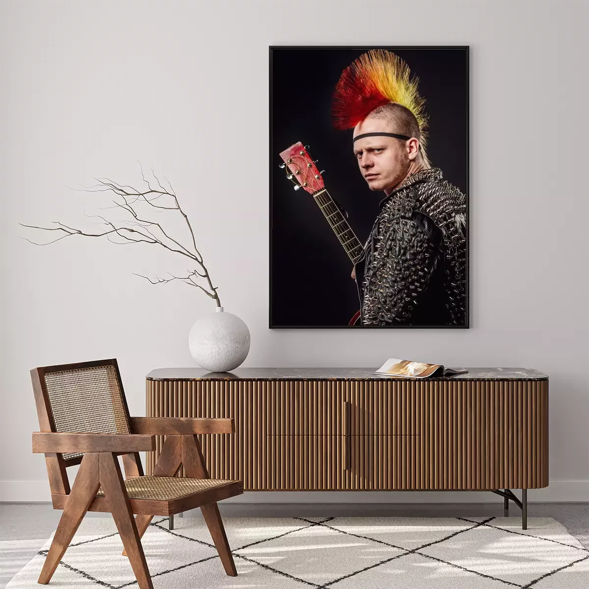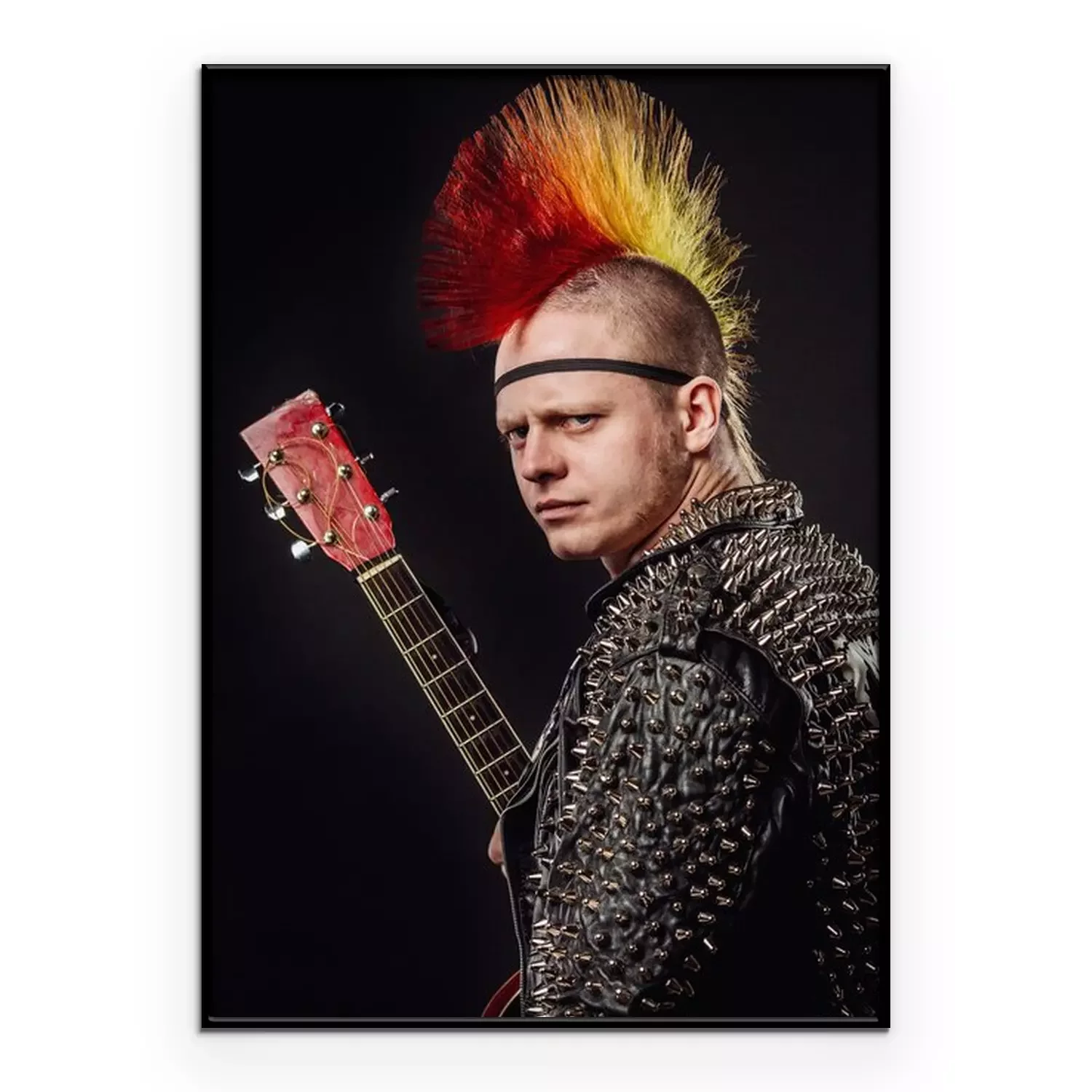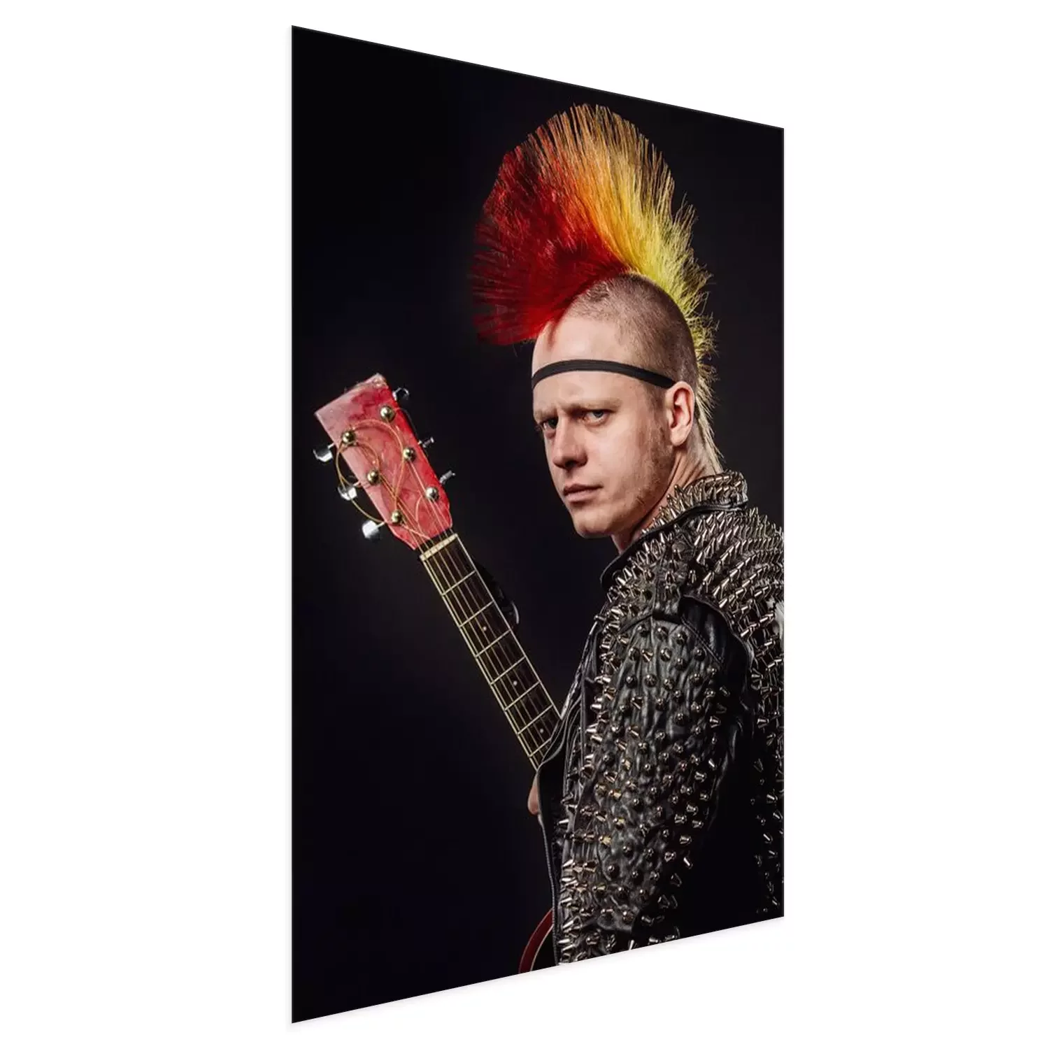 Poster: punk rocker met Mohawk op een zwarte achtergrond.
