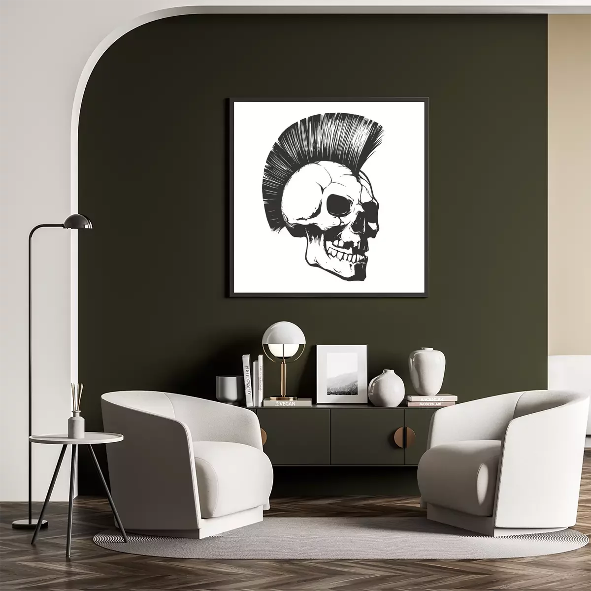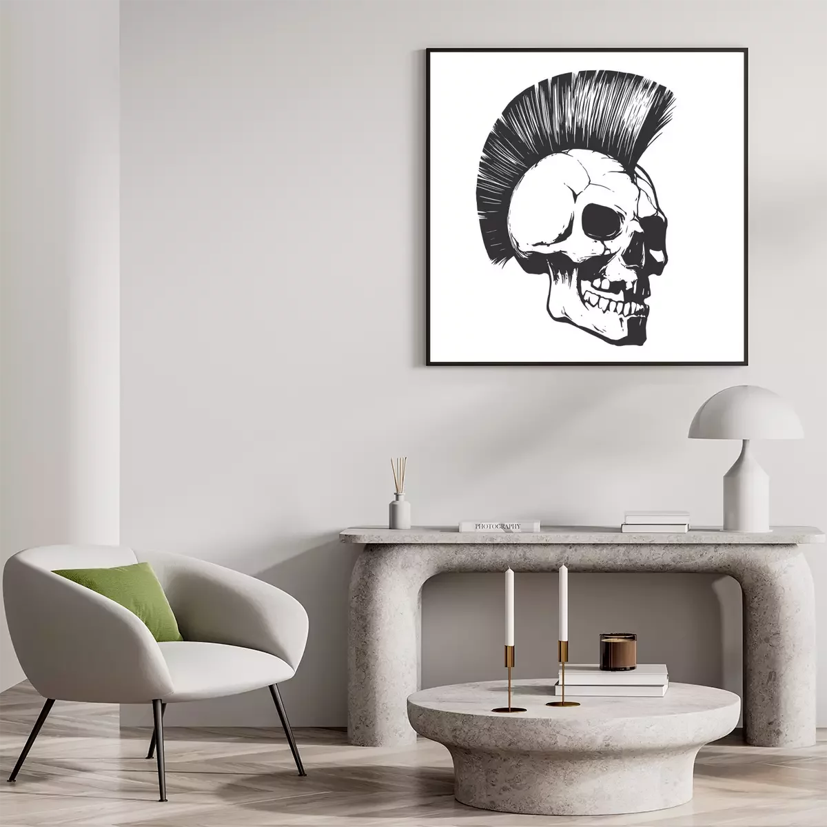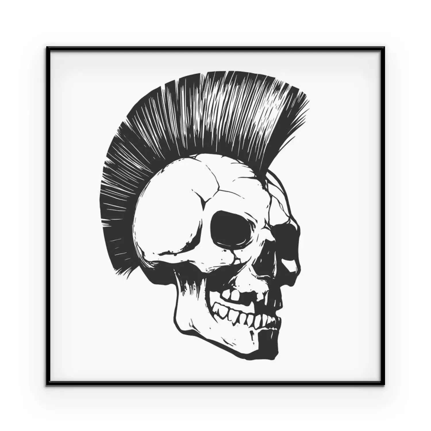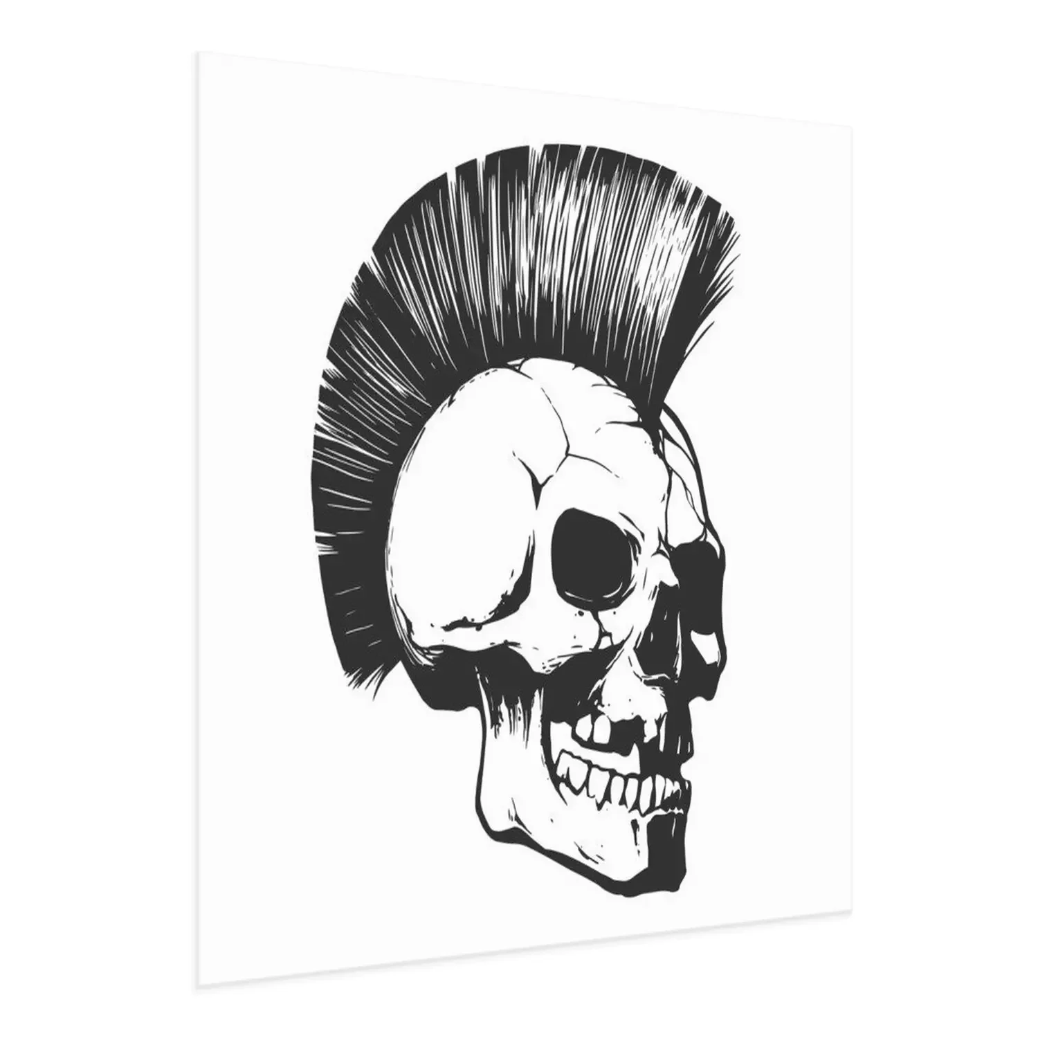 Witte schedel met een Mohawk van bot. Een druppel bloed en de tekst Hard Rock Hallelujah. Vector illustratie punk schedel met mohawk voor t-shirt of tattoo ontwerp. Punk rocker. Rood.