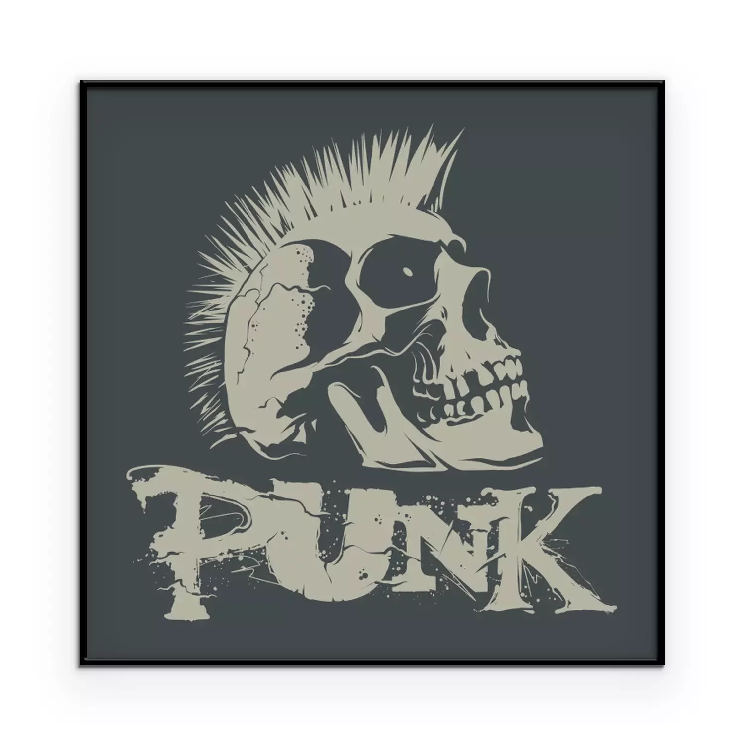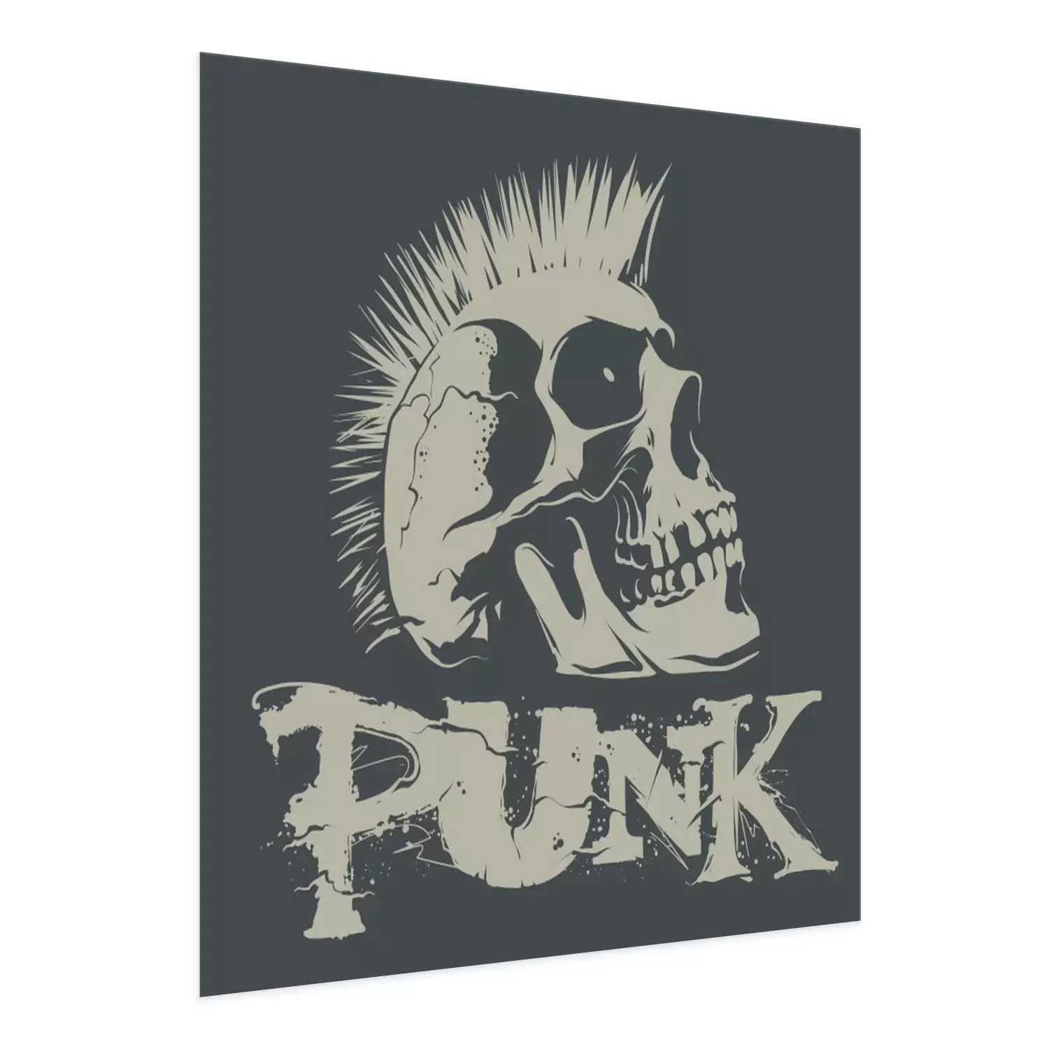 Witte schedel met een Mohawk van bot. Een druppel bloed en de tekst Hard Rock Hallelujah. Vector illustratie punk schedel met mohawk voor t-shirt of tattoo ontwerp. Punk rocker. Rood.