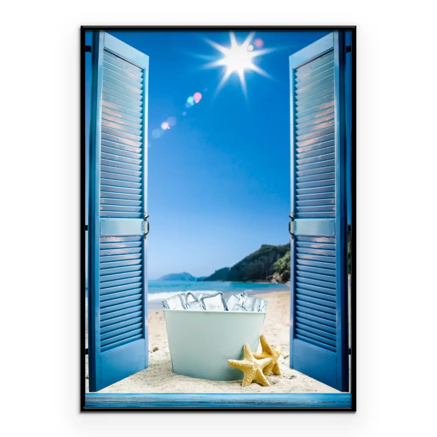 Poster Raam met uitzicht op het strand