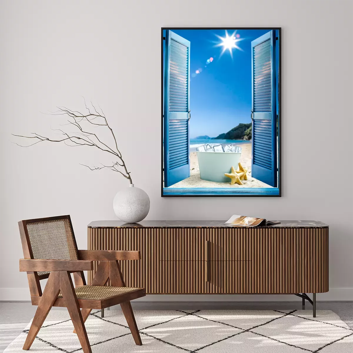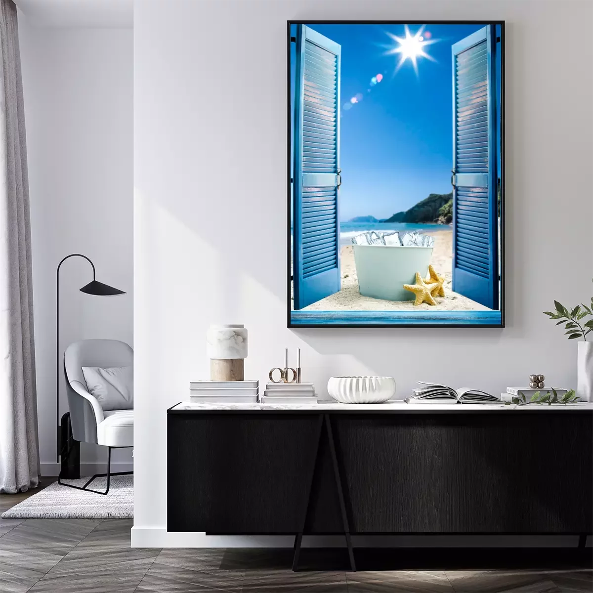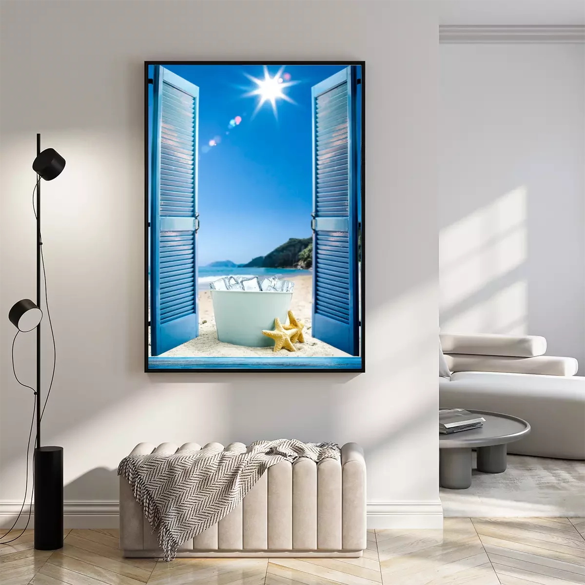 Poster: Raam met uitzicht op het strand