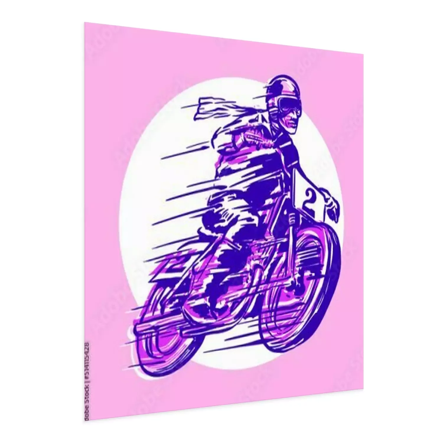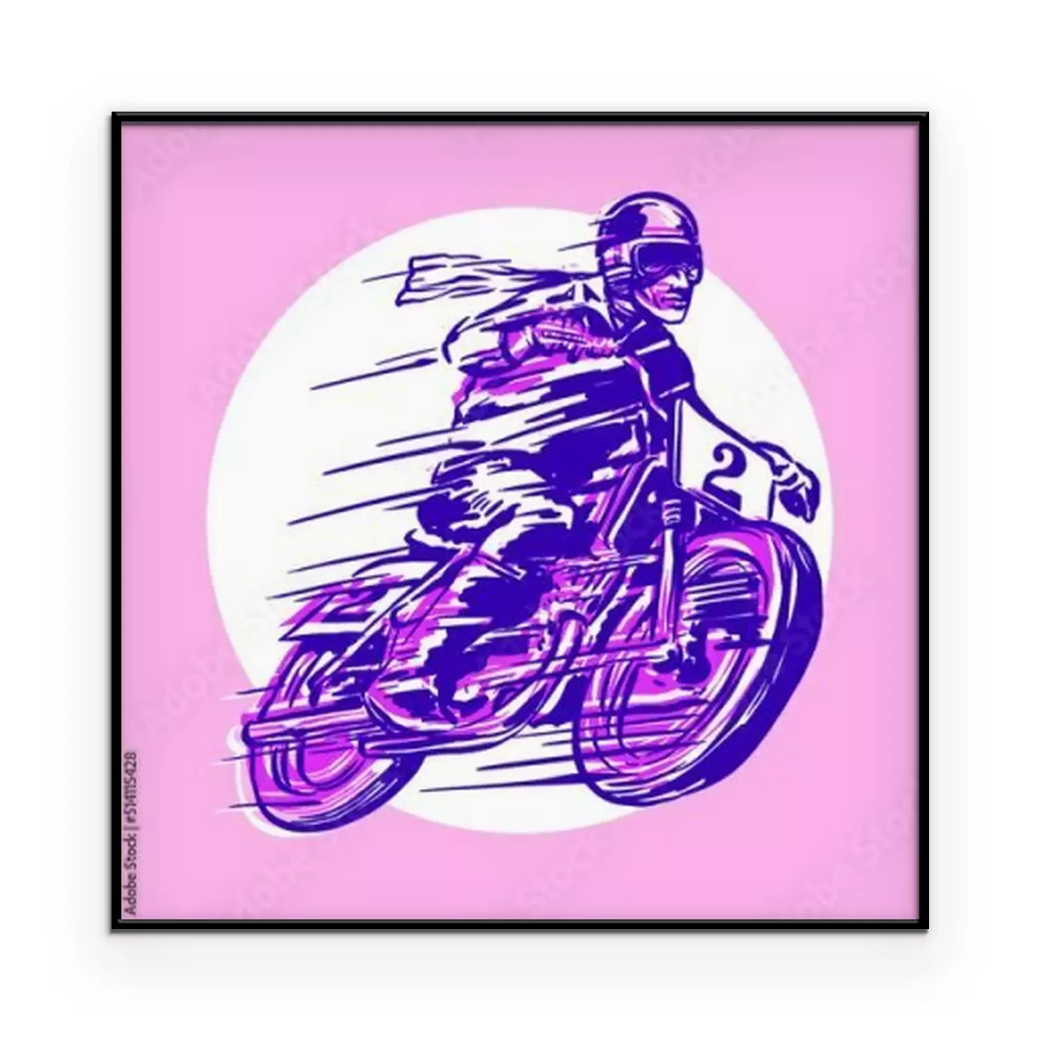 Poster Racer with motorcycle objects in retro hand drawing style