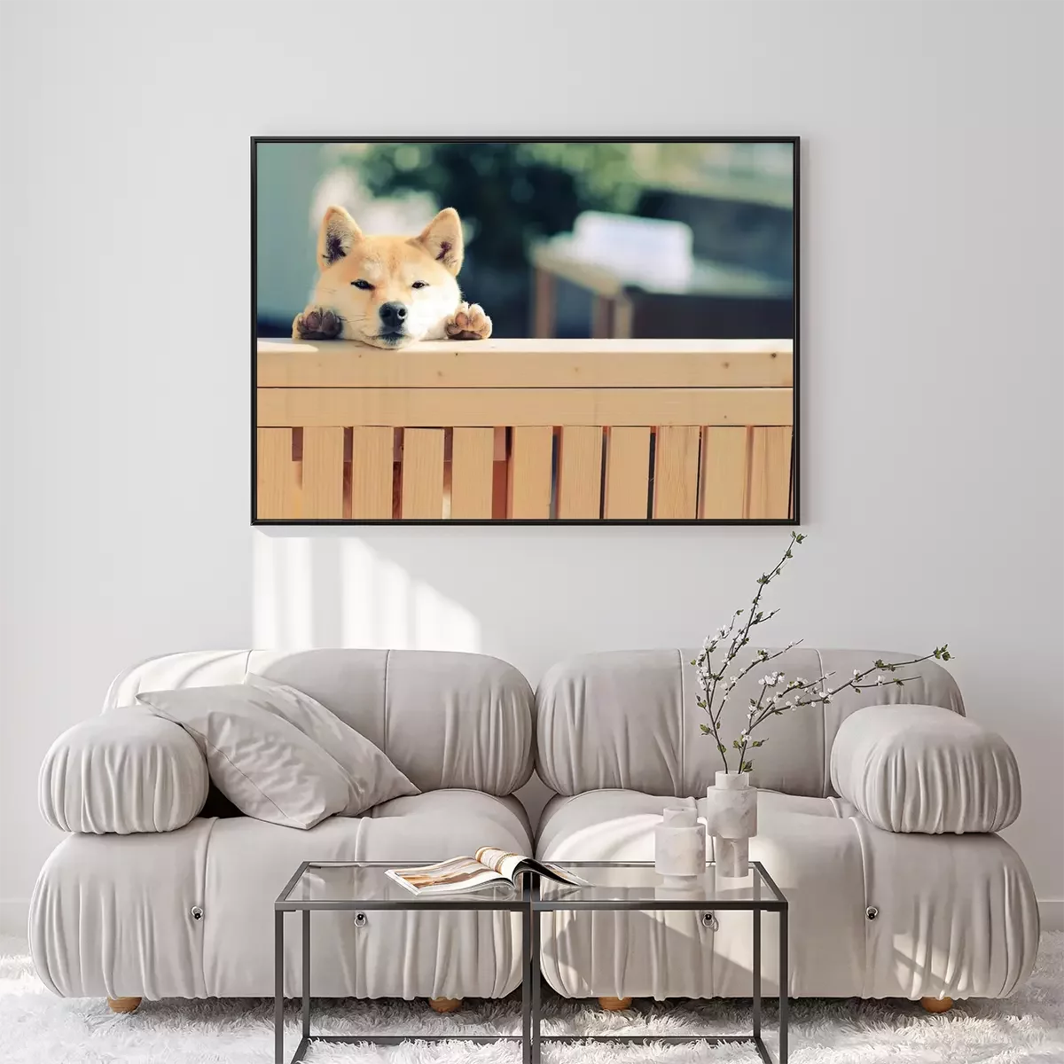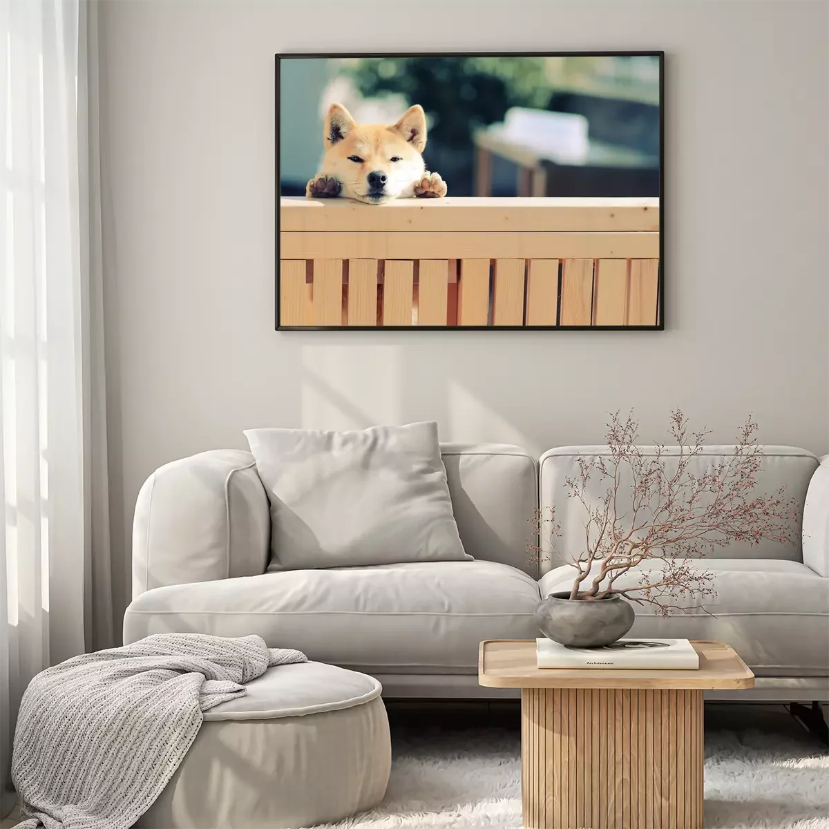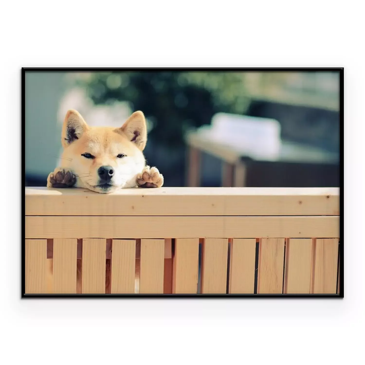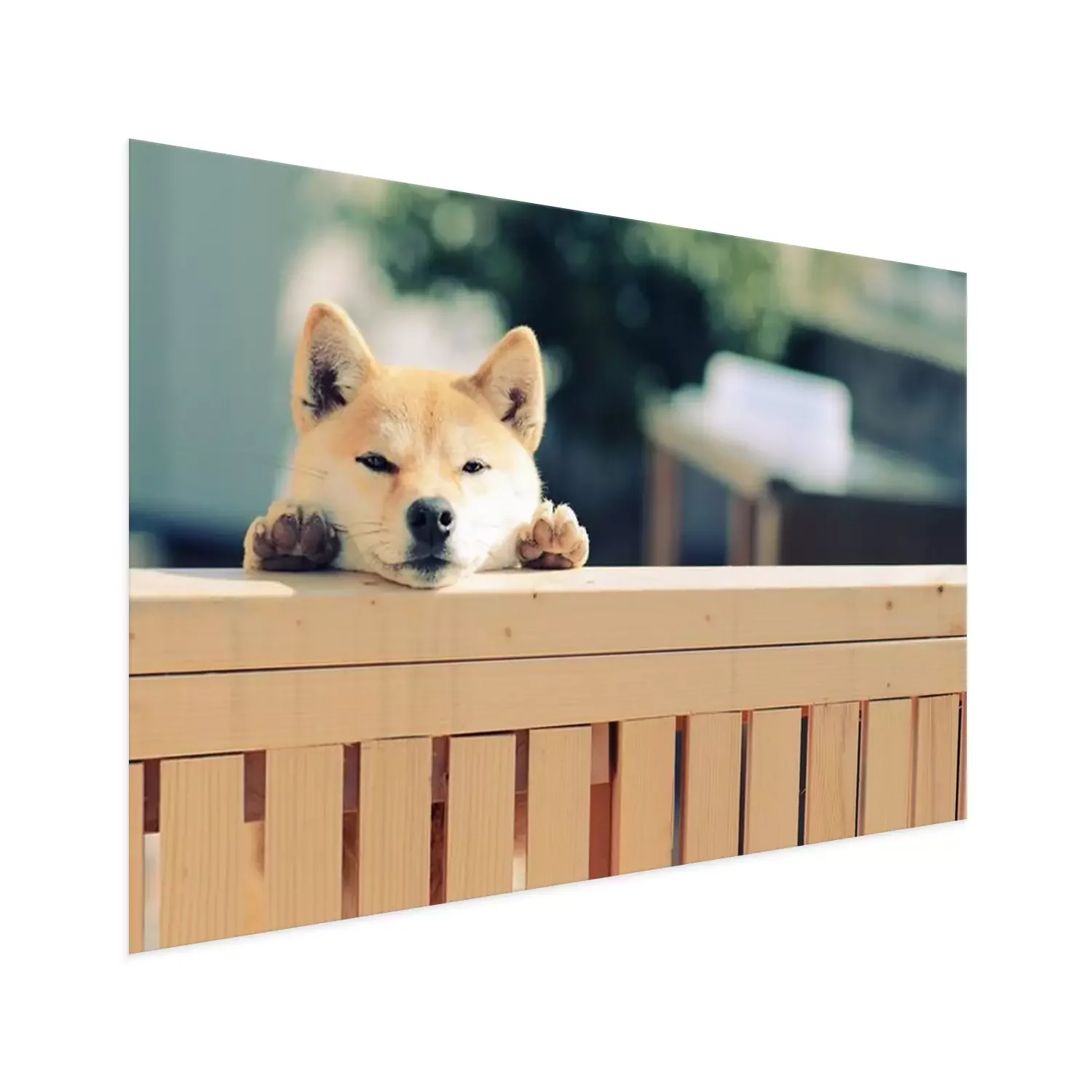 Poster: Rasechte hond die van achter het hek kijkt