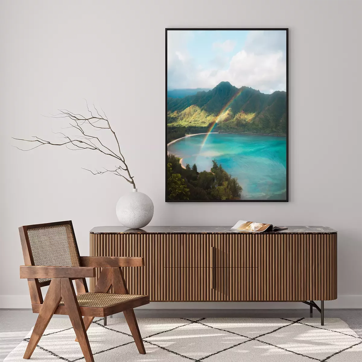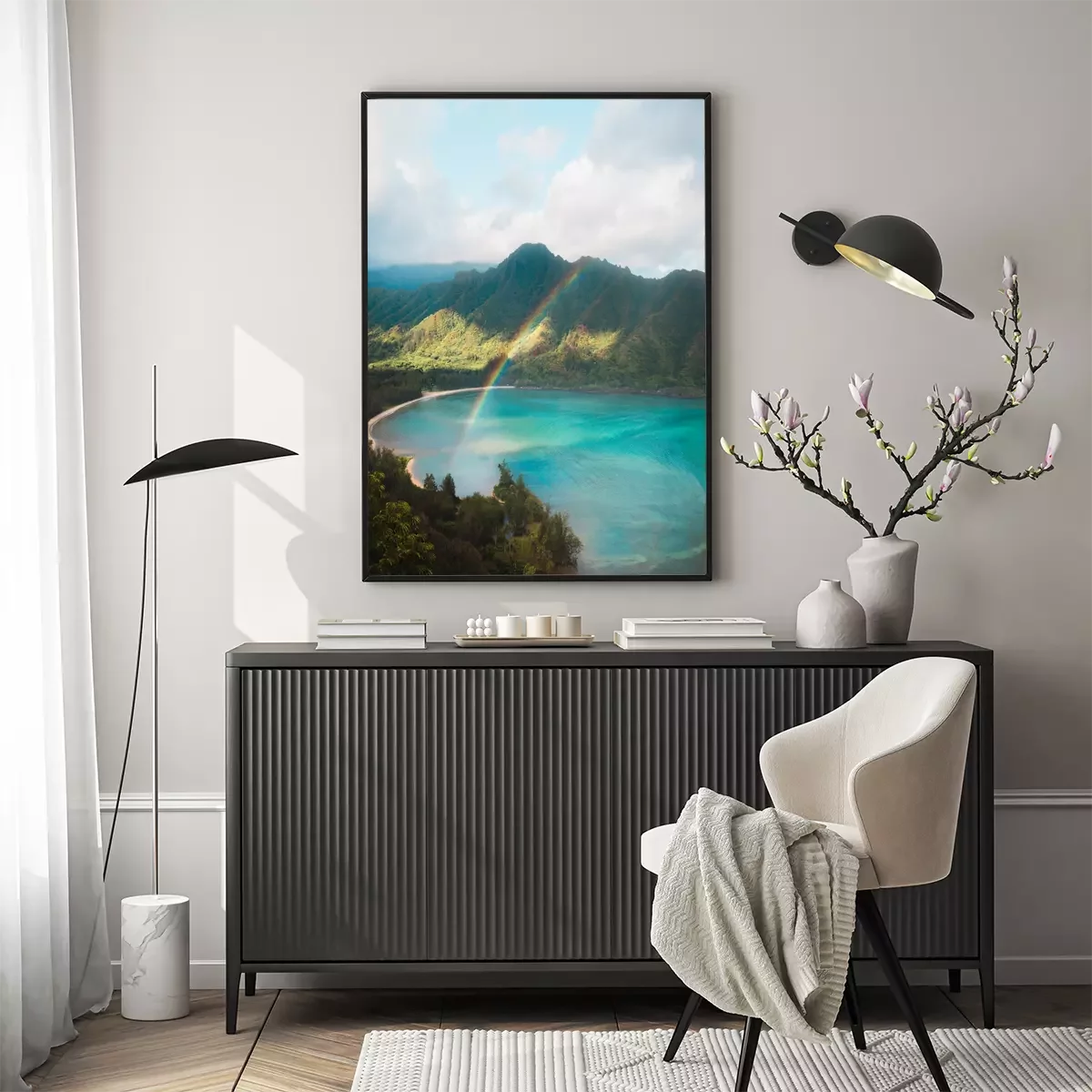 Poster: Regenboog over het berglandschap