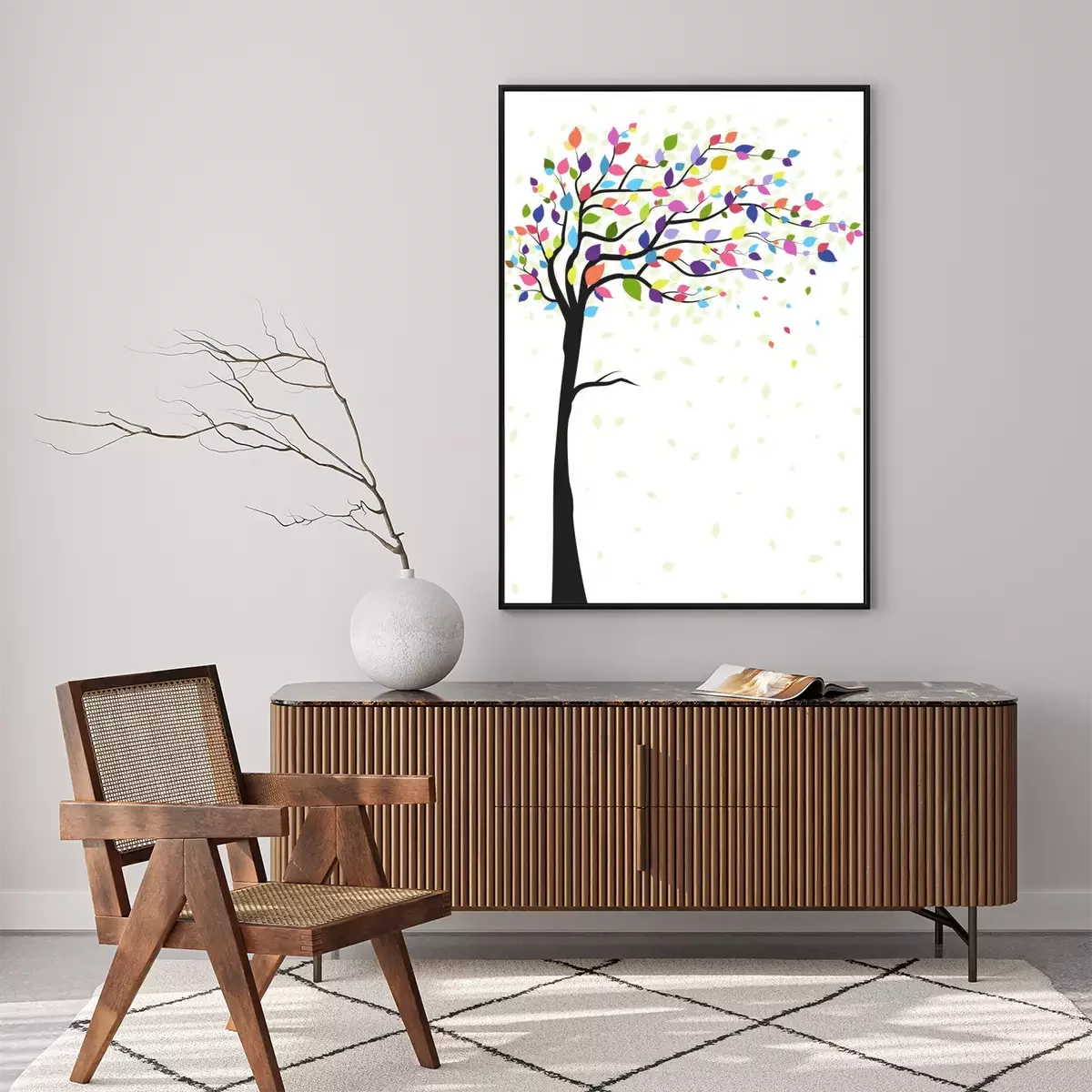 Poster: Regenboogboom tijdens zeer harde wind