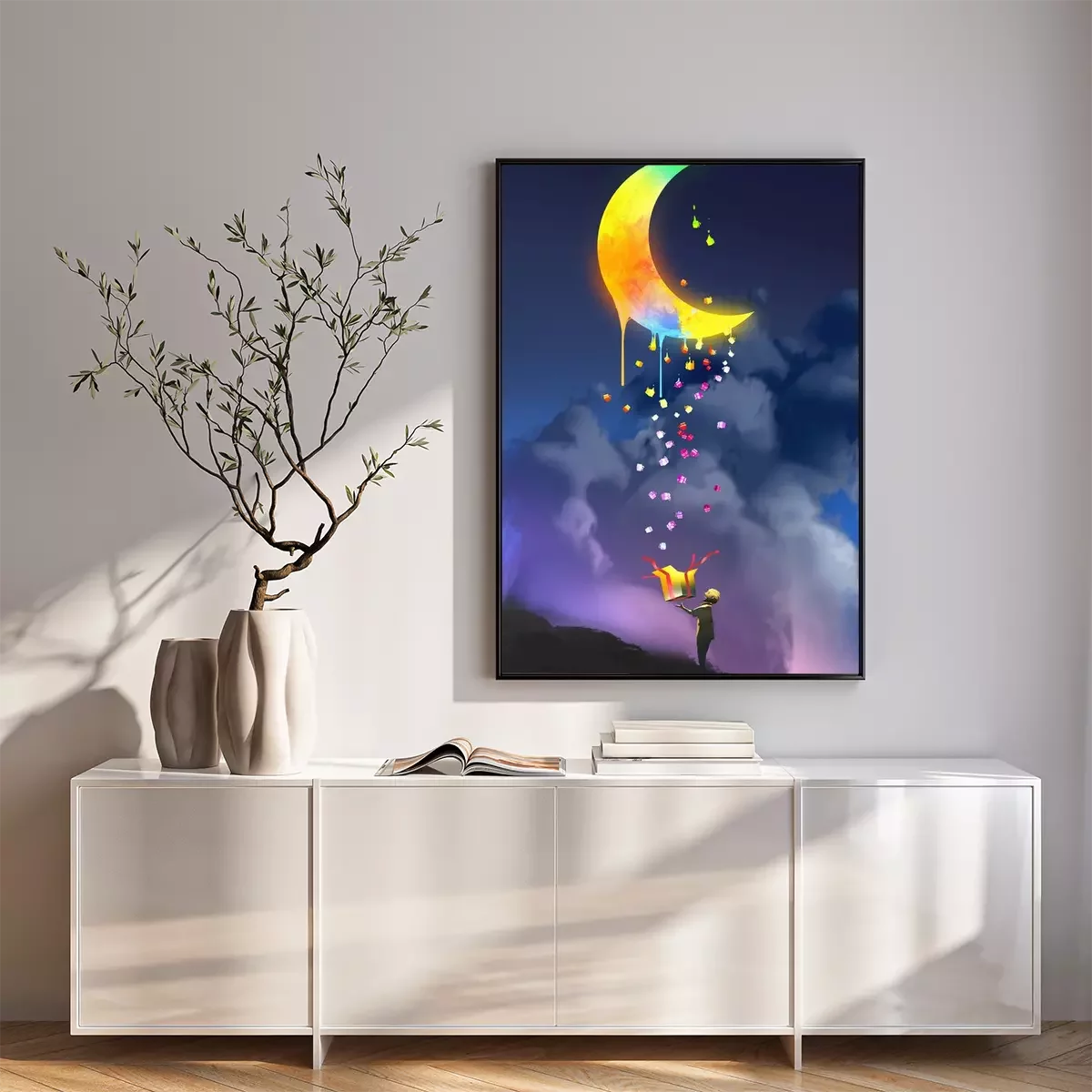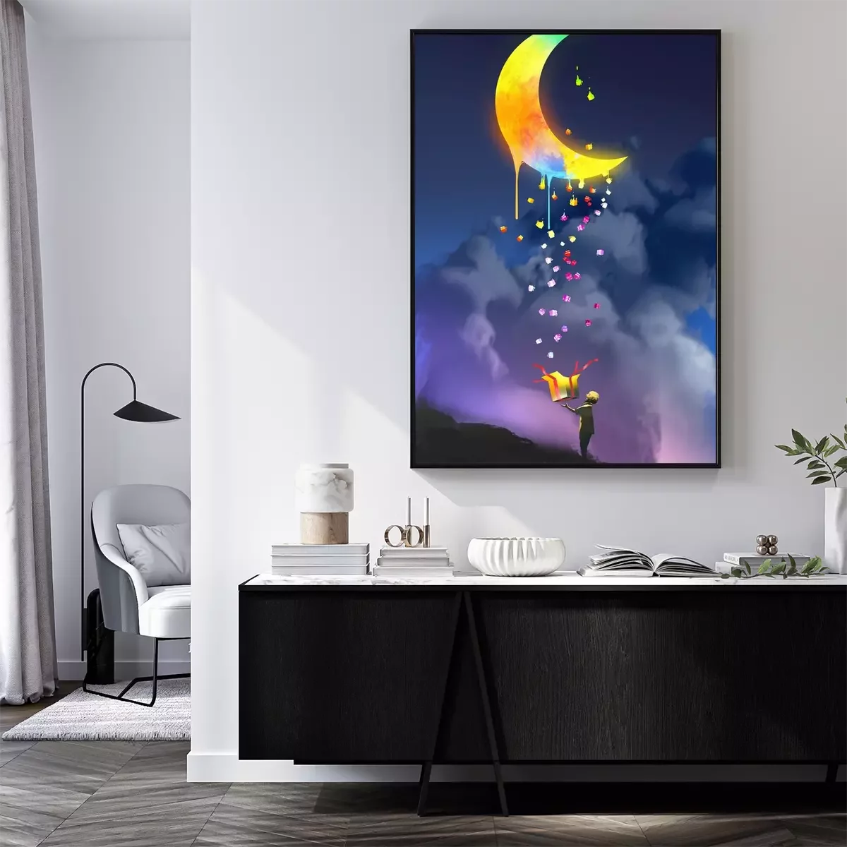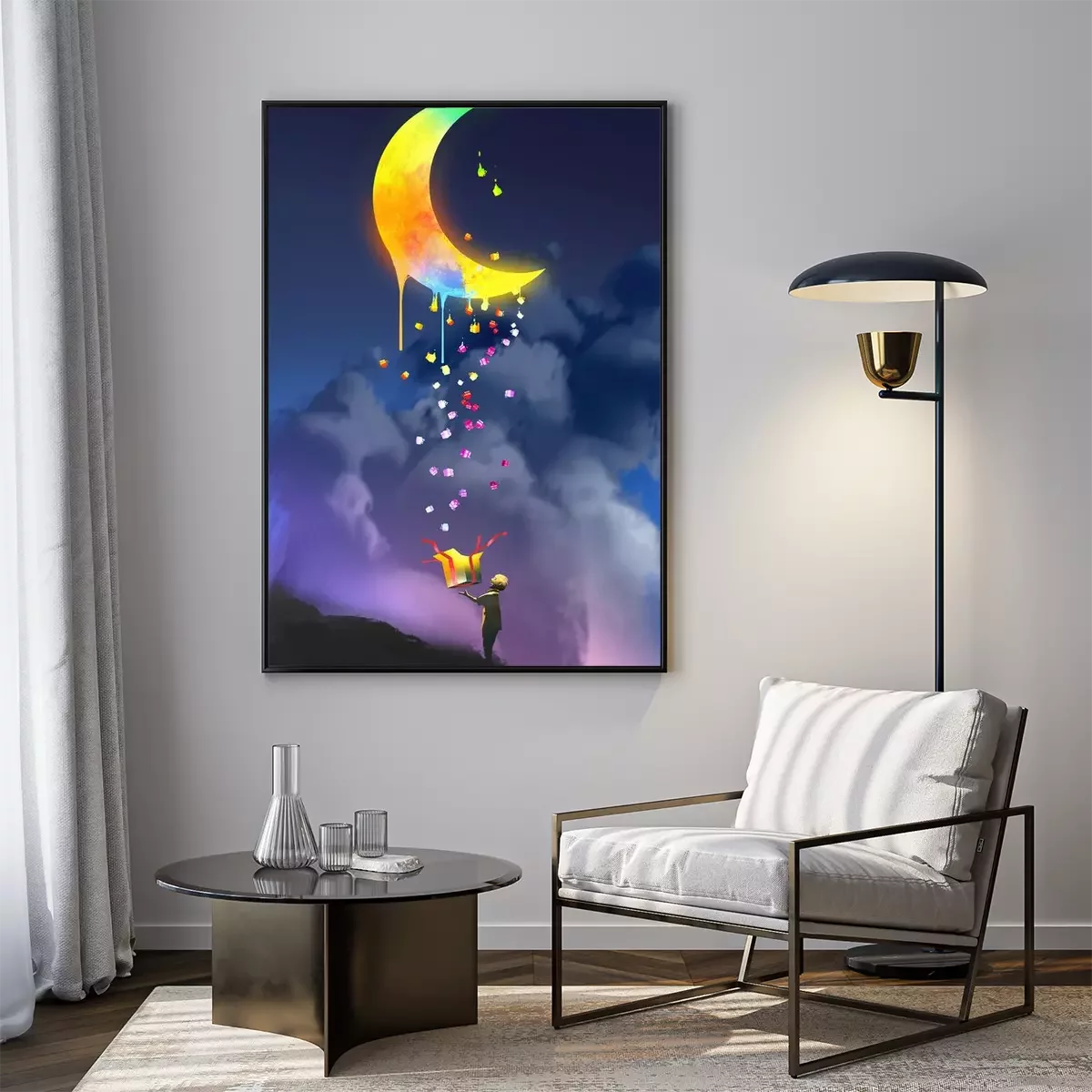 Poster: Regenboogkleuren op de maan