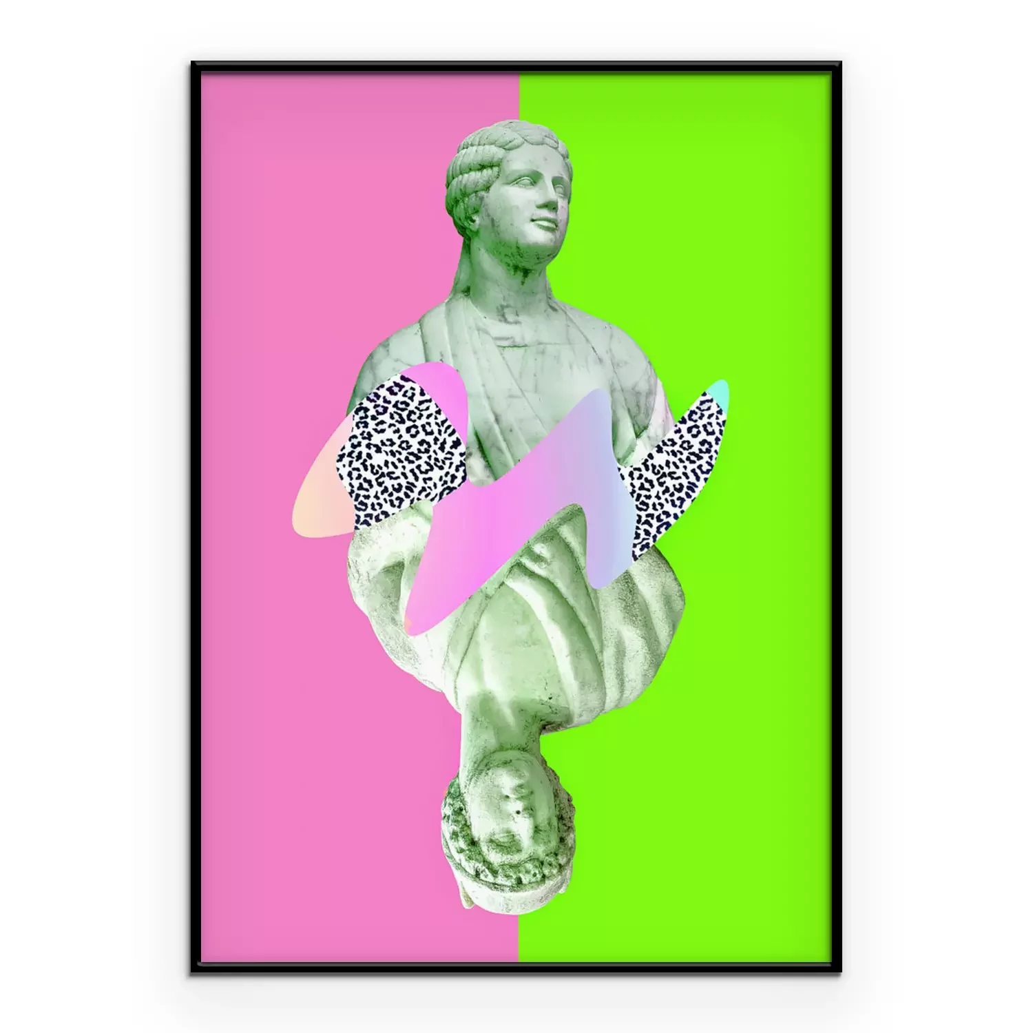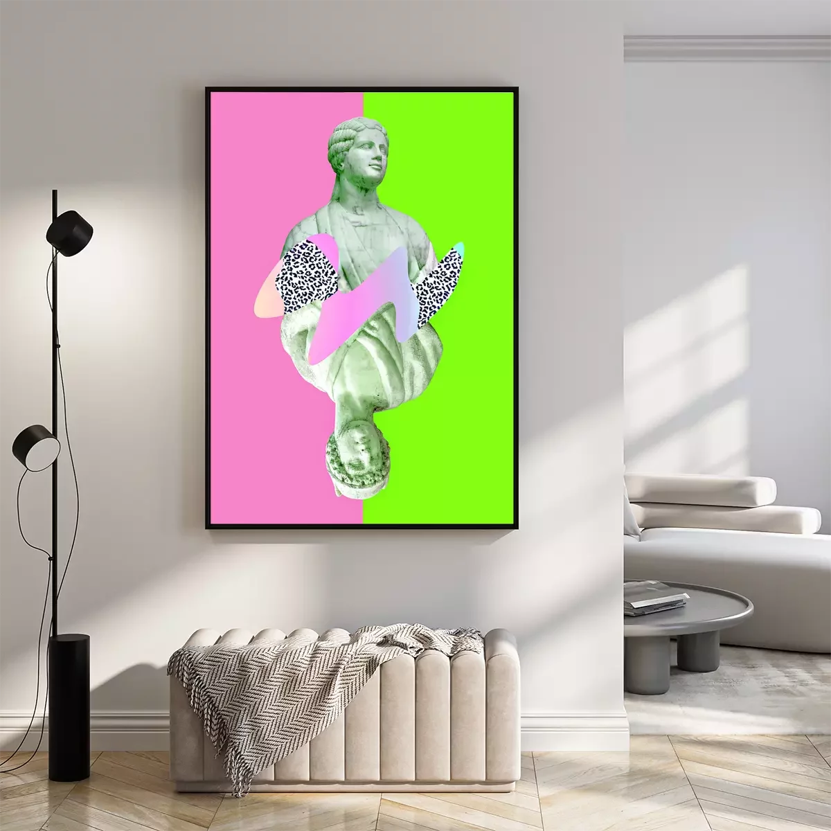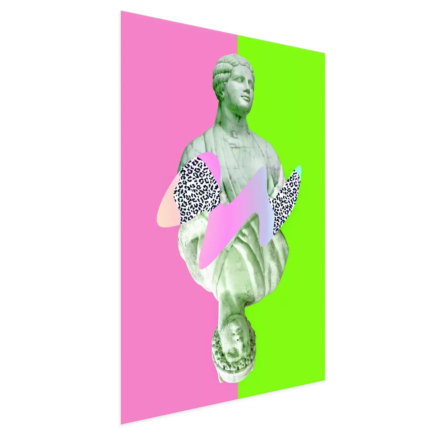 Poster: Renaissance beeldhouwwerk met een abstracte streep