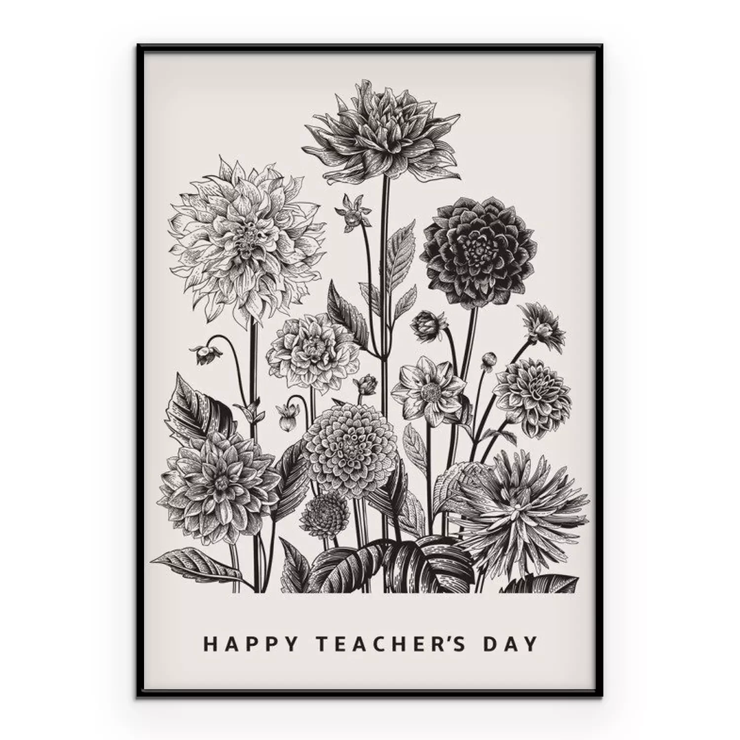 Poster: Retro bloemenkaart voor de Dag van de Leraar
