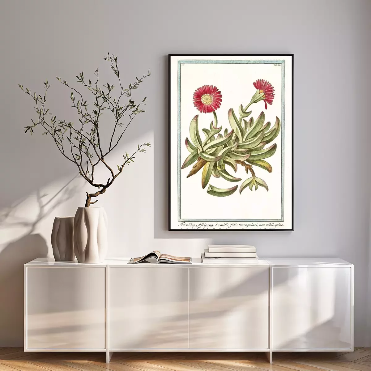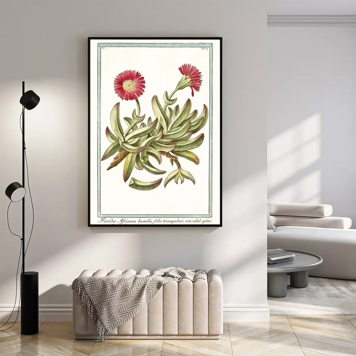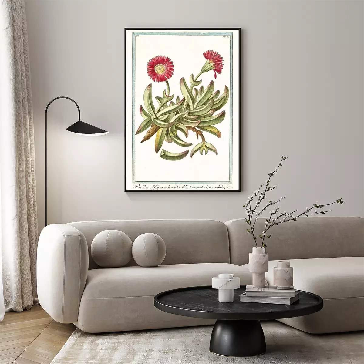 Poster: Retro botanische afbeelding van een rode zonnebloem