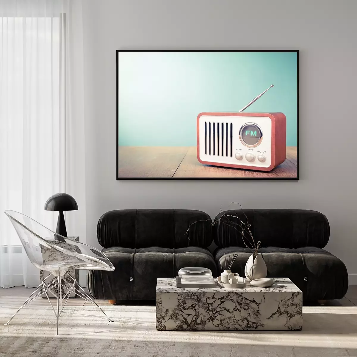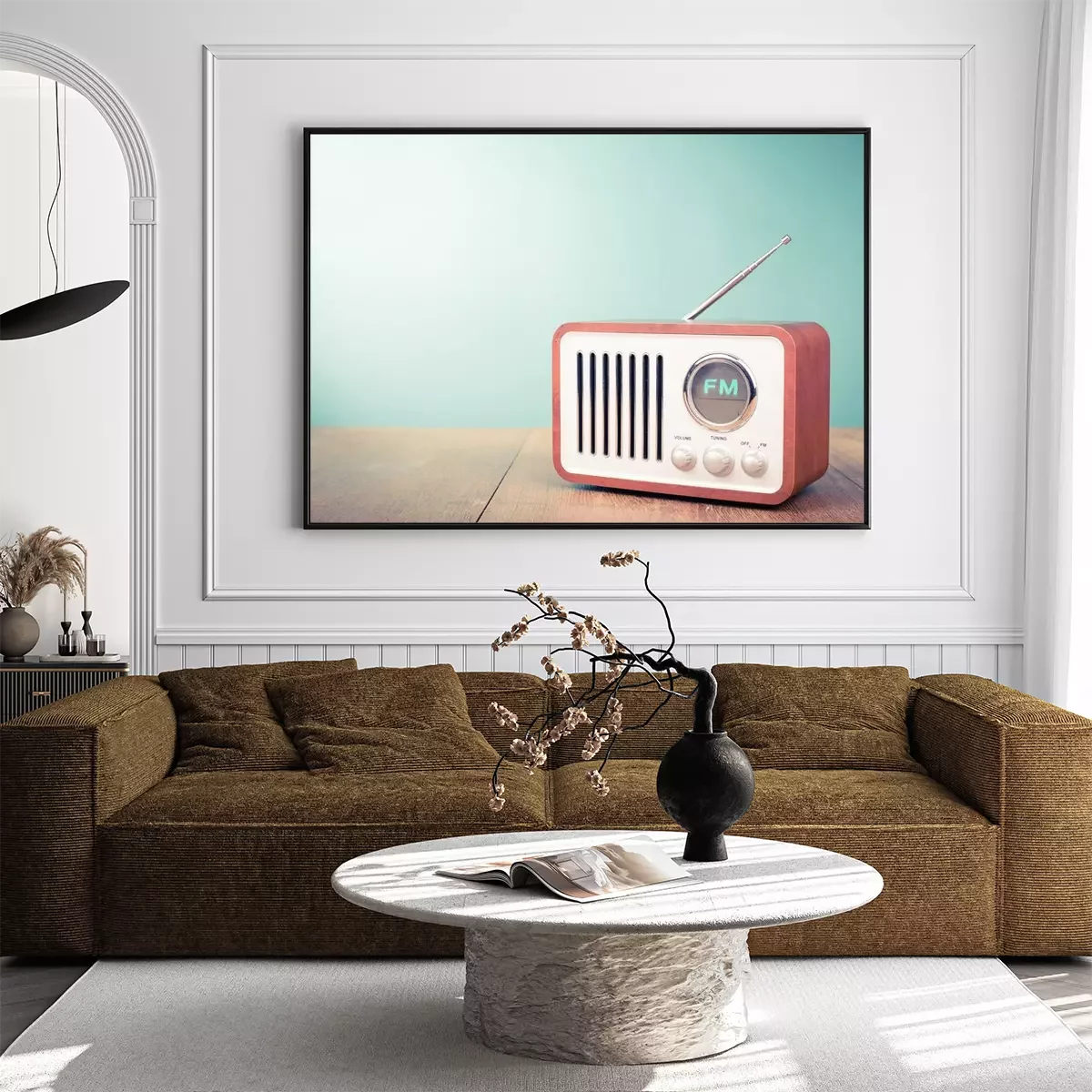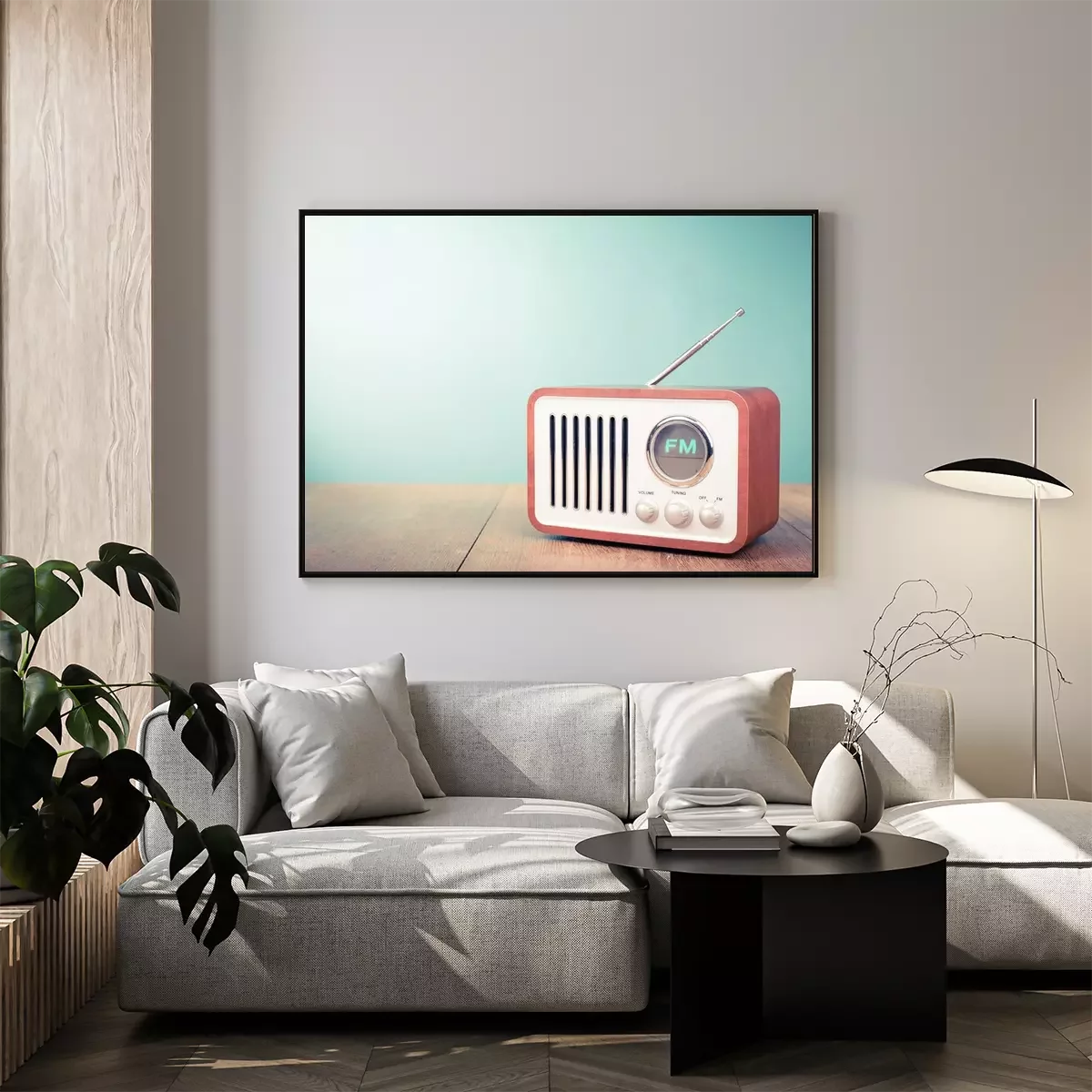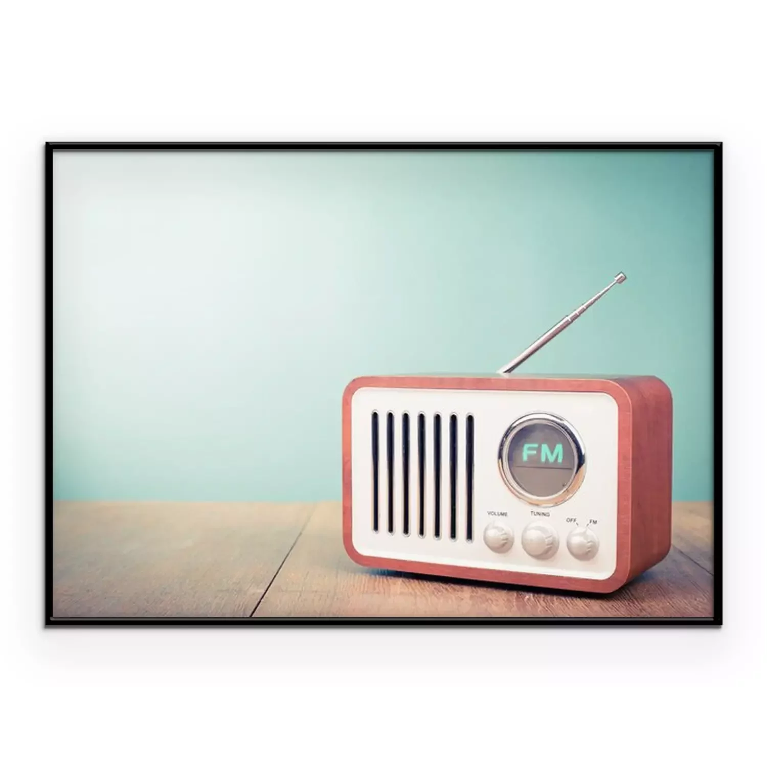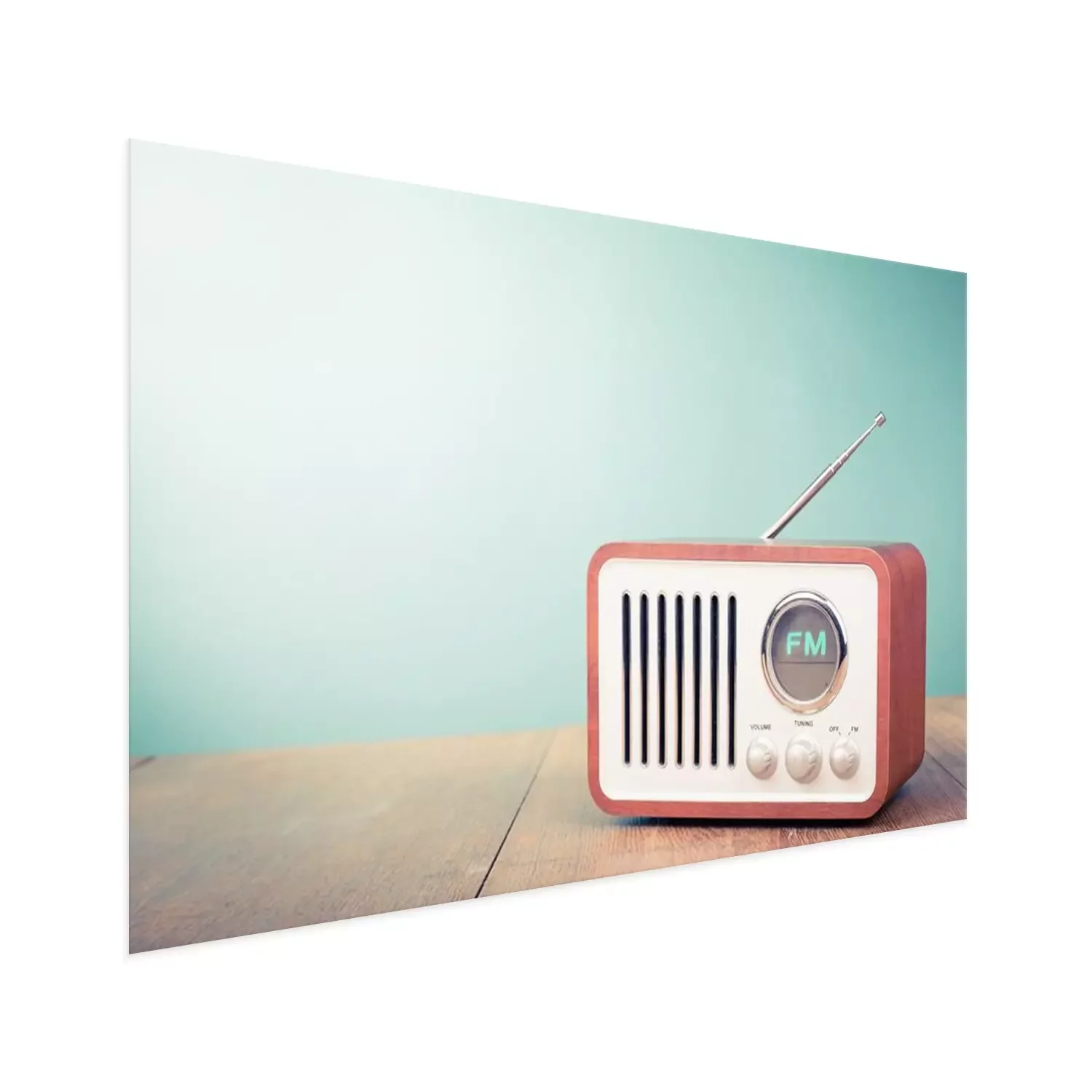 Poster: Retro oude radio front mint groene achtergrond. Vintage stijl gefiltreerde foto