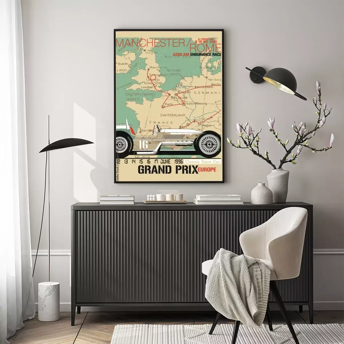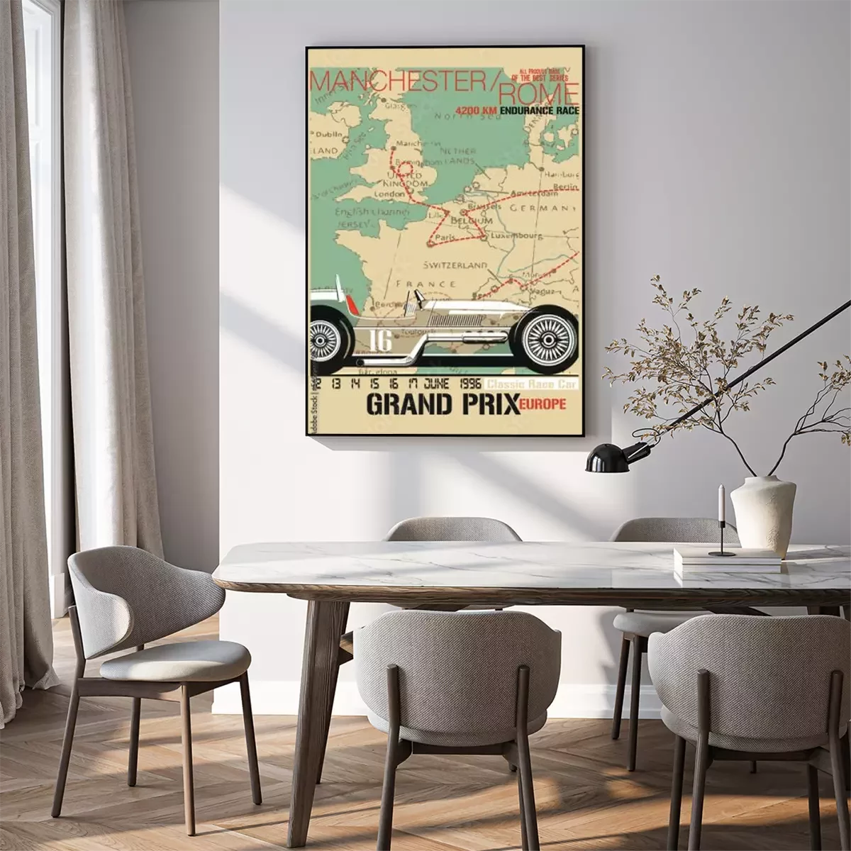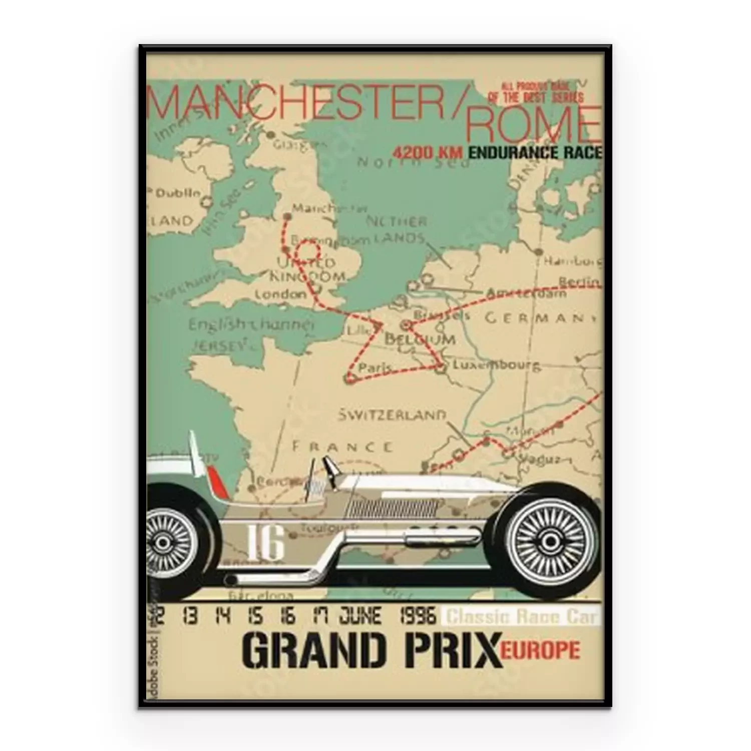 Poster Retro race Manchester-Rome