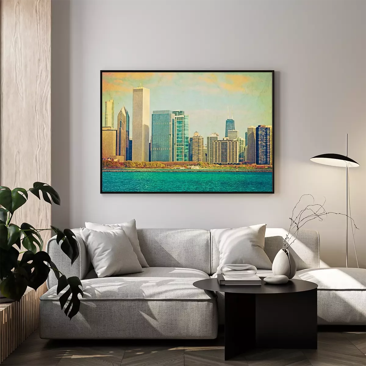 Panorama van Chicago in retro tinten