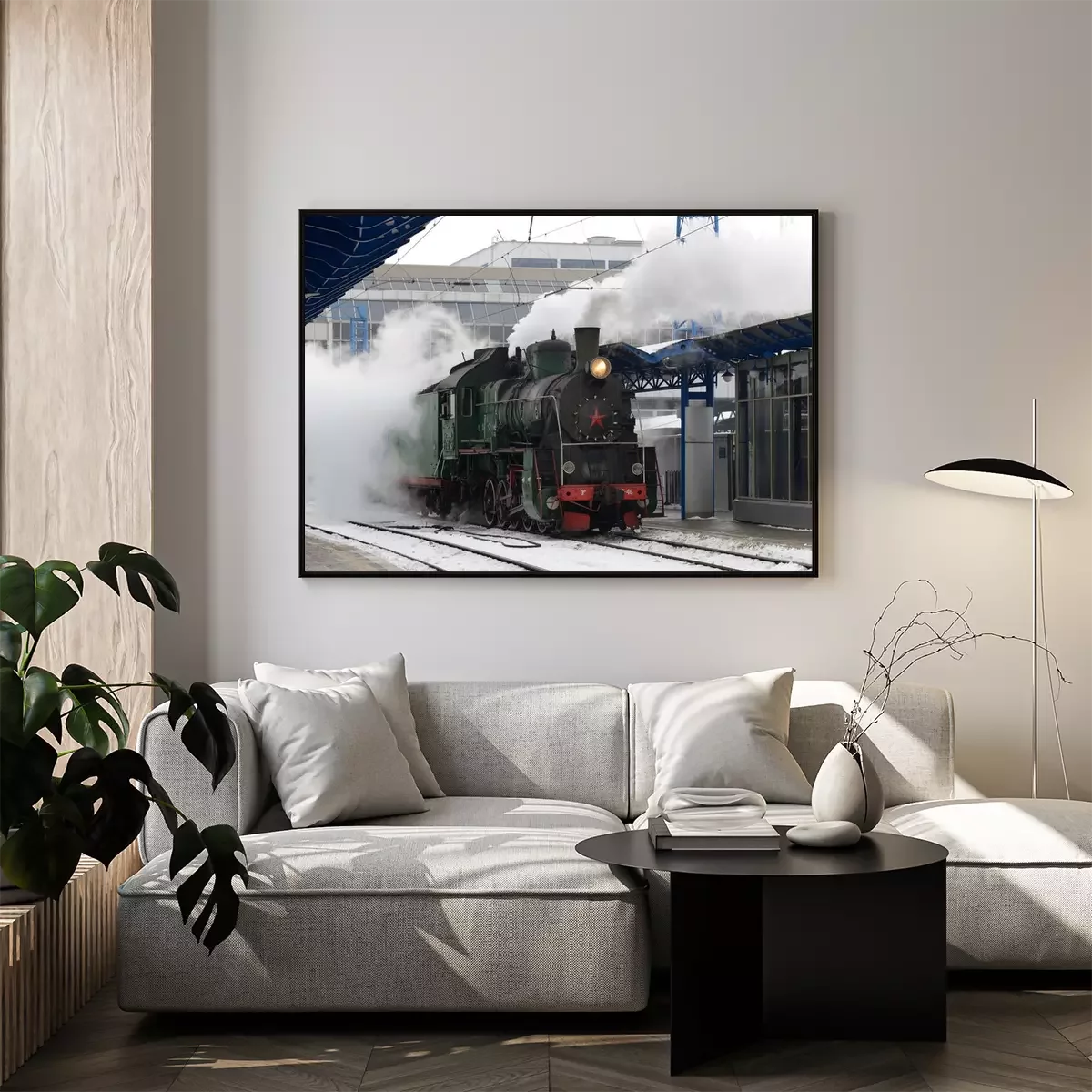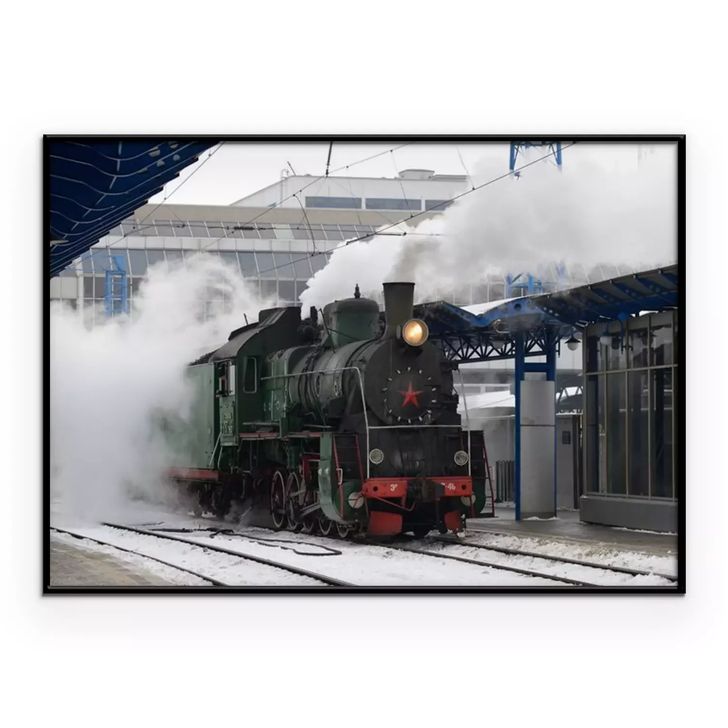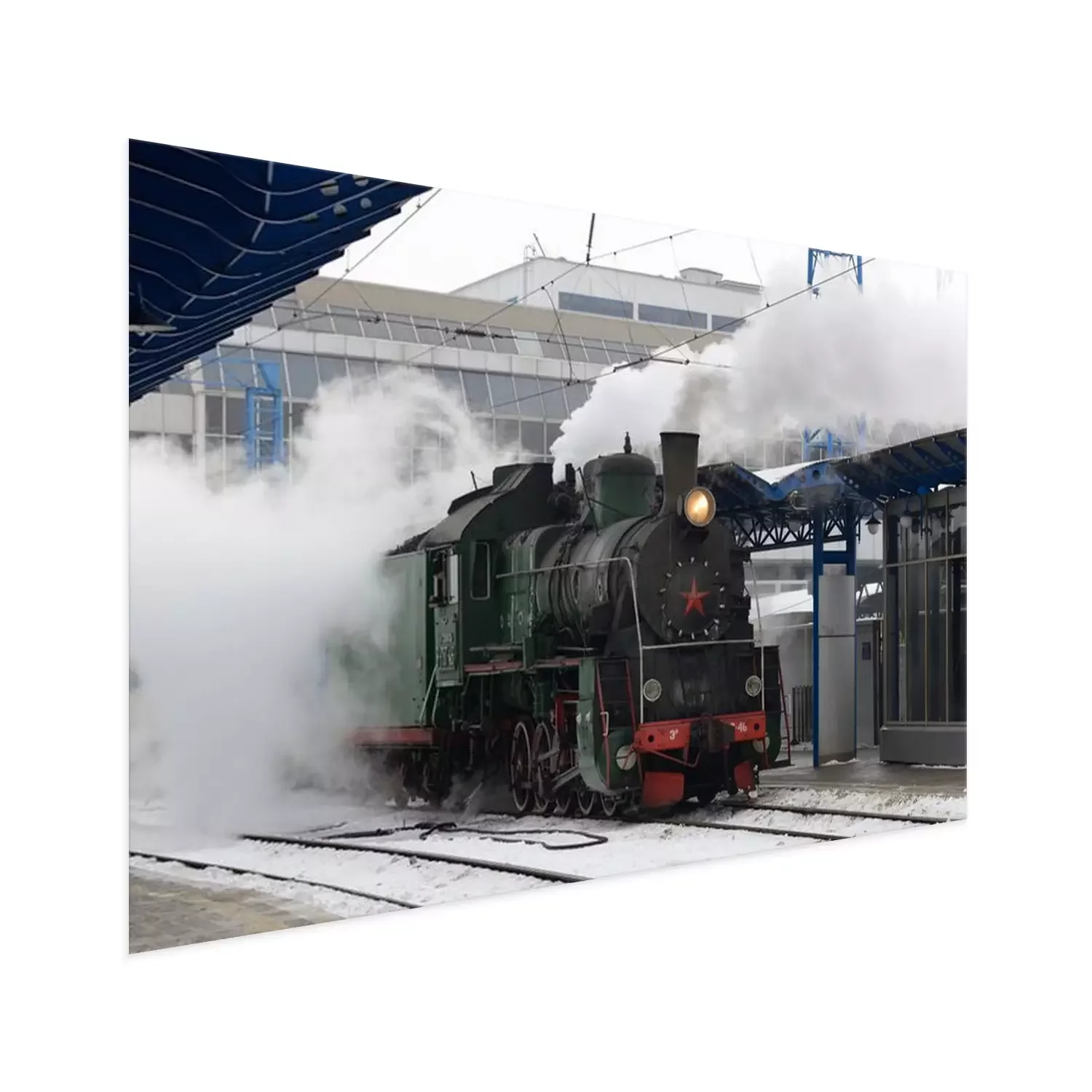 Poster: Retro stoomtrein op het station, Kiev, Oekraïne