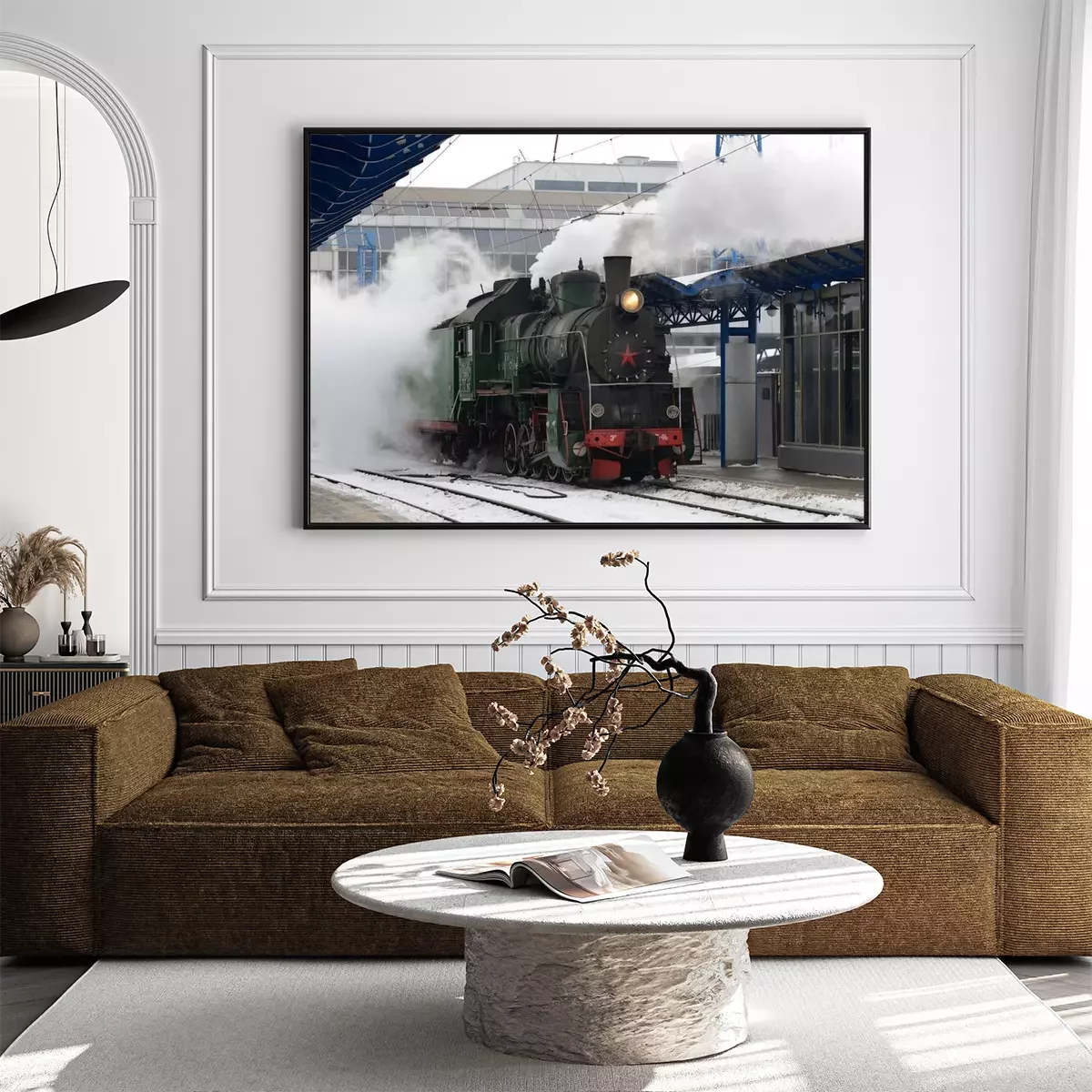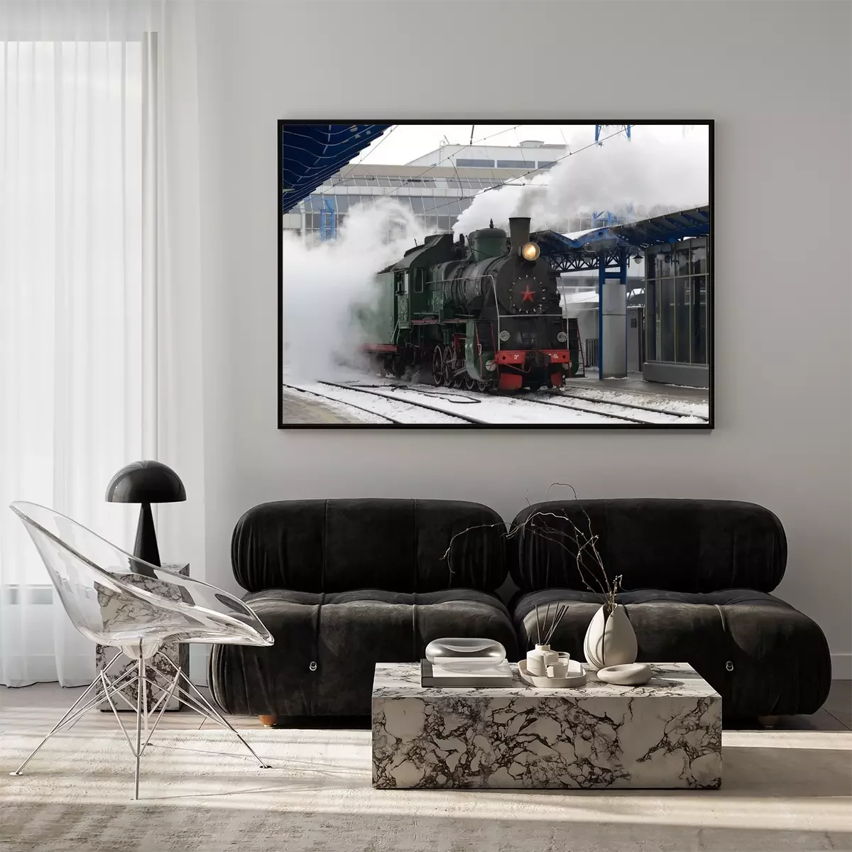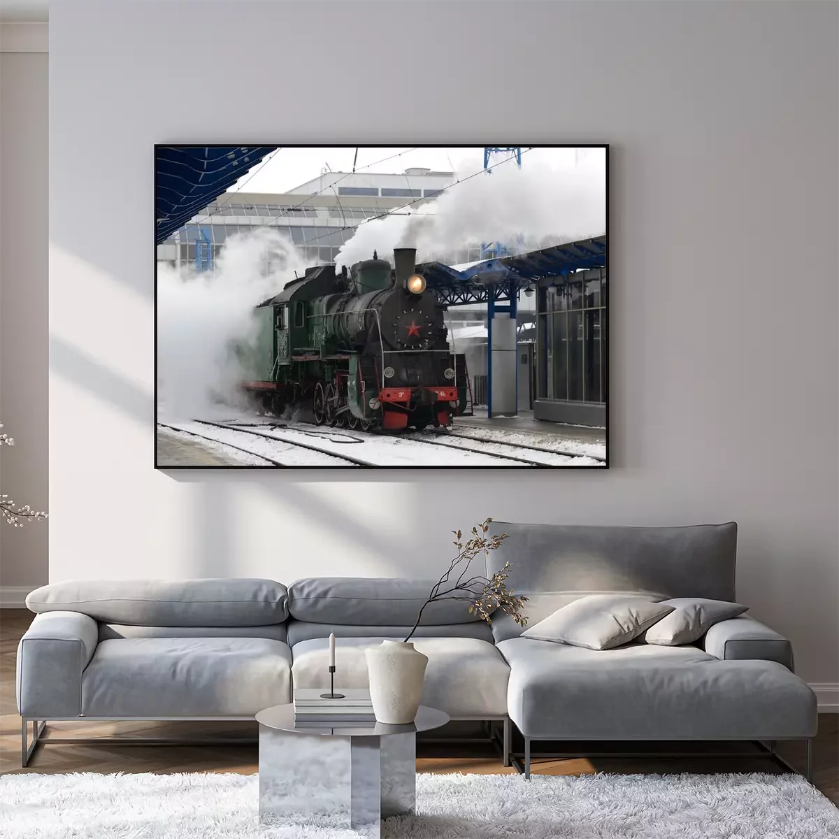 Poster: Retro stoomtrein op het station, Kiev, Oekraïne