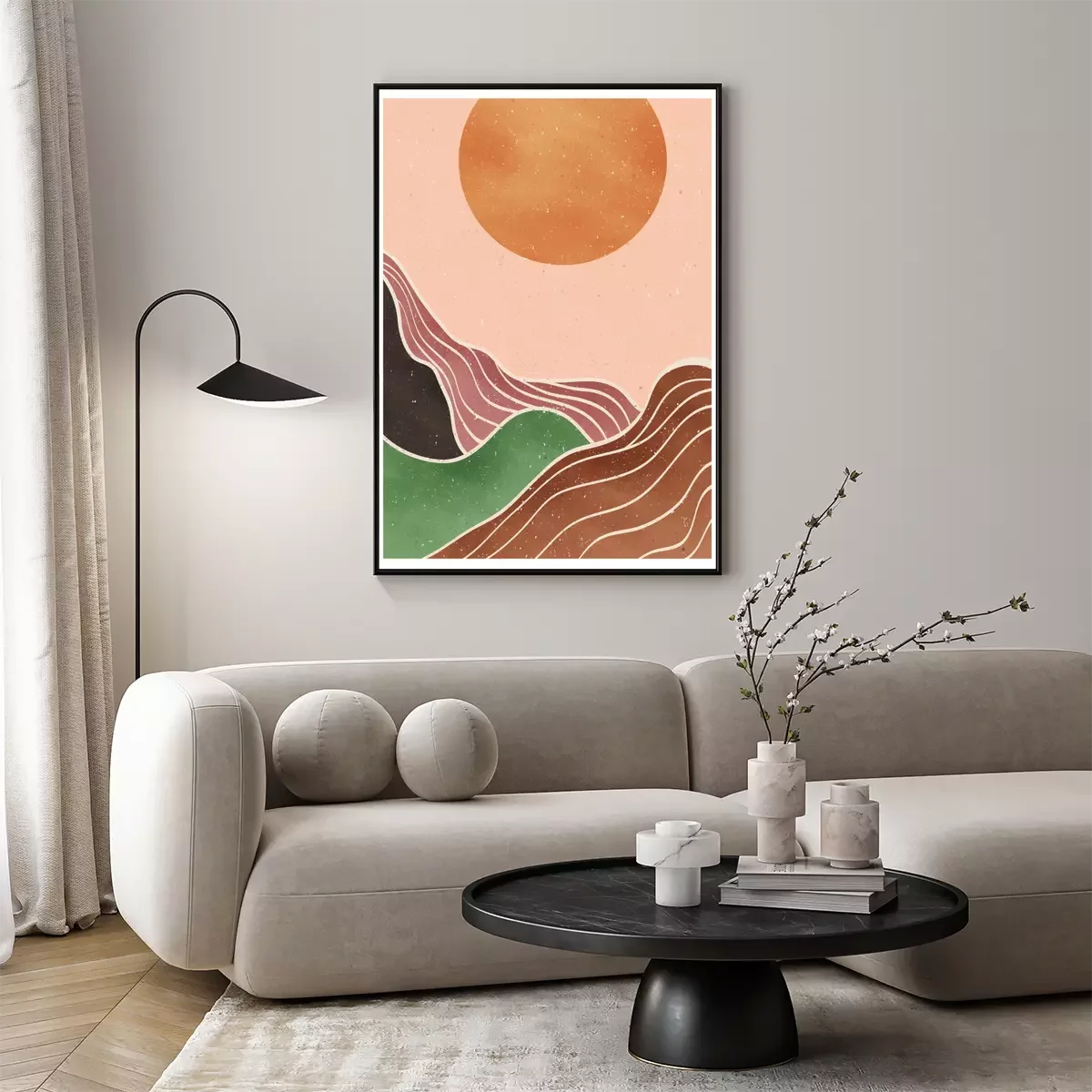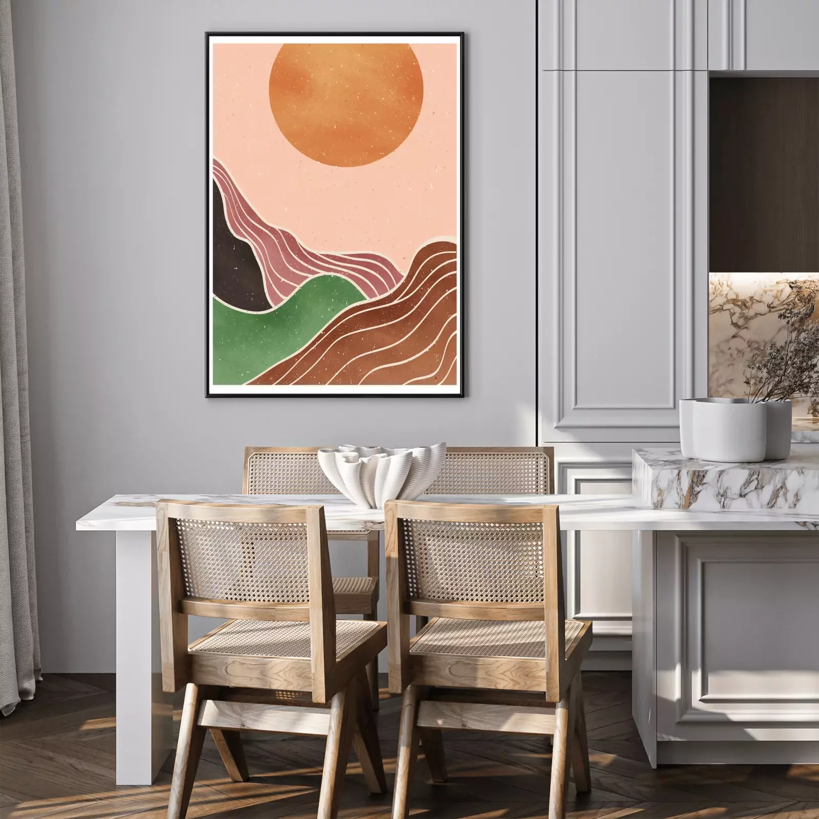 Poster: Rijzende zon boho landschap