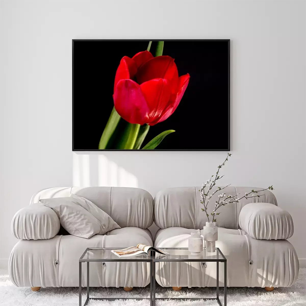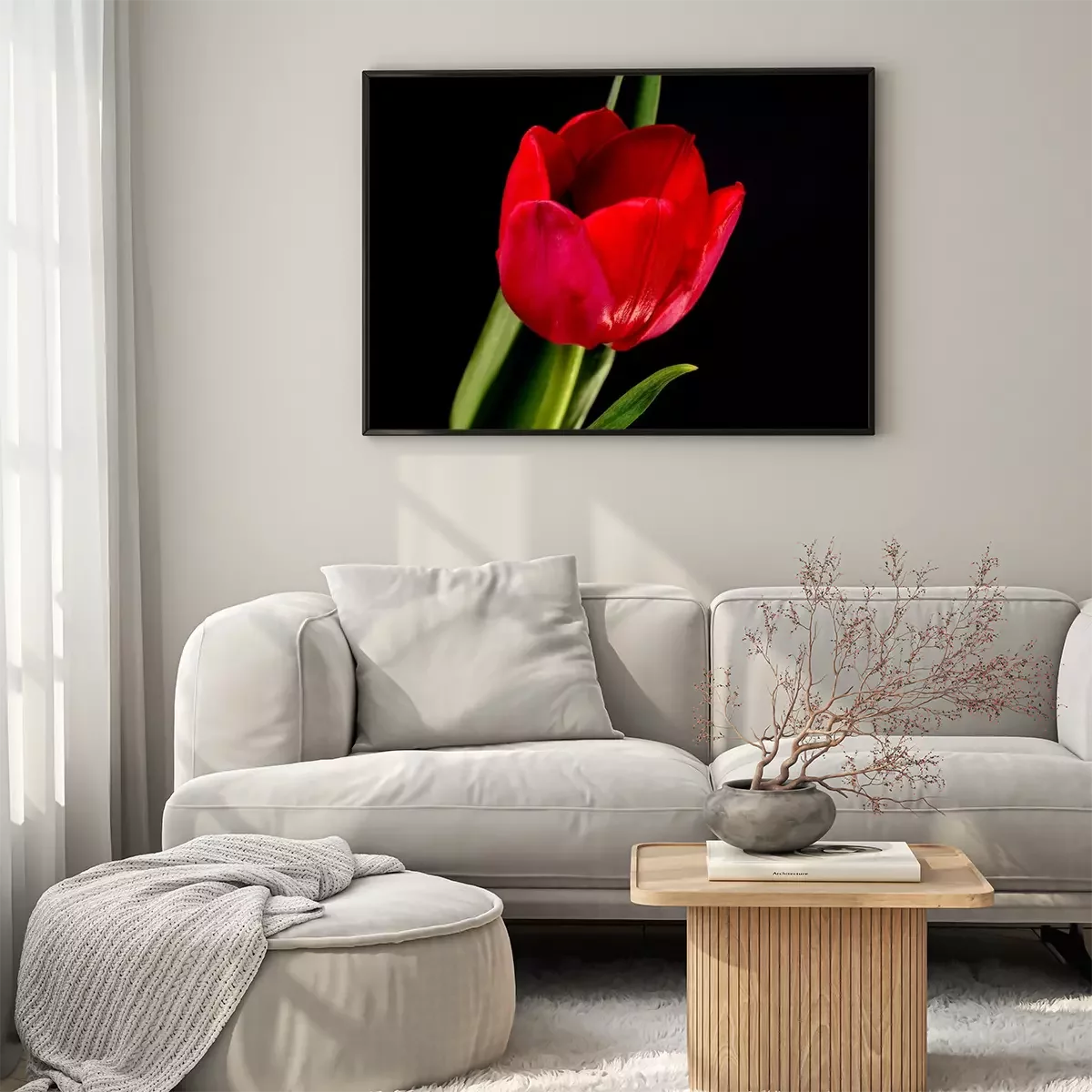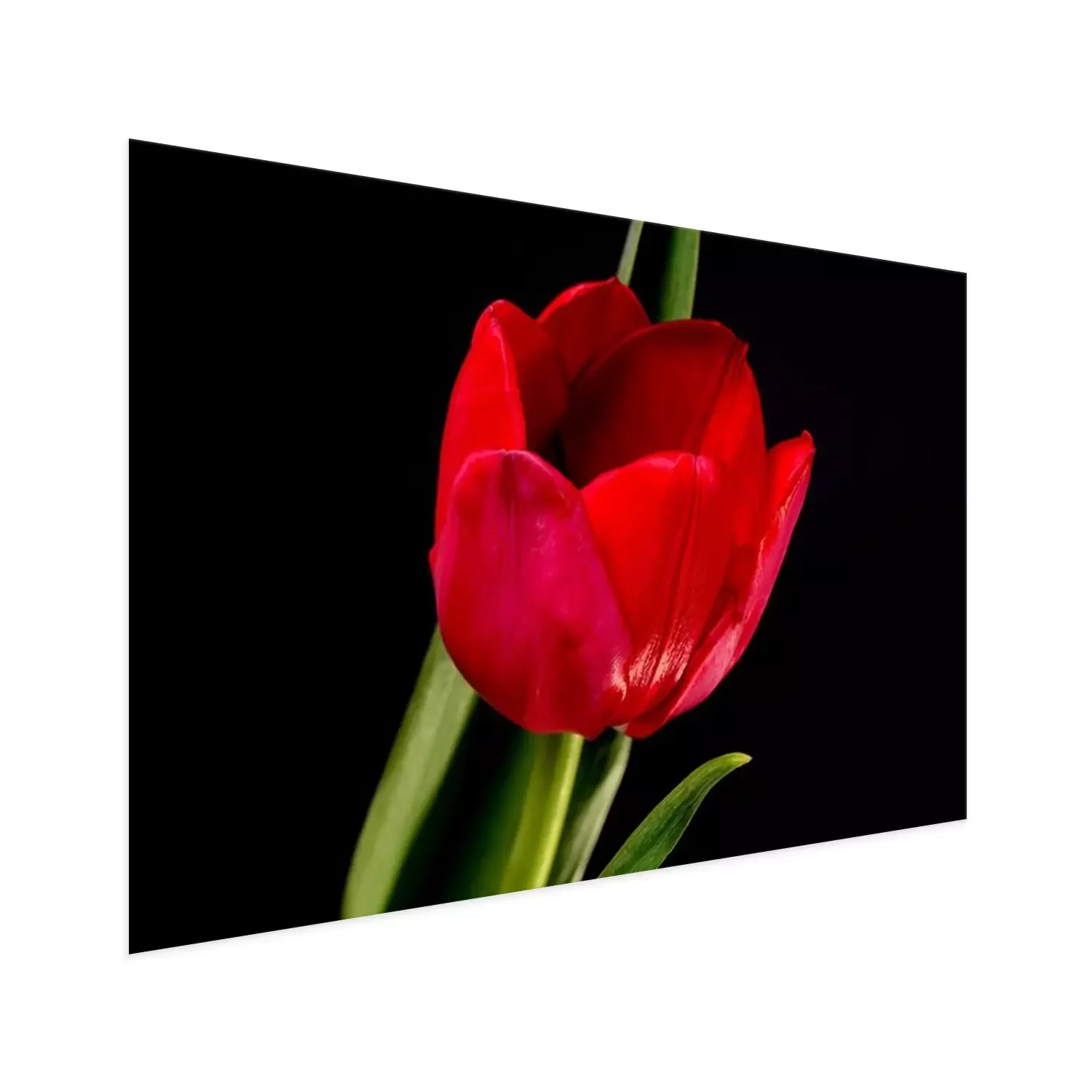 Poster: Rode bloem en zwart landschap