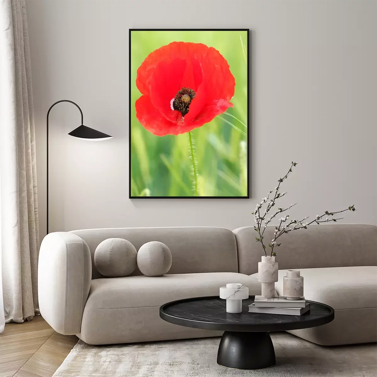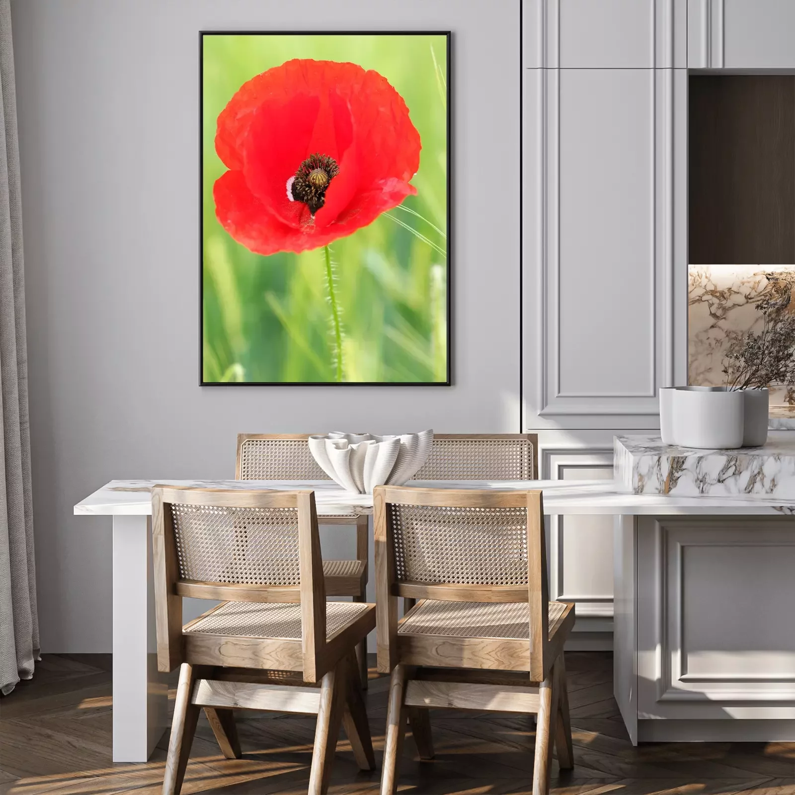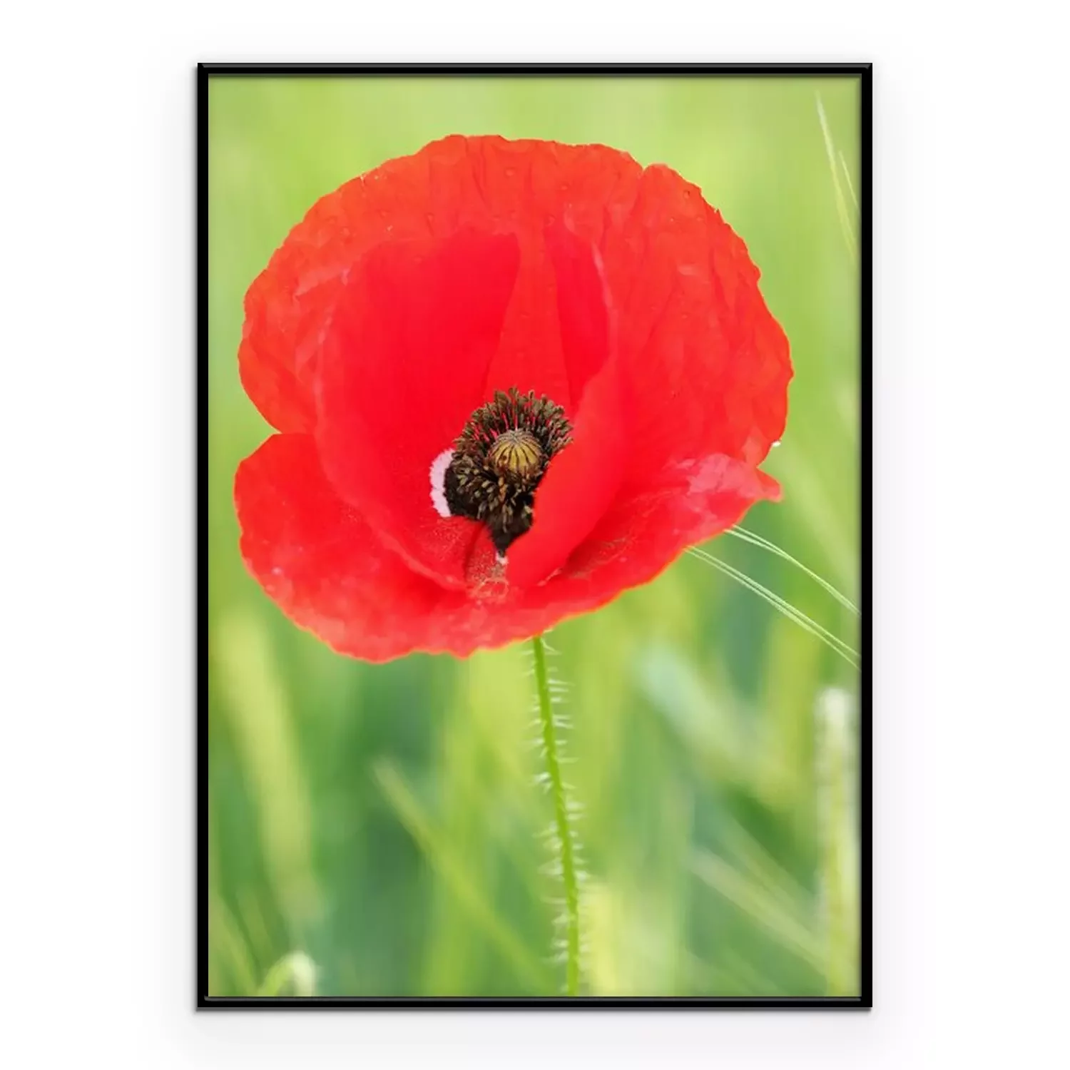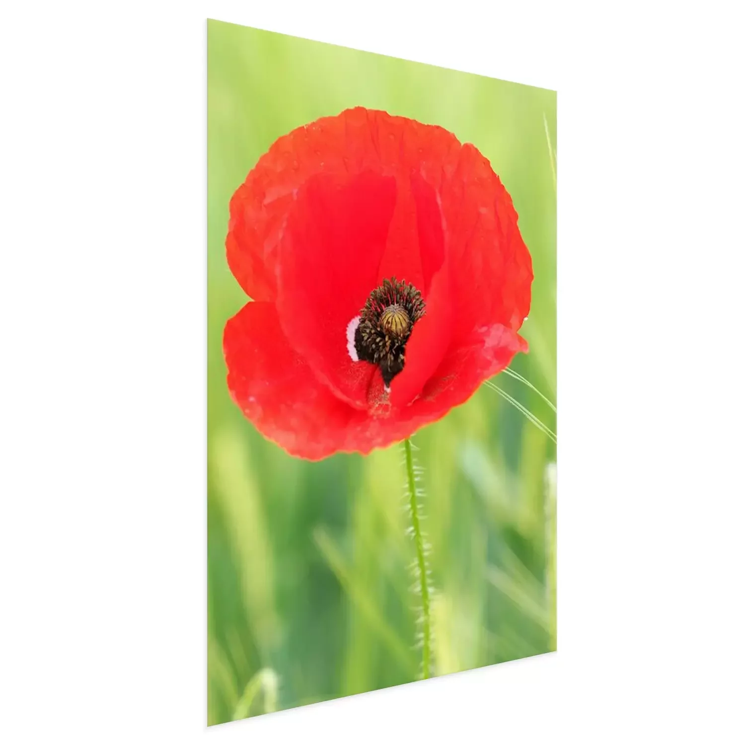 Poster: Rode bloem op de achtergrond van de weide