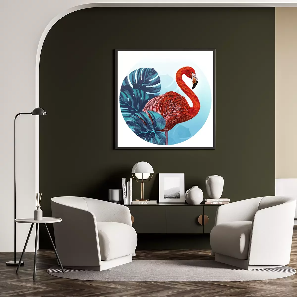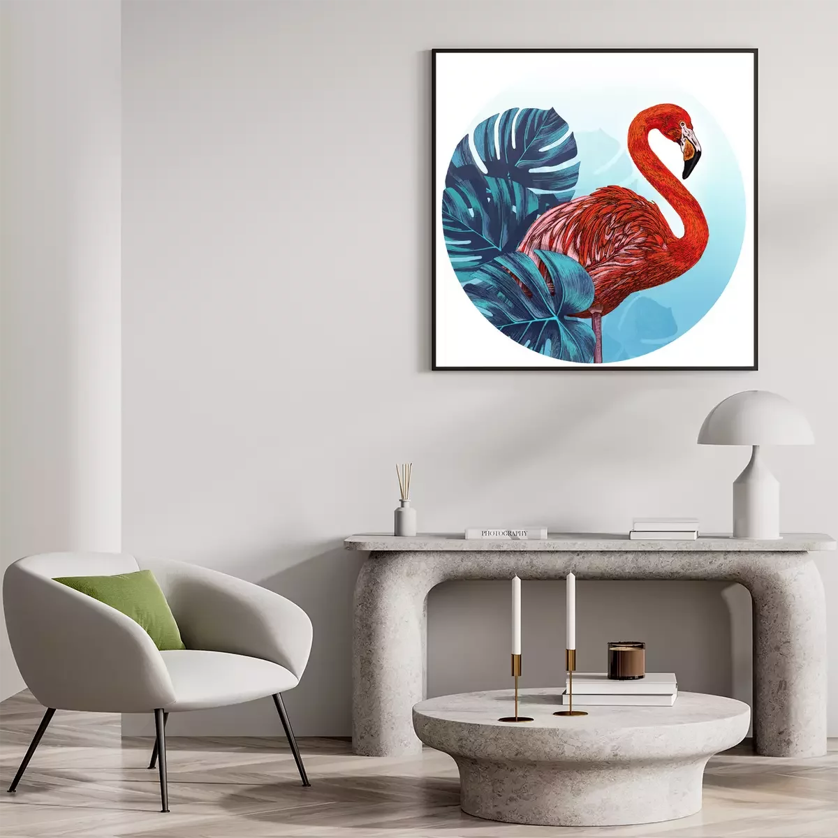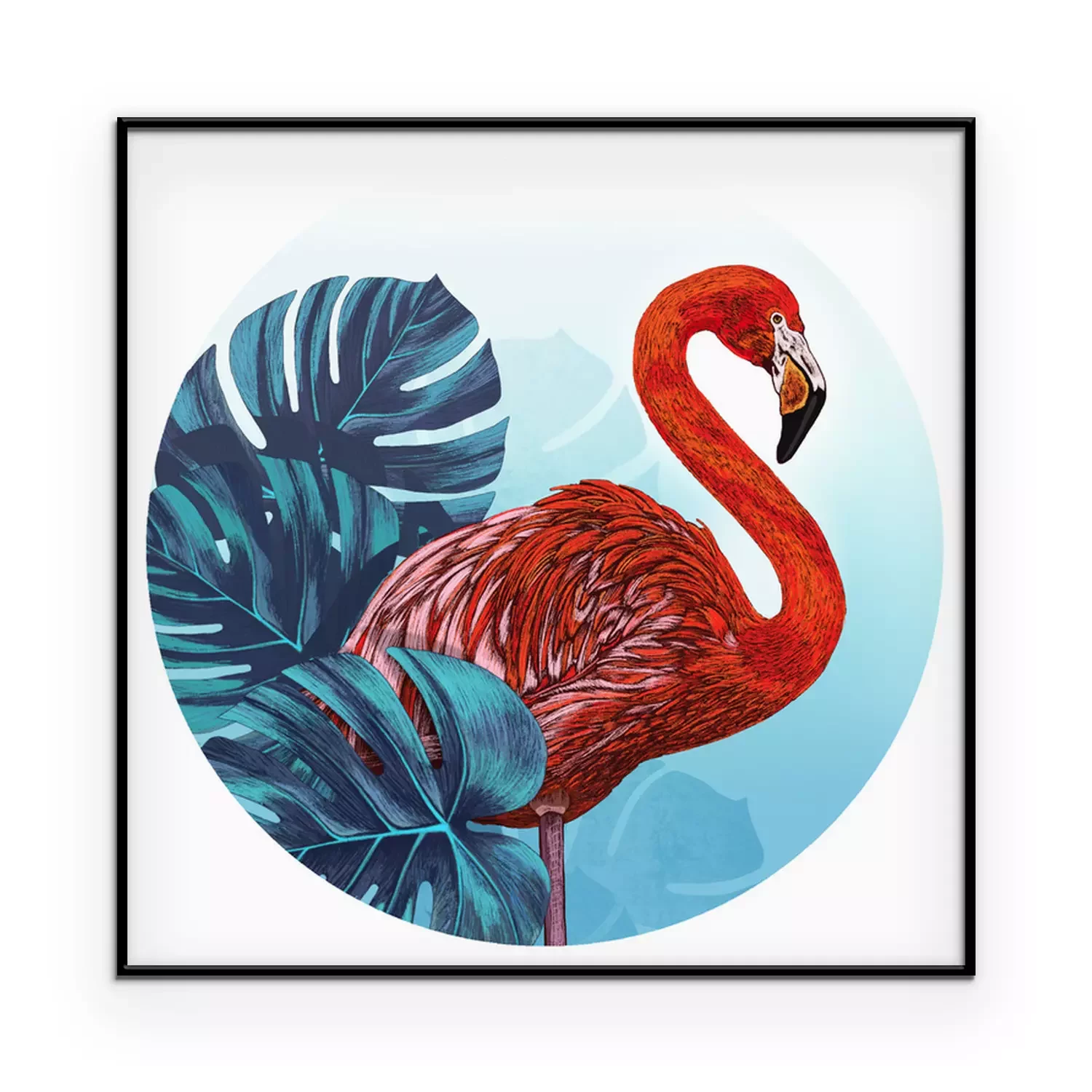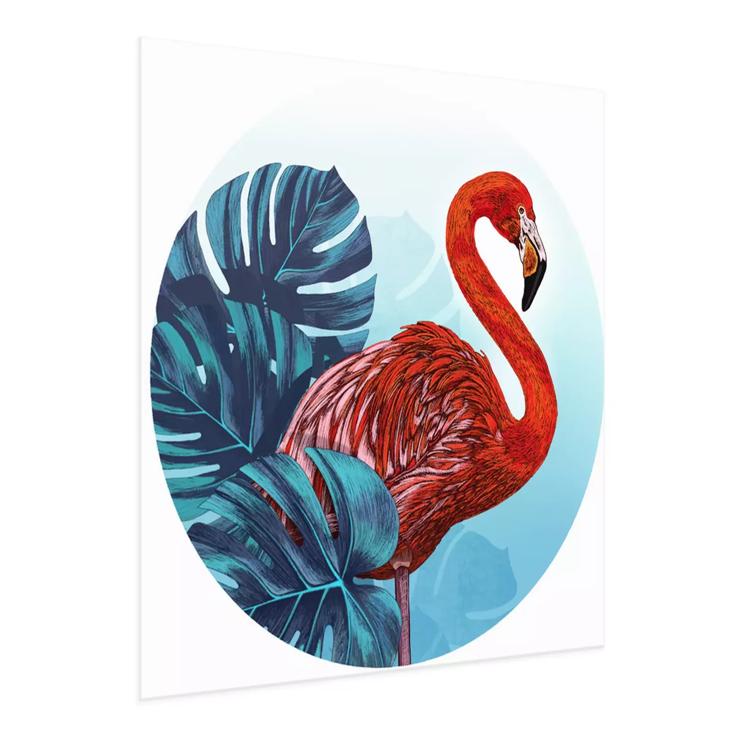 Poster: Rode flamingo en bladeren
