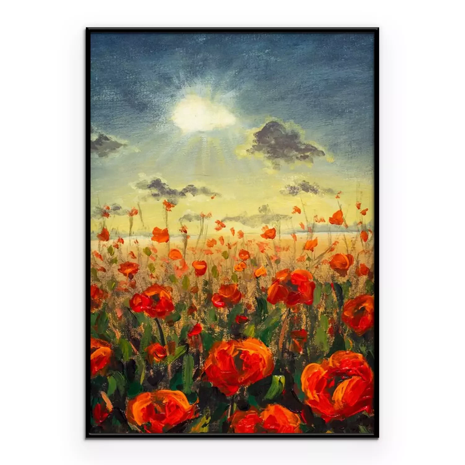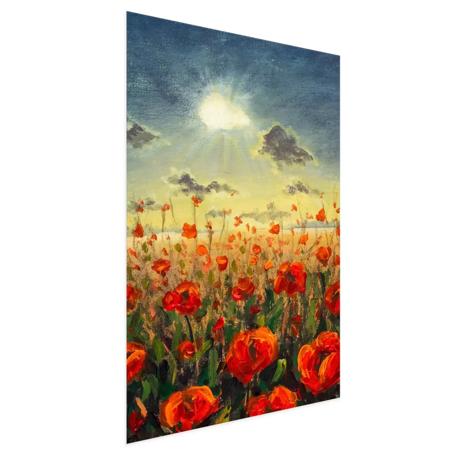Poster: Rode klaprozen onder een donkerblauwe lucht