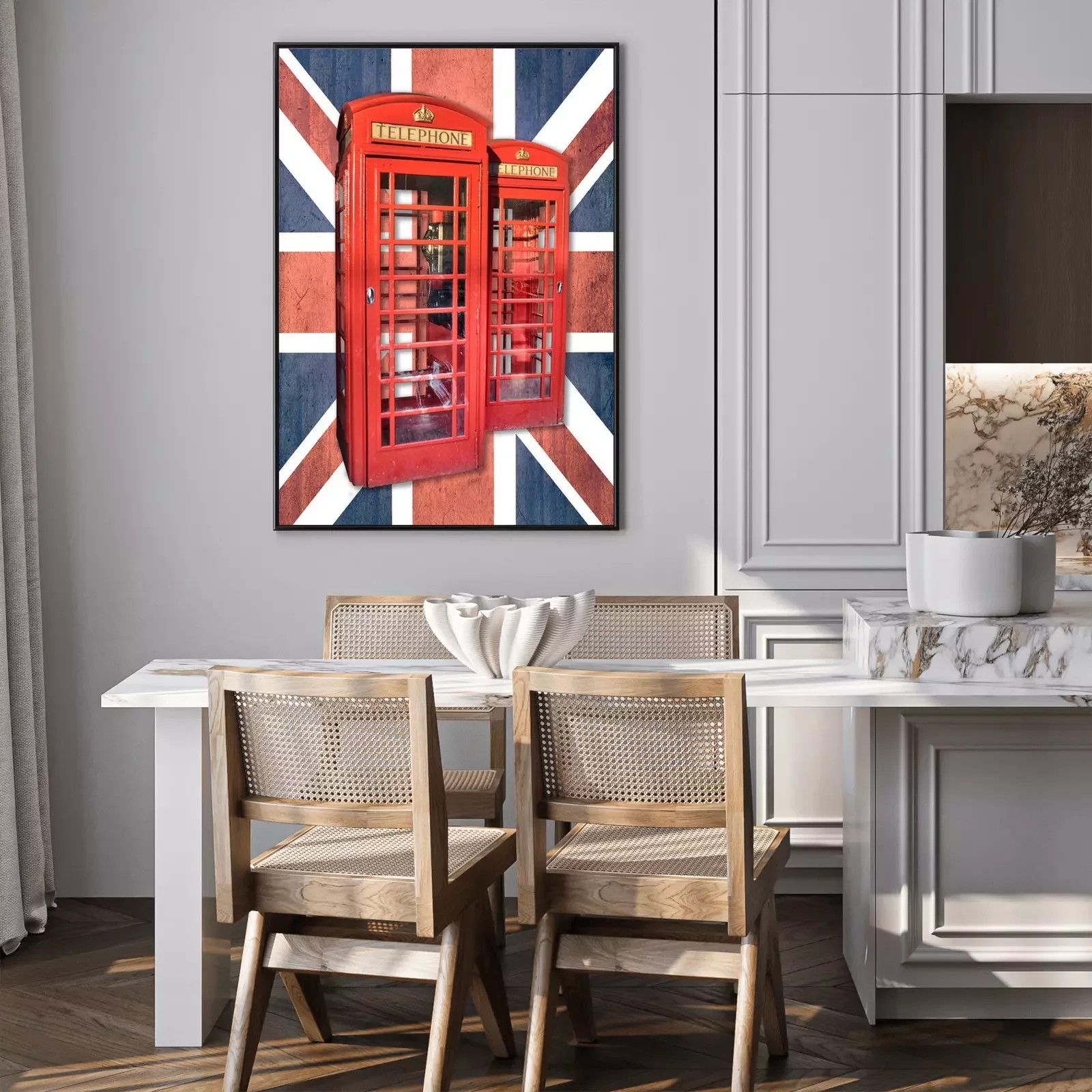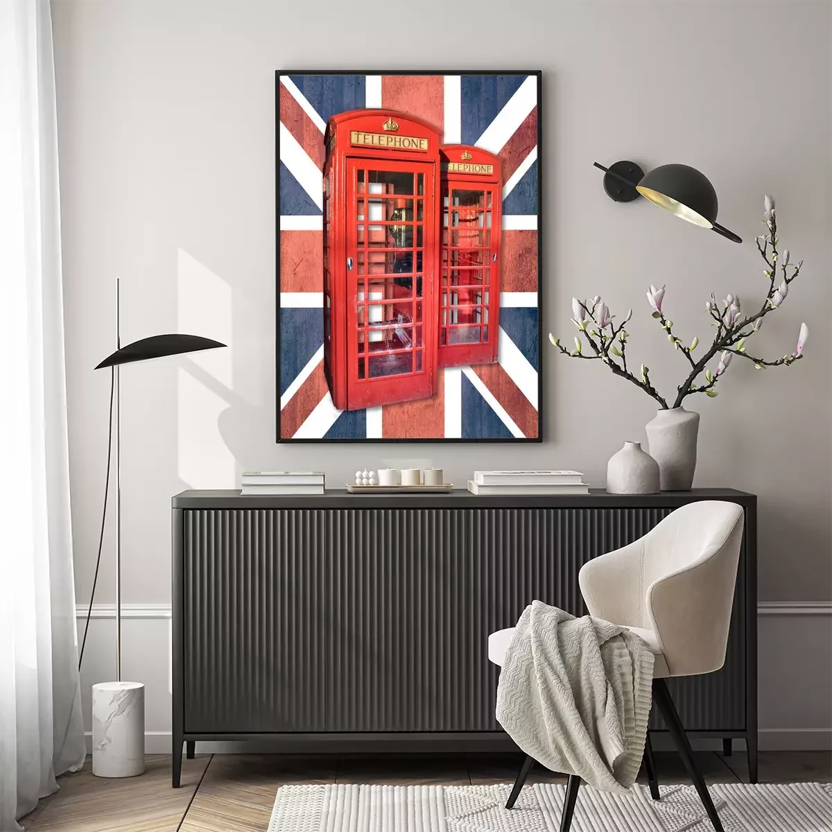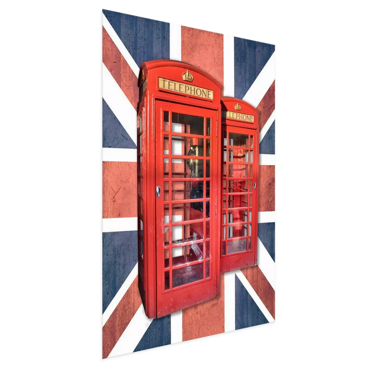 Poster Rode telefooncellen op de achtergrond van de vlag