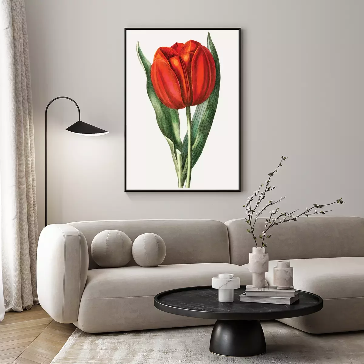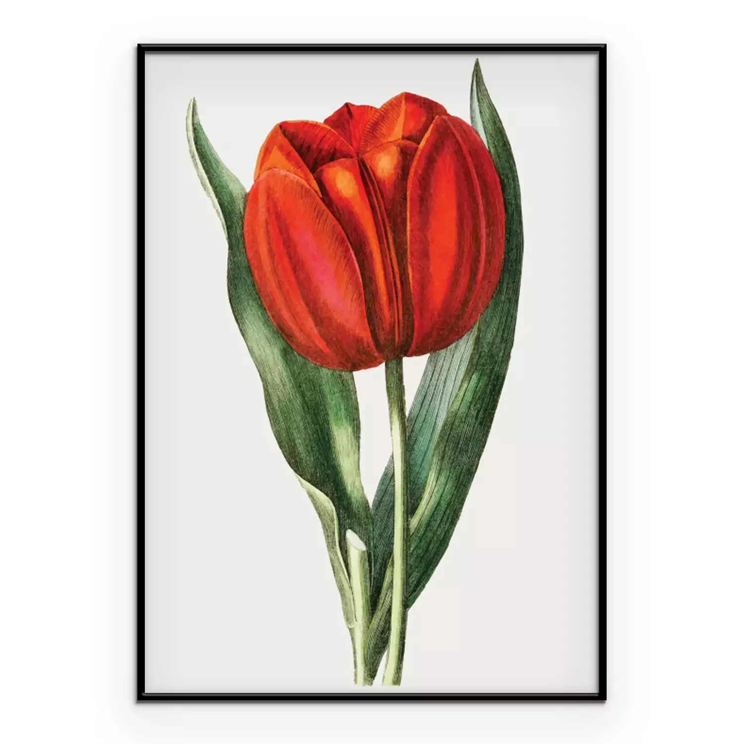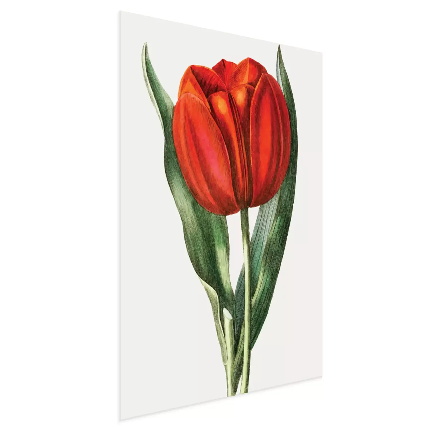 Poster: Rode tulp omgeven door bladeren