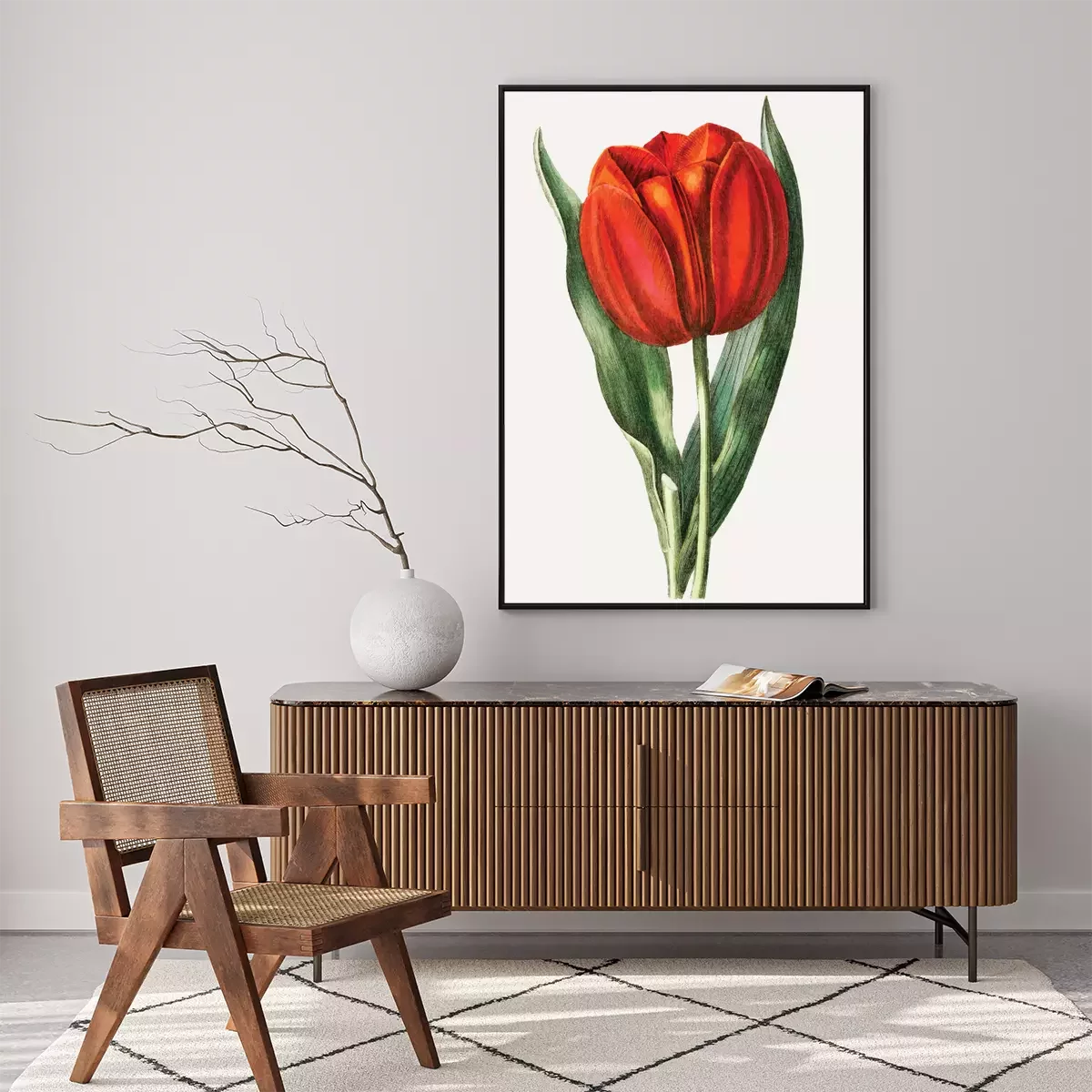 Poster Rode tulp omgeven door bladeren