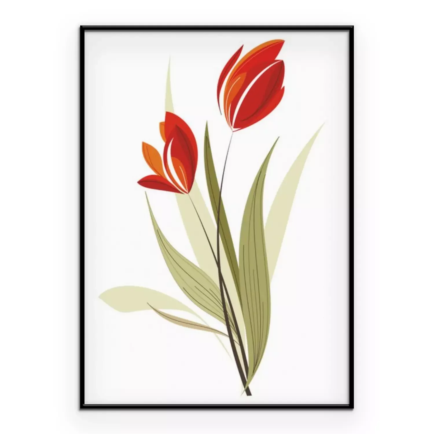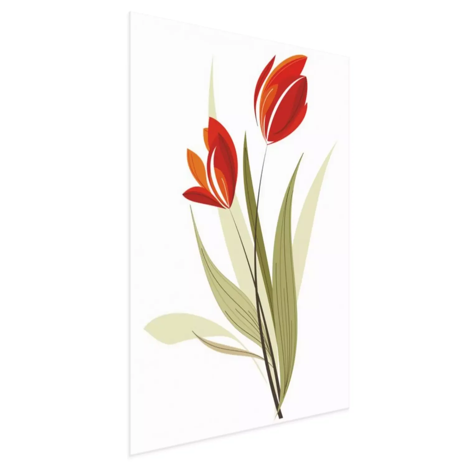 Poster: Rode tulpen en bladeren zonder contouren