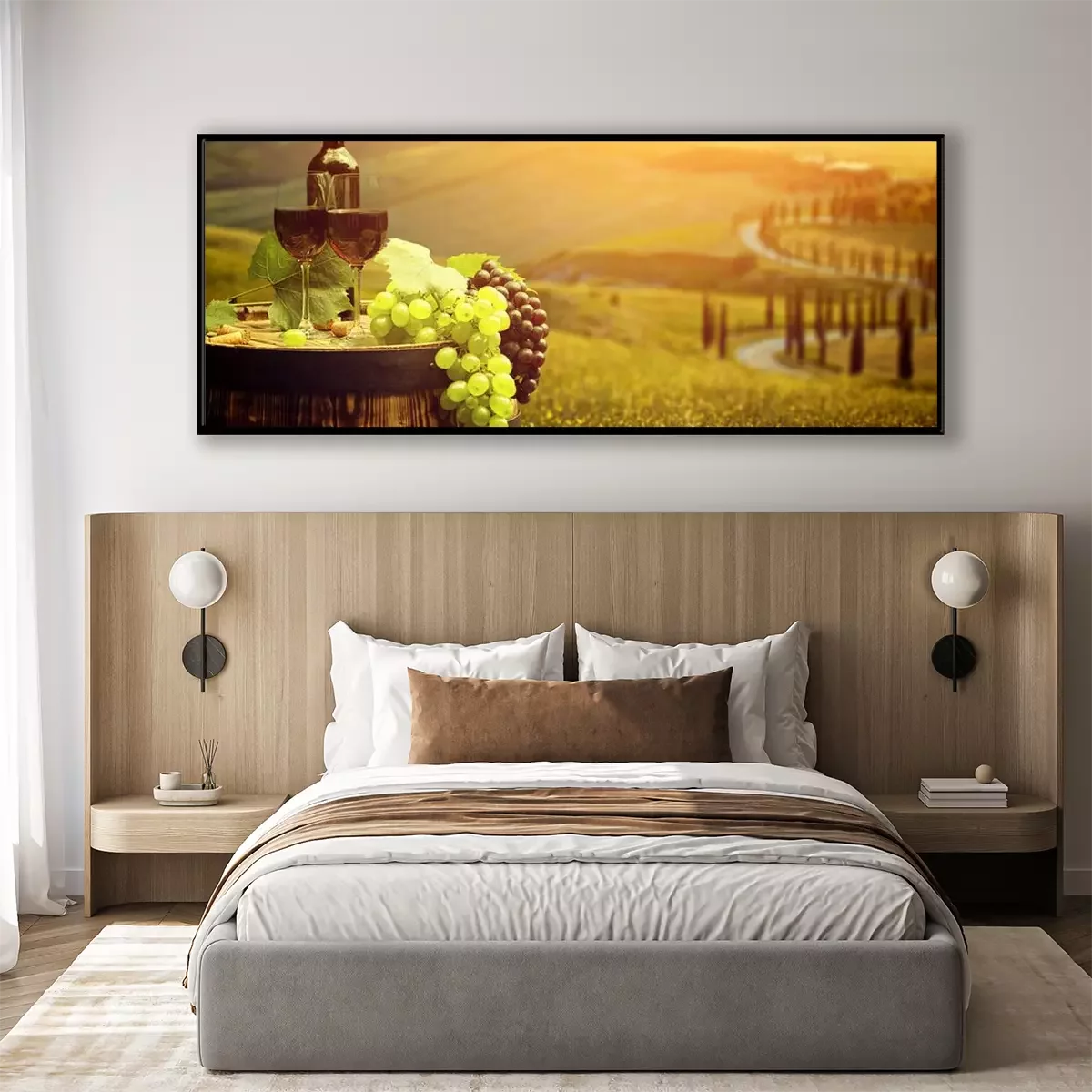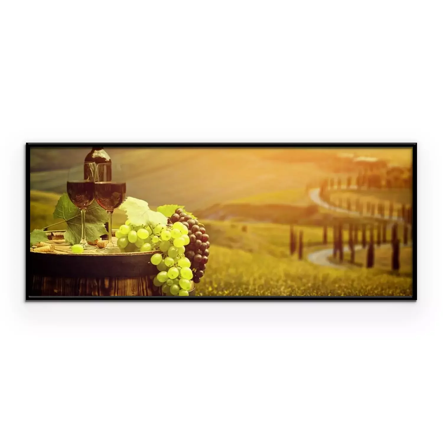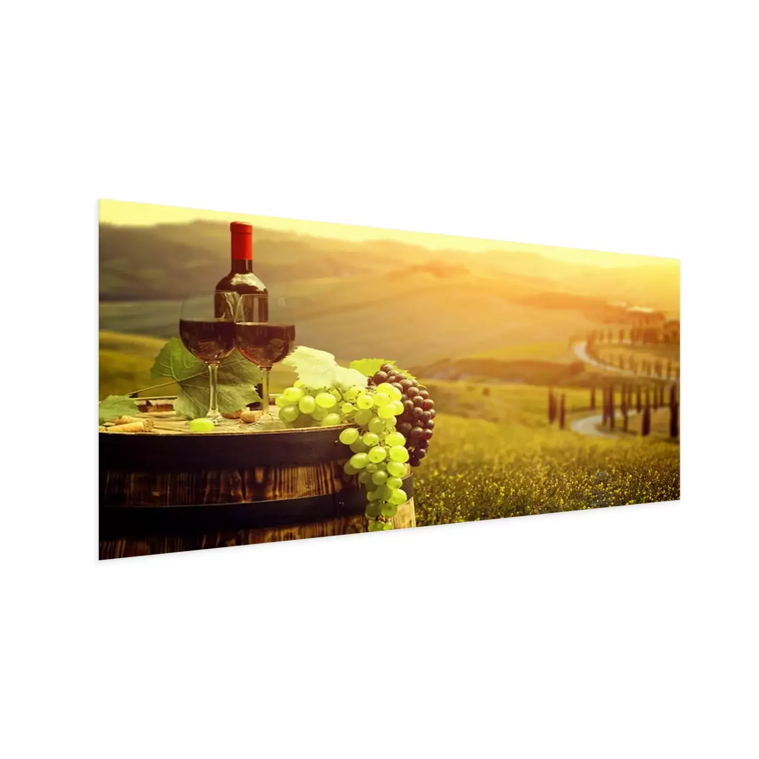 Poster: Rode wijn met vat op wijngaard in groene Toscane, Italië