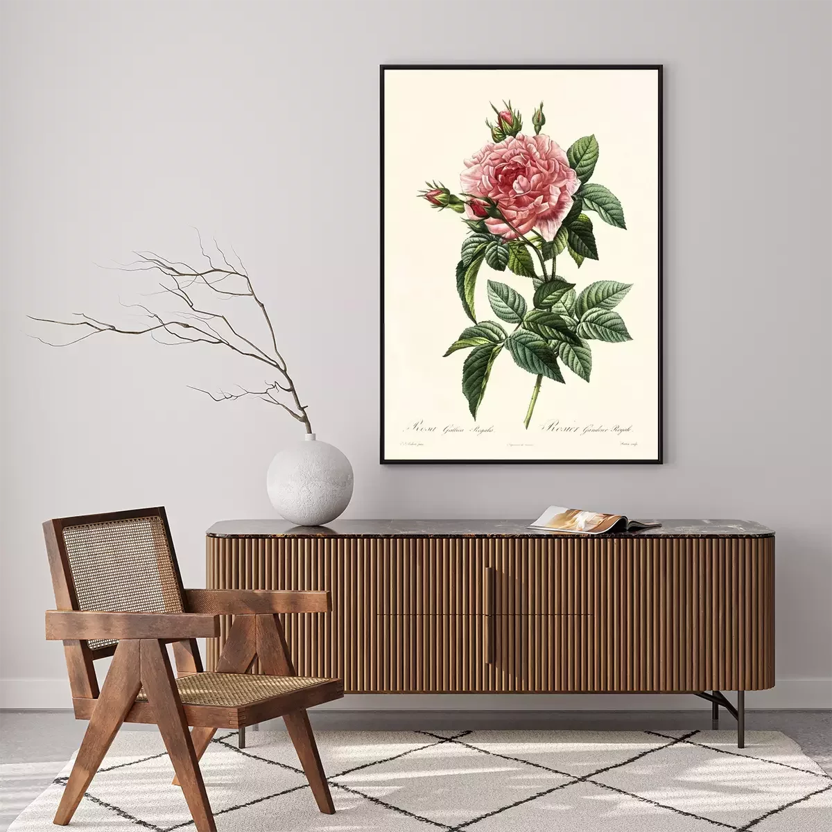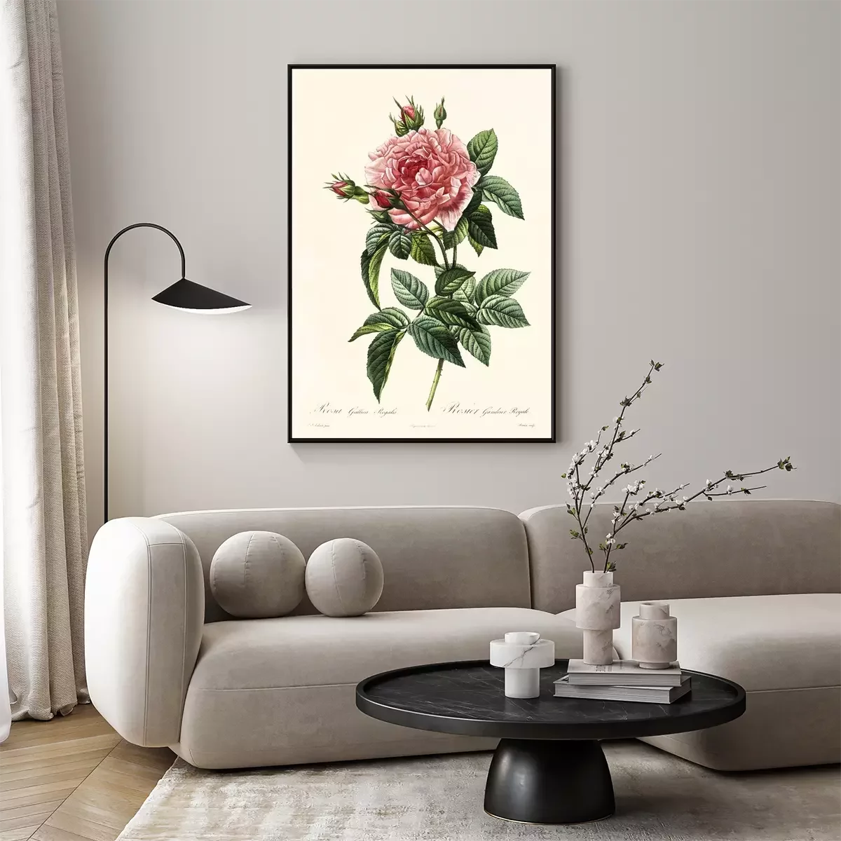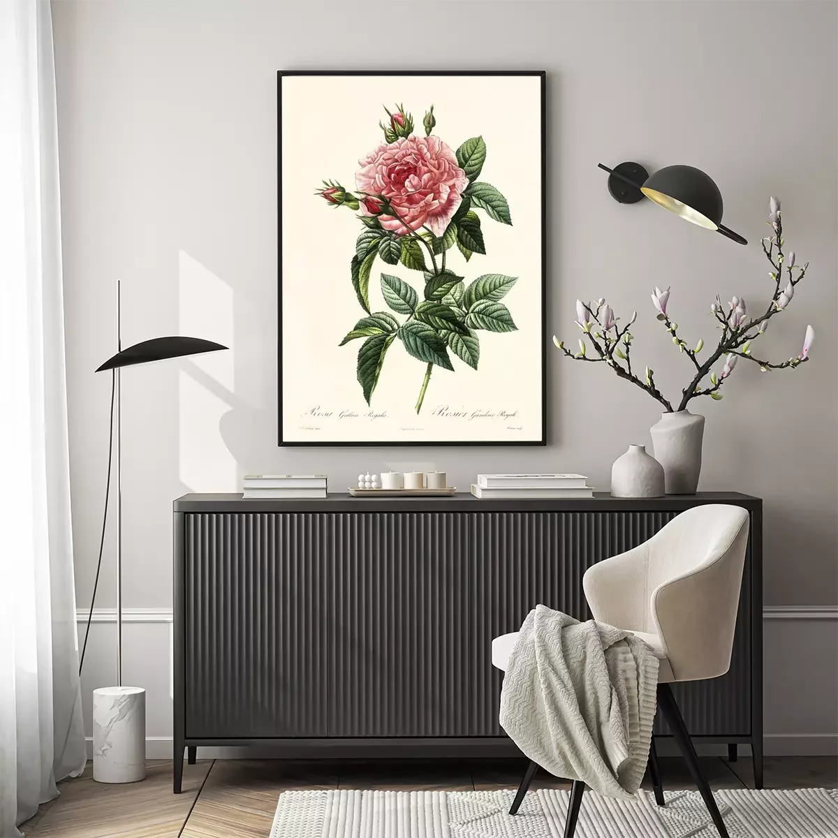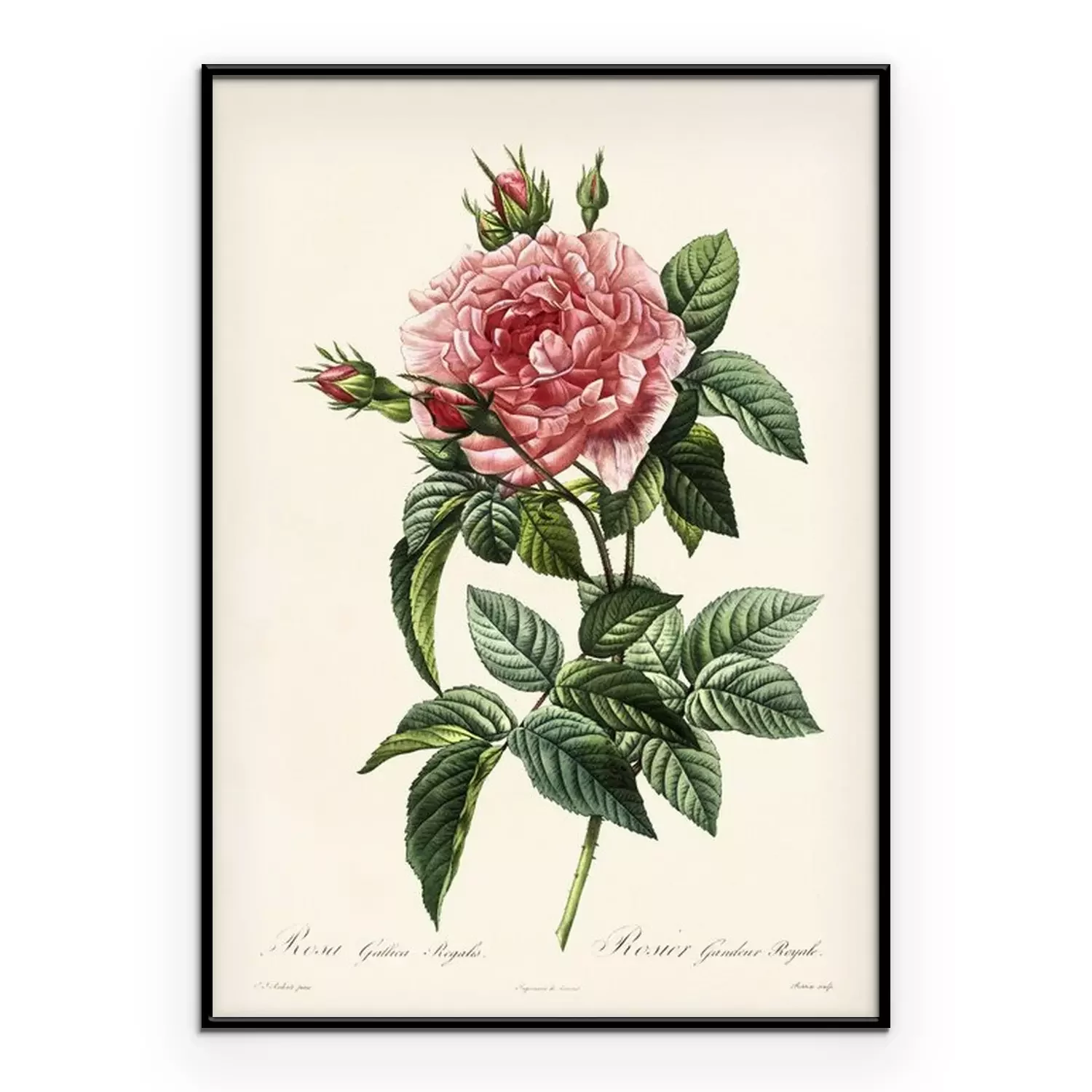 Poster: Roos met veel bloemblaadjes en donkere bladeren
