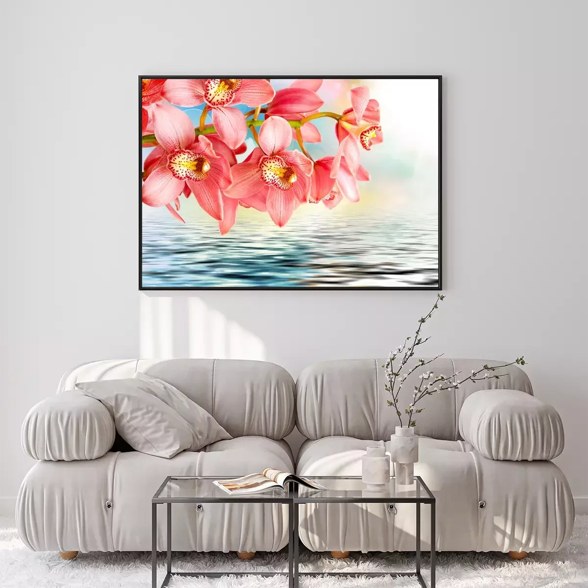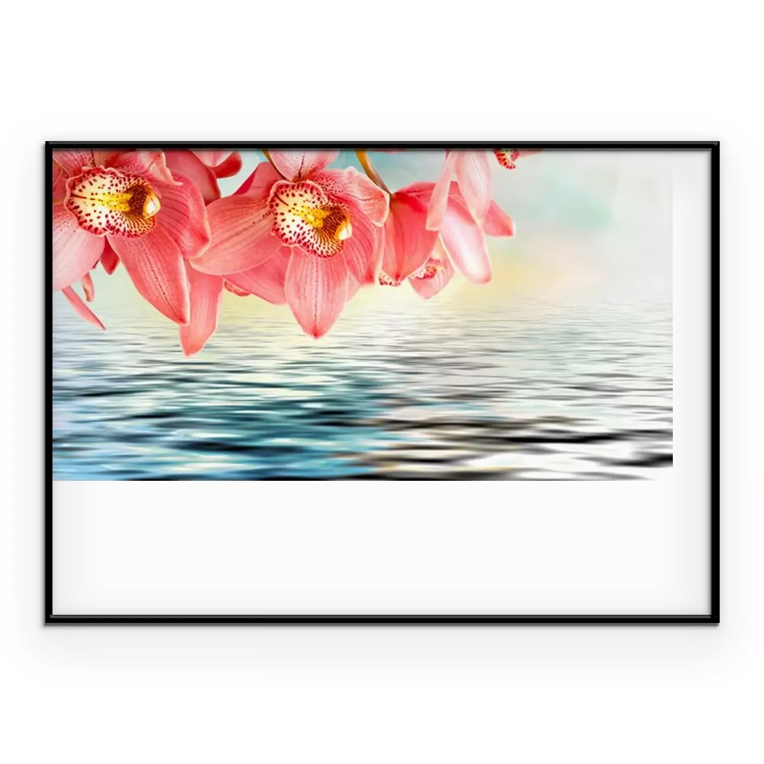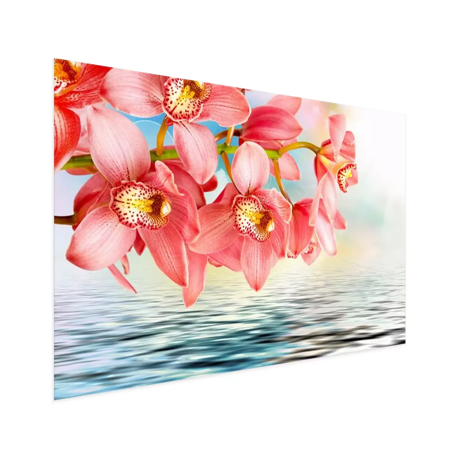 Poster: Roze bloemen die over het wateroppervlak vallen
