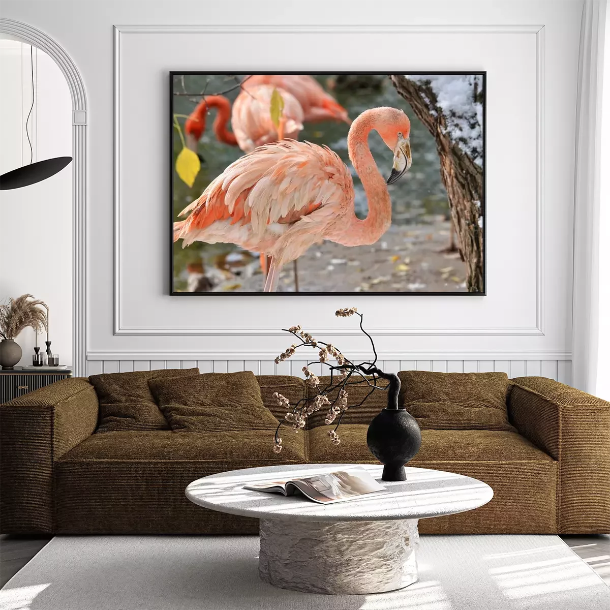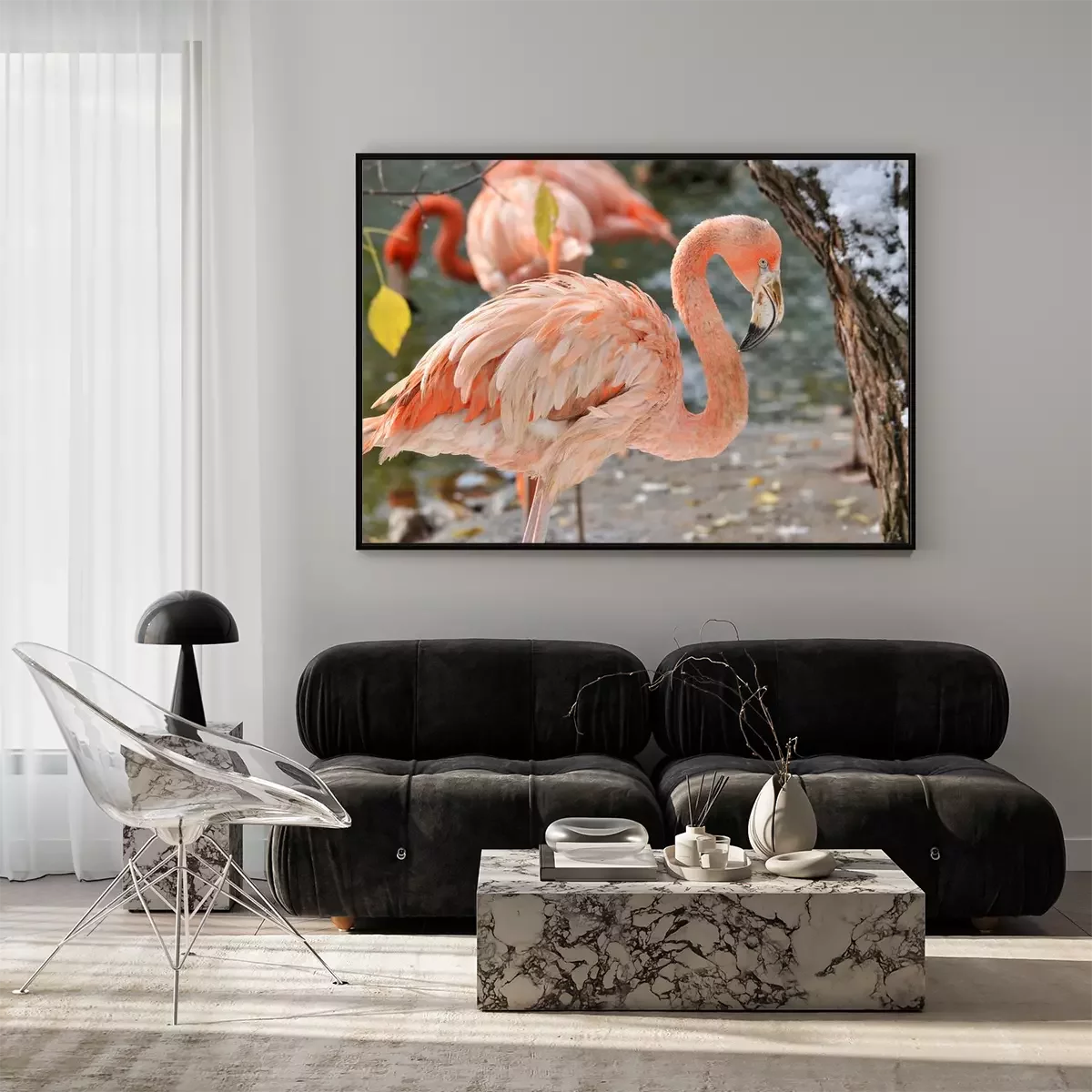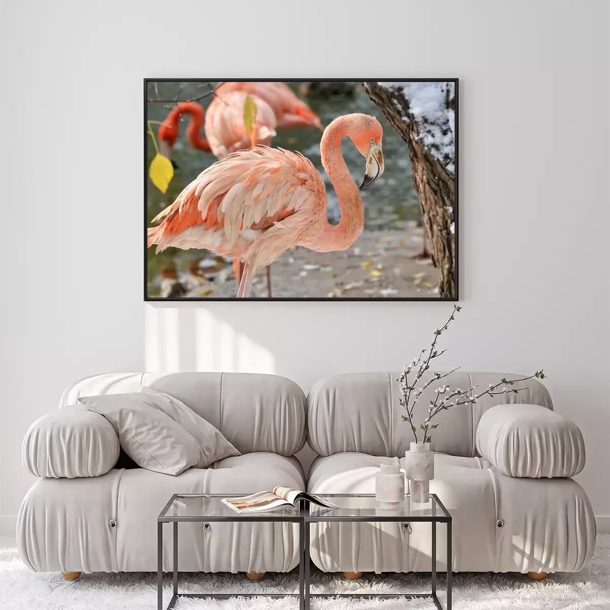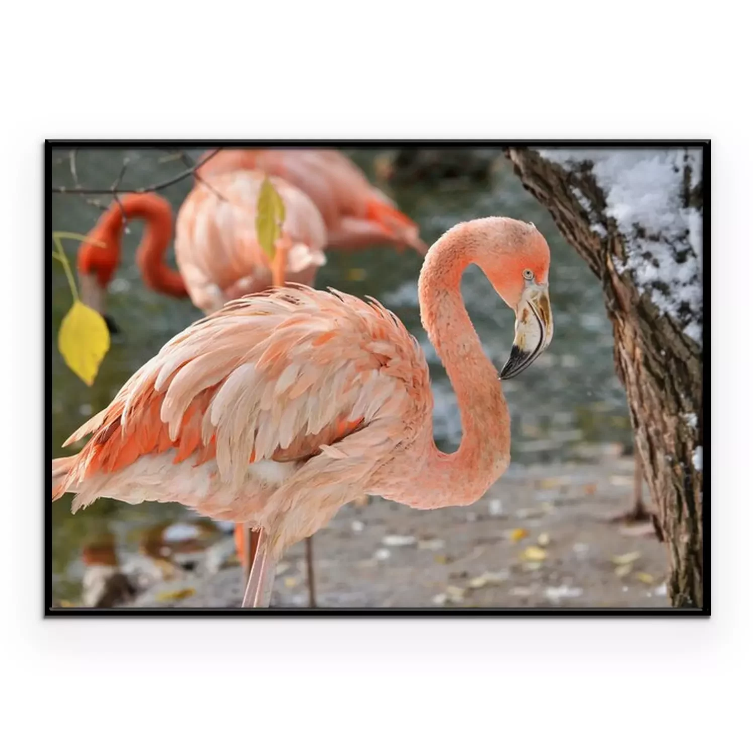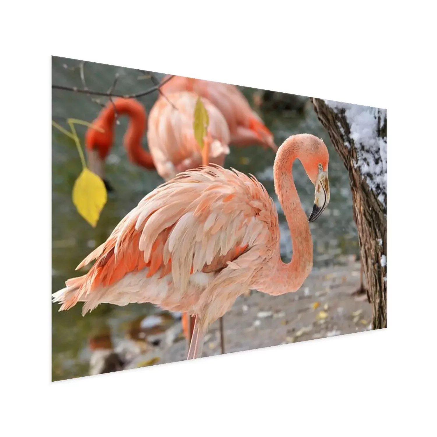 Poster: Roze flamingo in de dierentuin