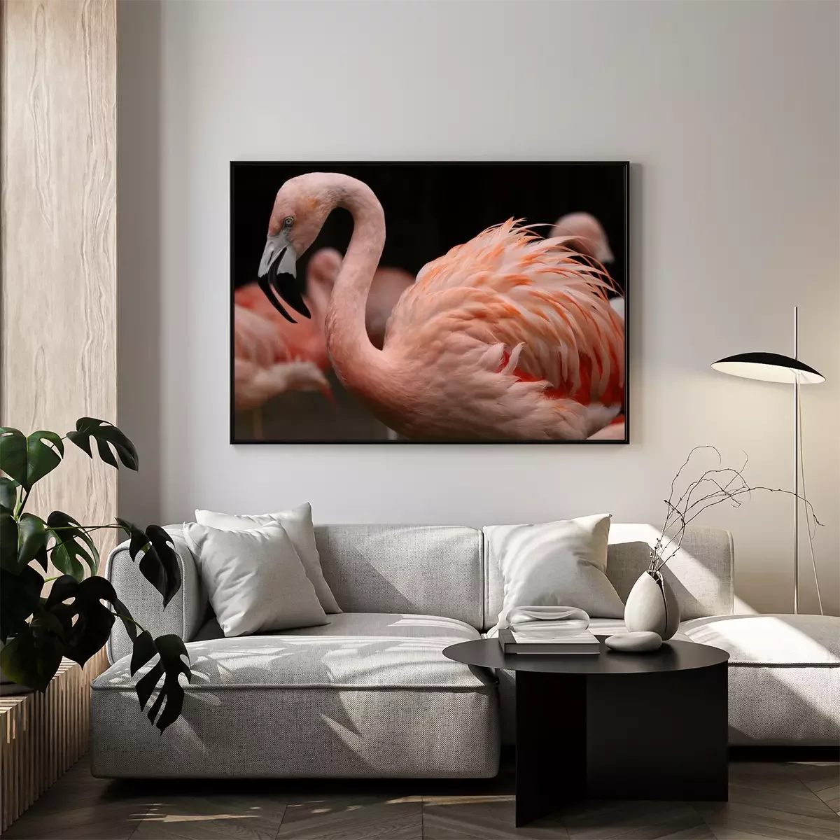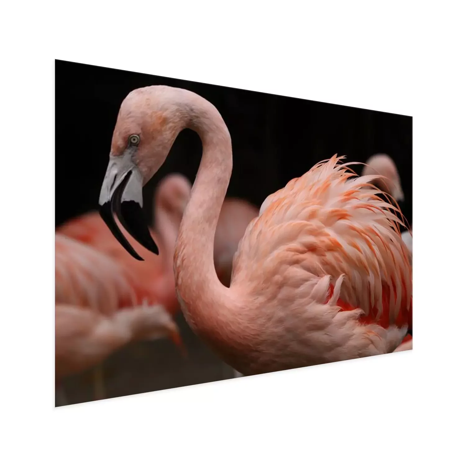 Poster: Roze flamingo van dichtbij