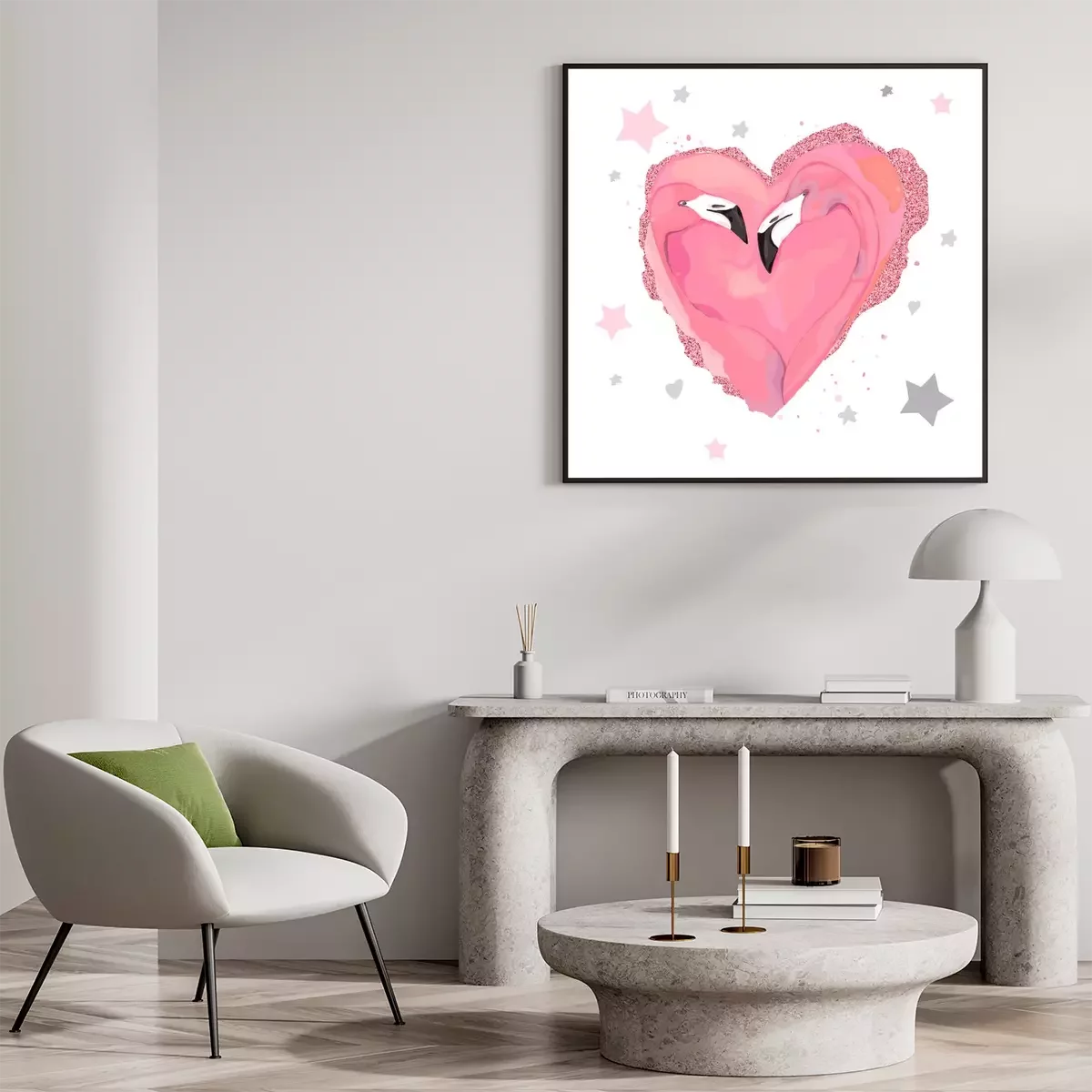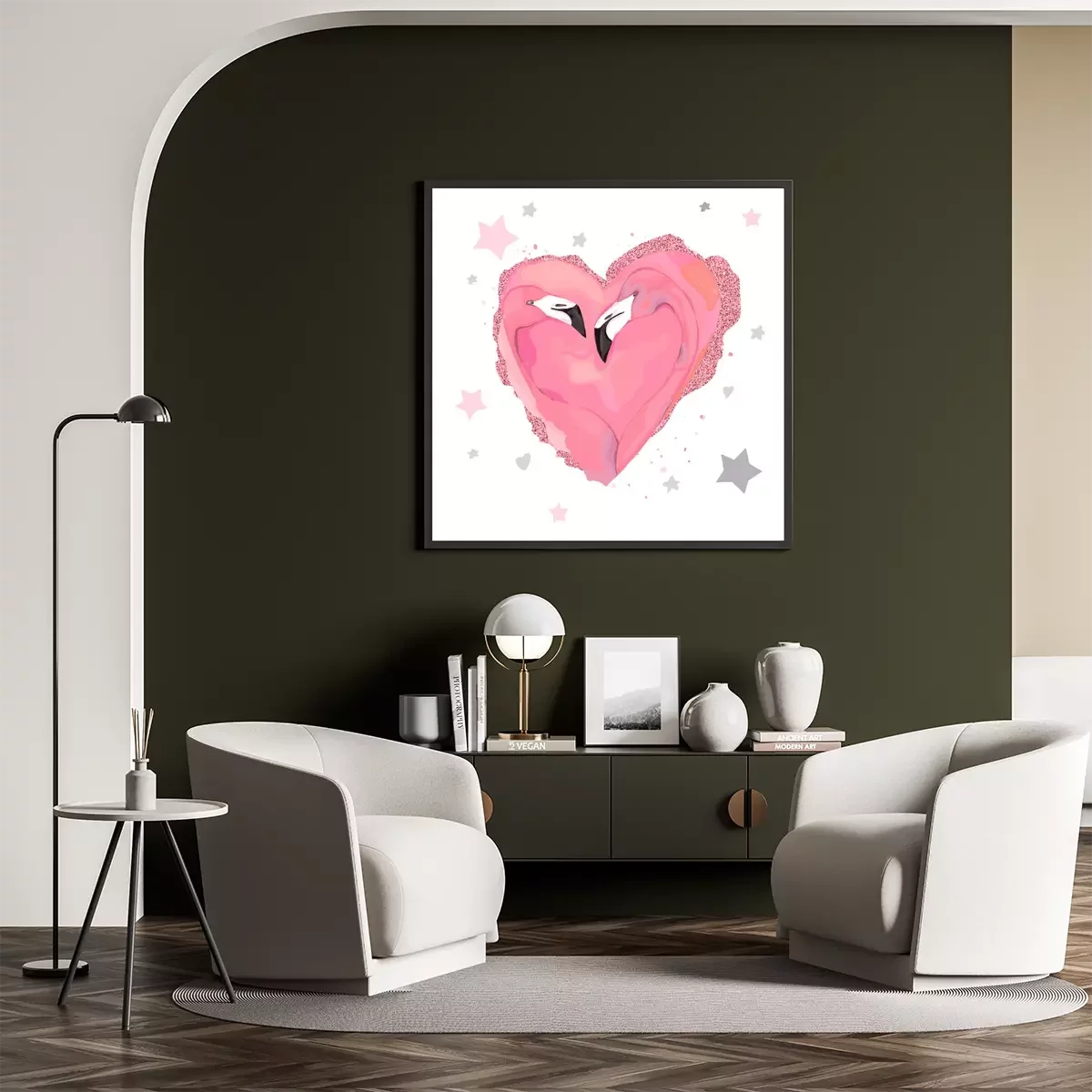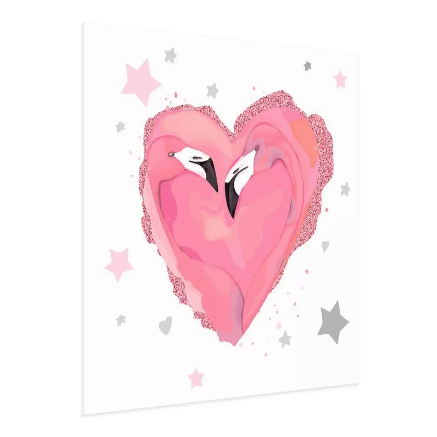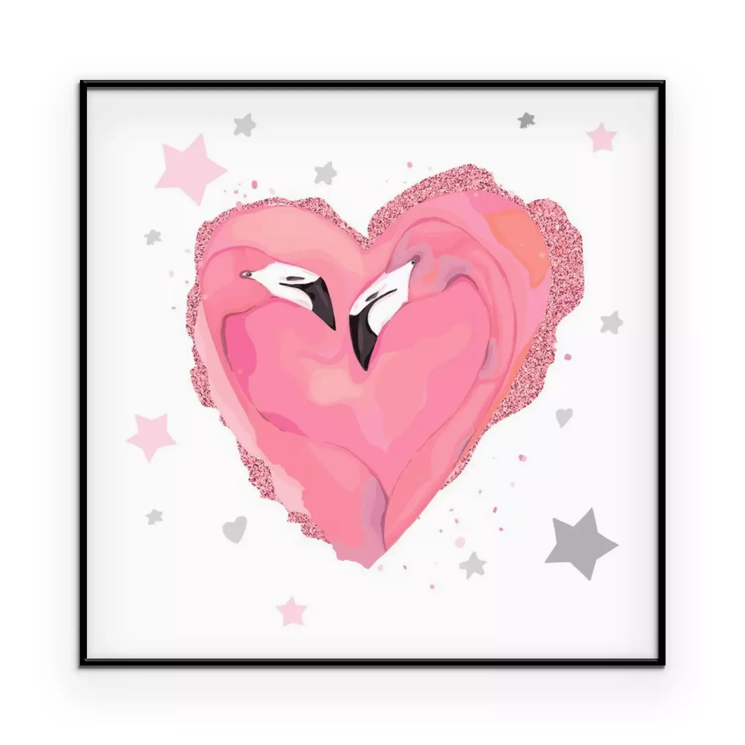 Poster: Roze flamingopaar met sterren en hart. Vector illustratie Mode glamour print