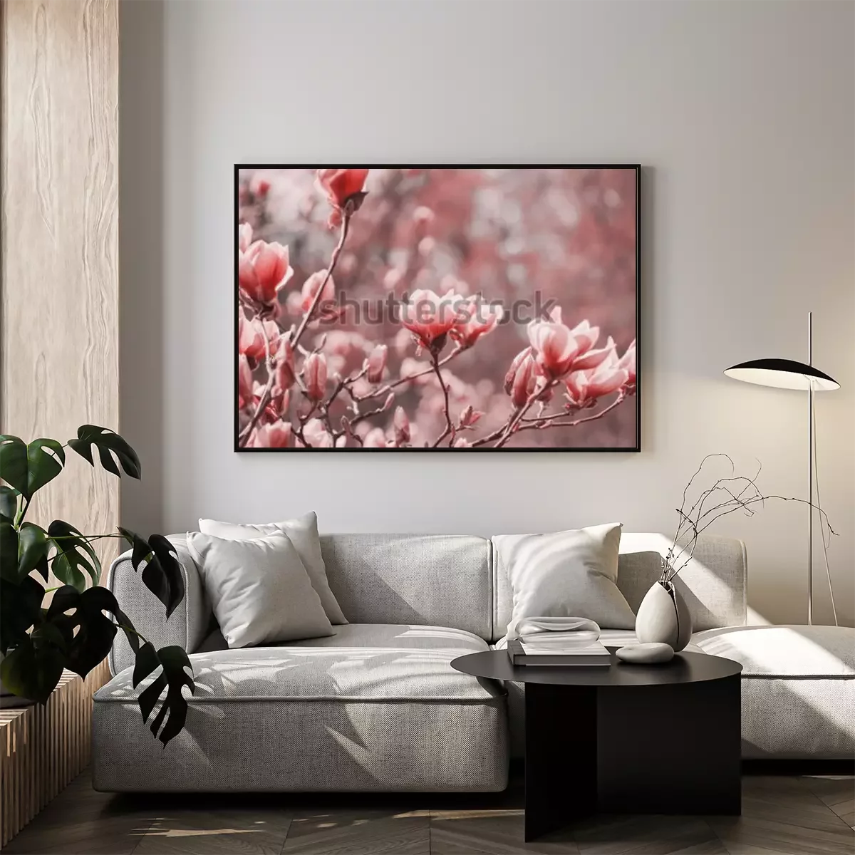 Poster: Roze magnolia's als de schoonheid van de natuur
