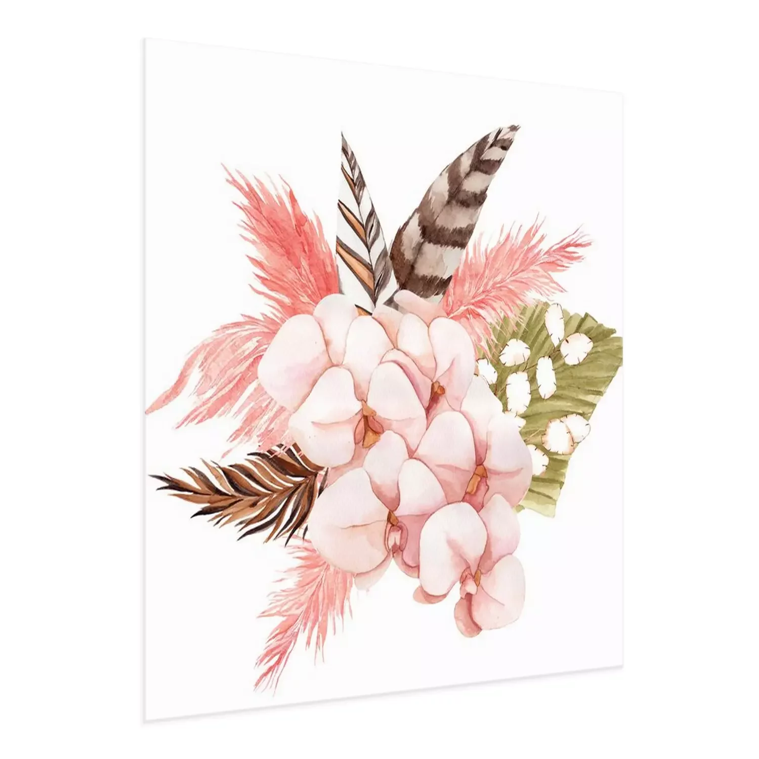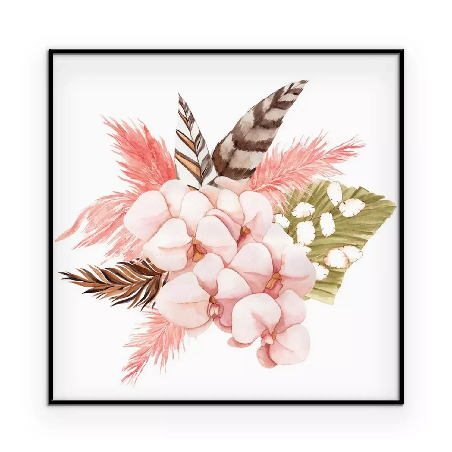 Poster: Roze orchidee en boho-veren