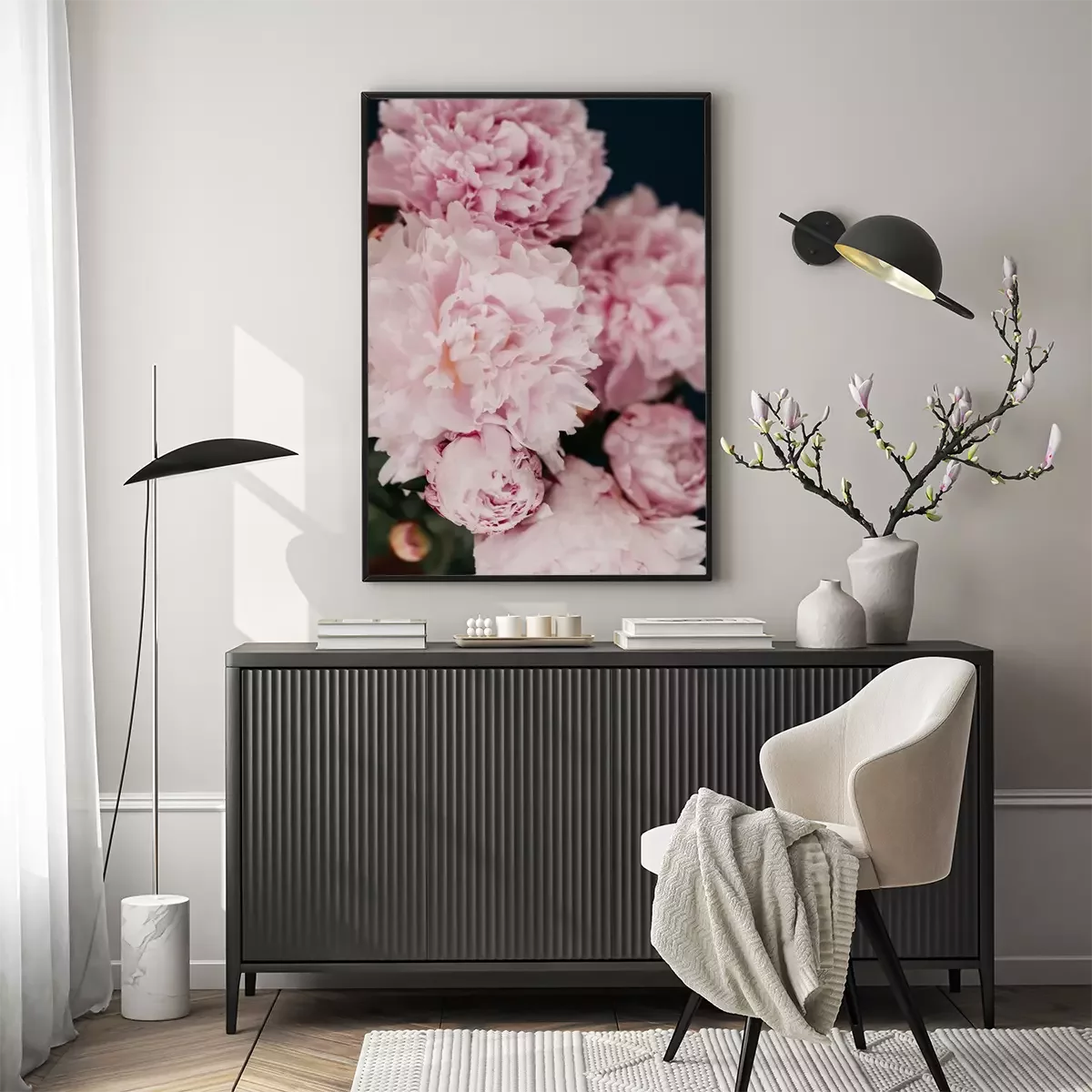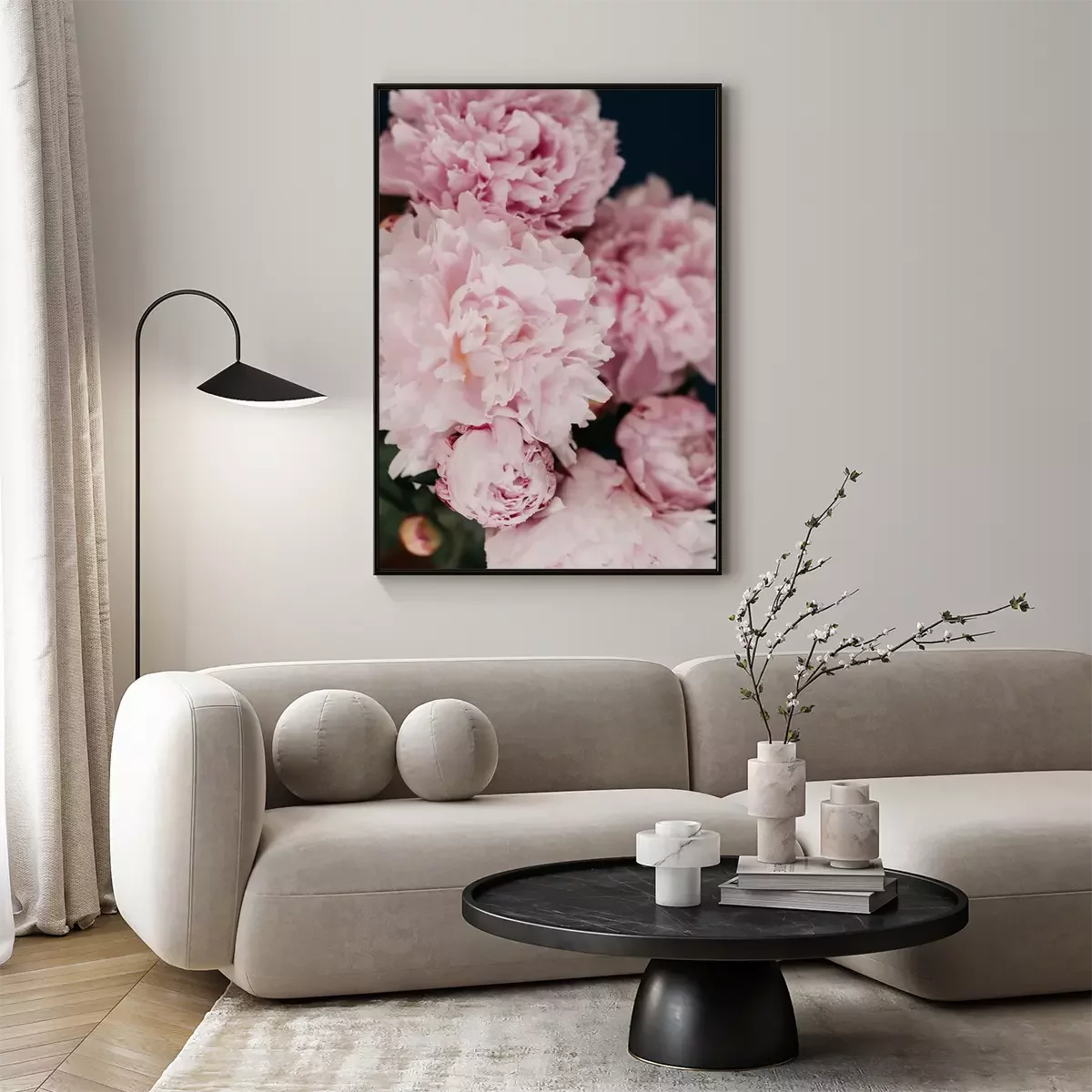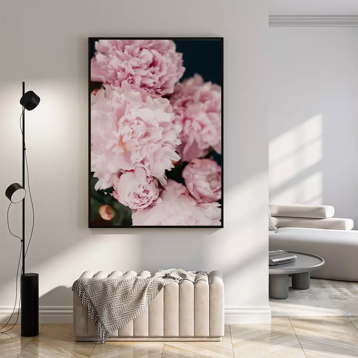 Poster: Roze pioenrozen met gescheurde bloemblaadjes