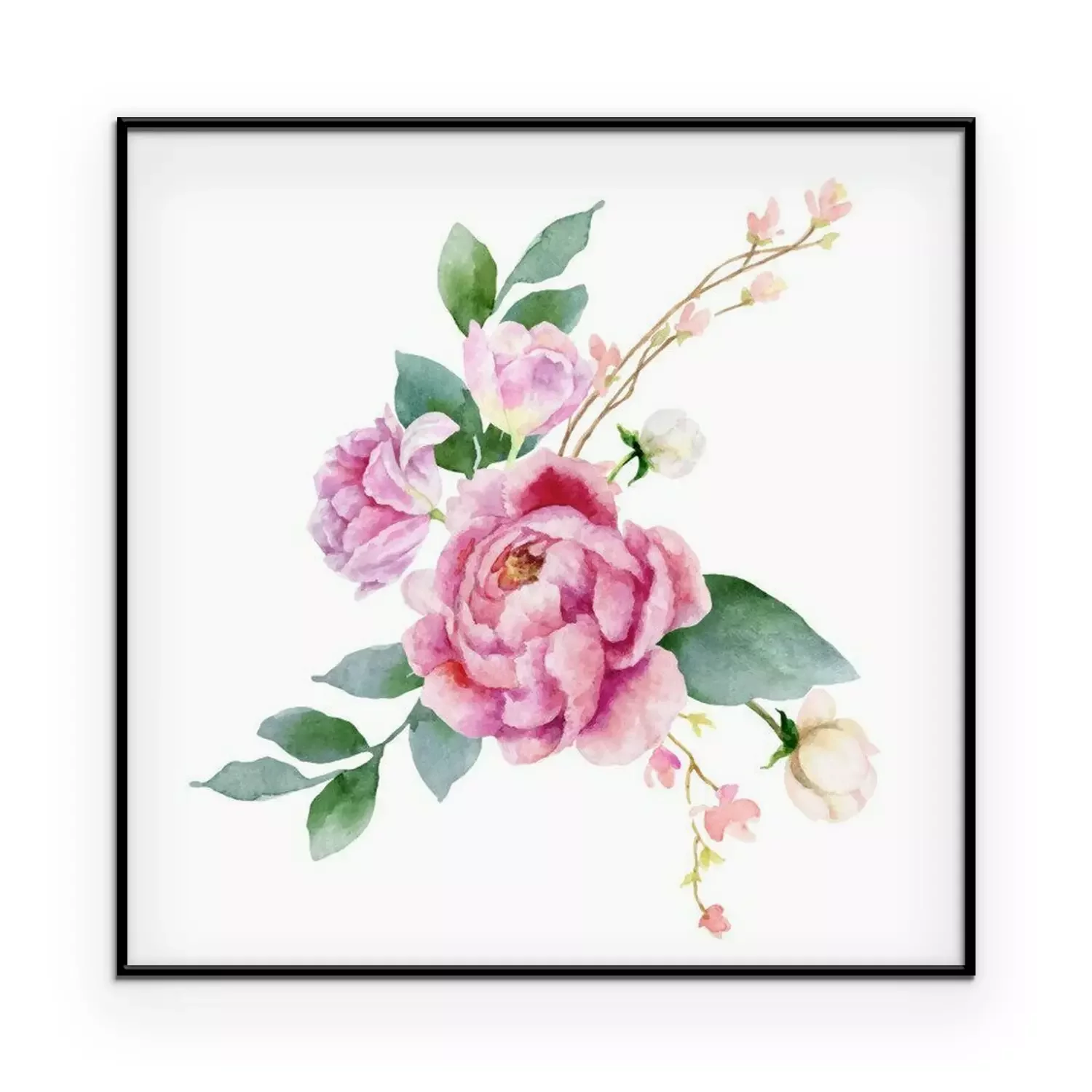 Poster: Roze pioenrozen op groene bladeren