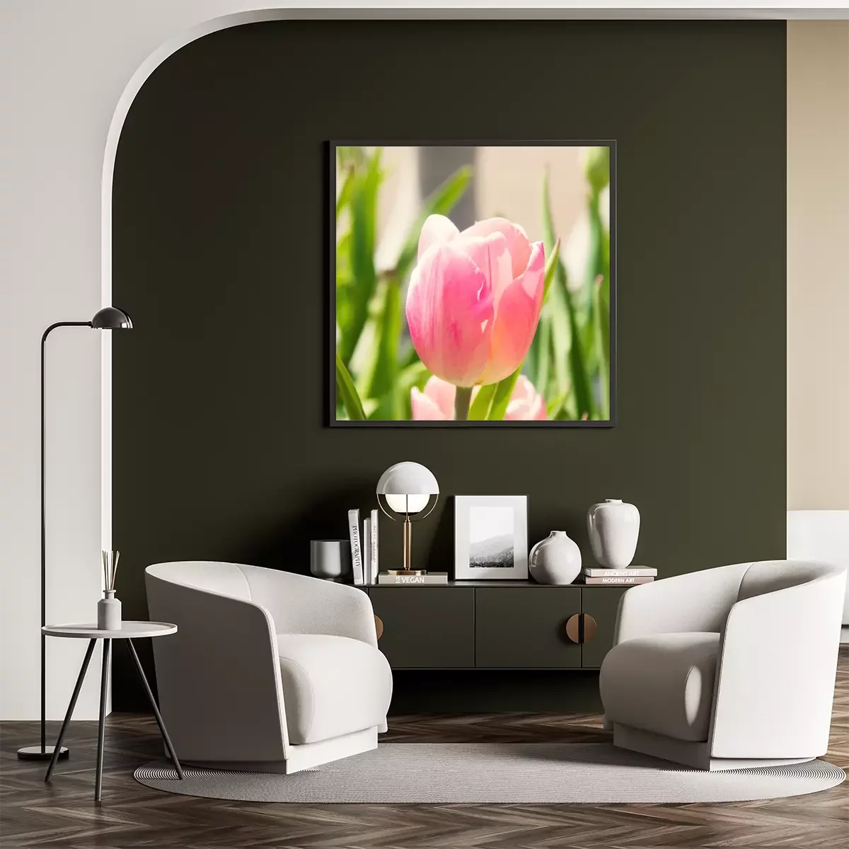 Poster: Roze tulp en natuur